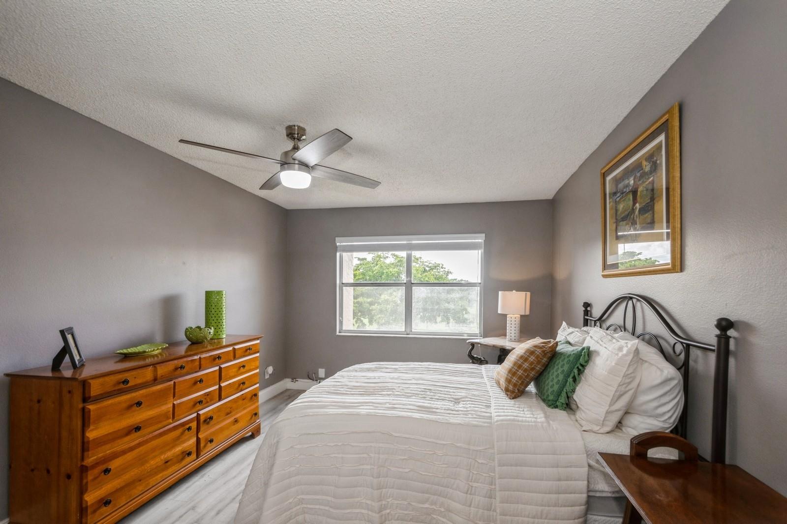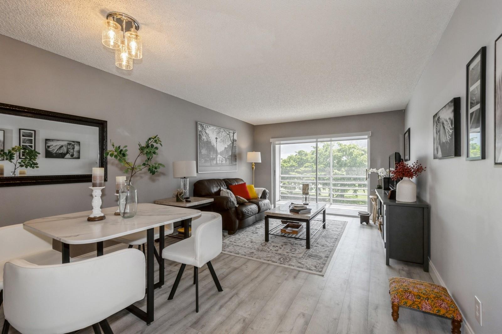 Beautiful one bedroom one bathroom lakefront condominium. This immaculate gem has been fully remodeled with tastefully finishes. Vinyl flooring throughout. Gorgeous kitchen with Quartz countertop and newer stainless steel appliances. Living area and screened balcony overlooking a beautiful peaceful lake. Spacious bedroom with walk-in closet. Enjoy the superb amenities this 55+ active community has to offer, such as a clubhouse, indoor & outdoor pools, fitness center, theater, library, golf and more. Well maintained building on a very private and quiet location, at walking distance to one of the community's pool. Easy access to shopping, restaurants, parks, medical facilities, and entertainment. Plenty of guest parking.