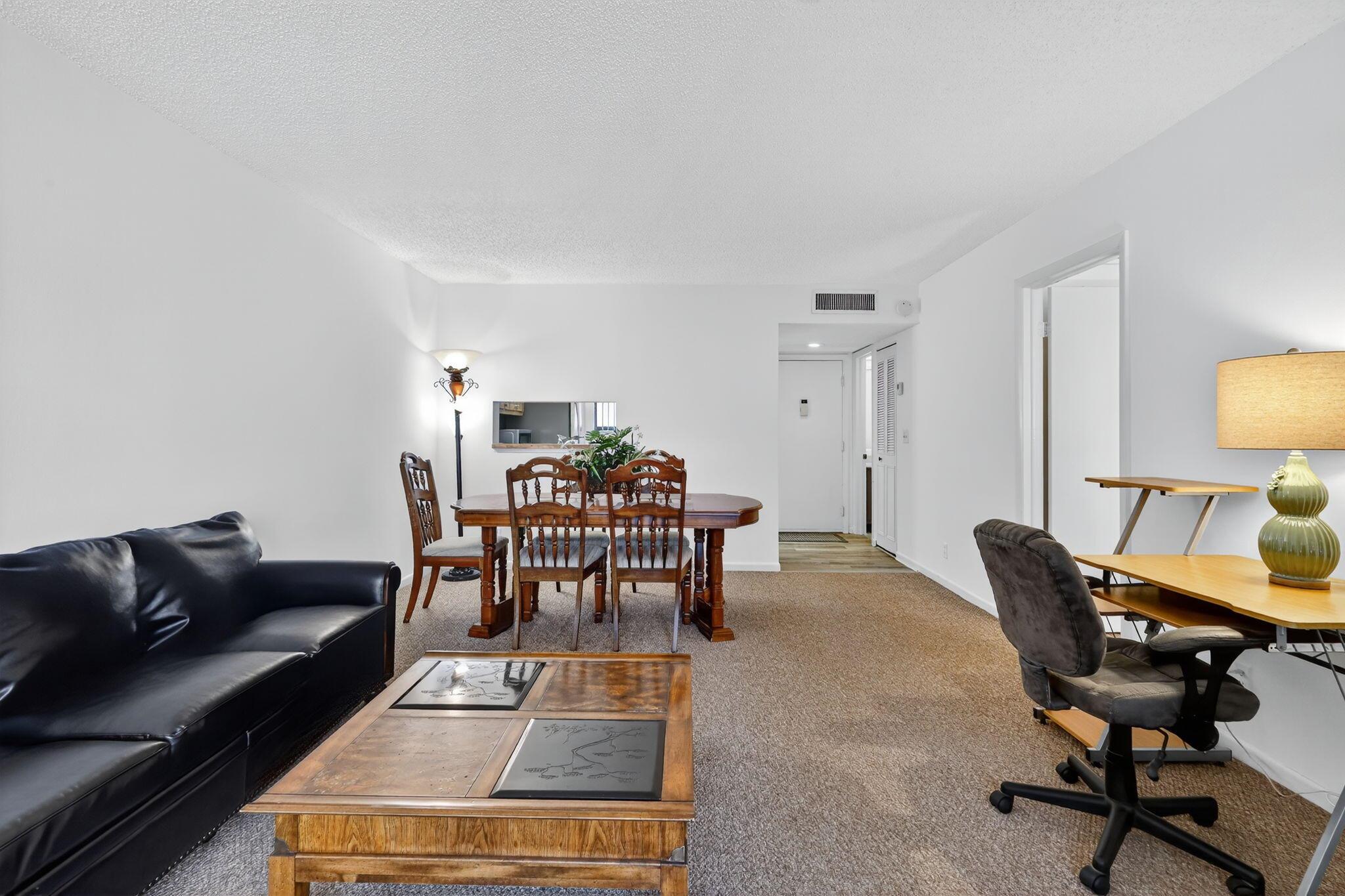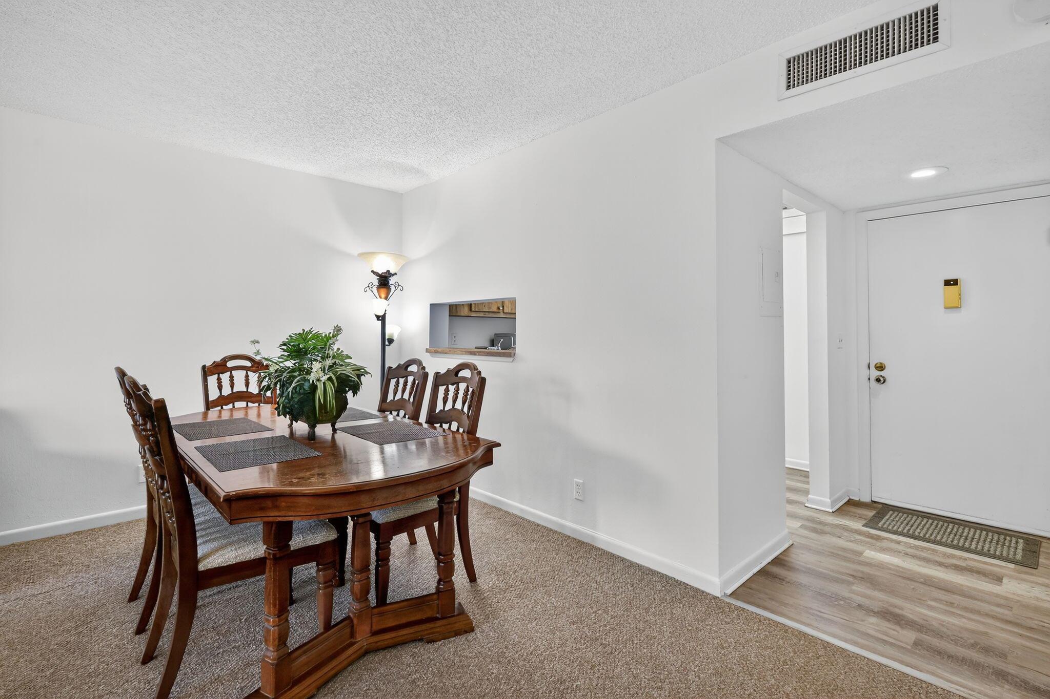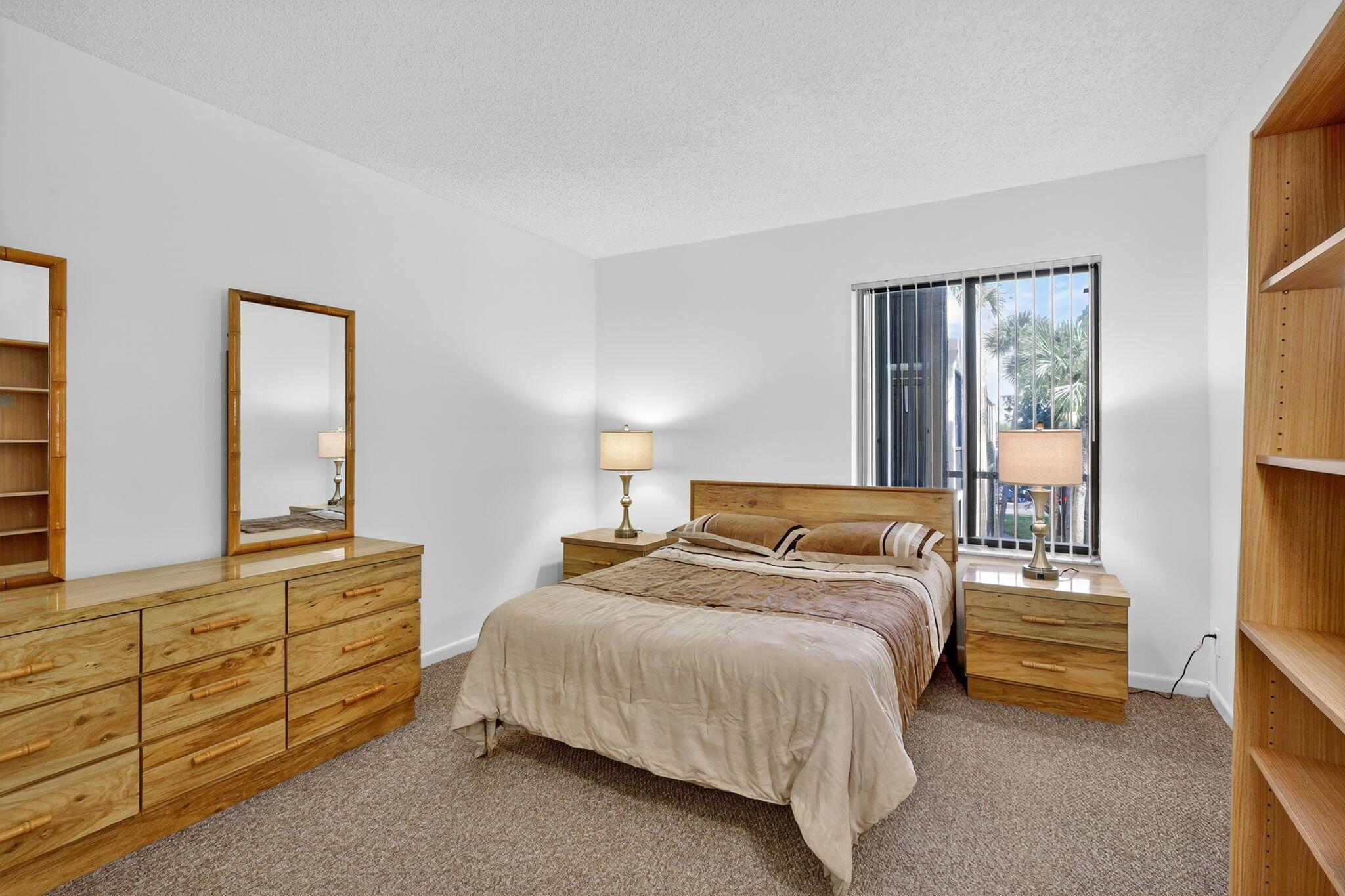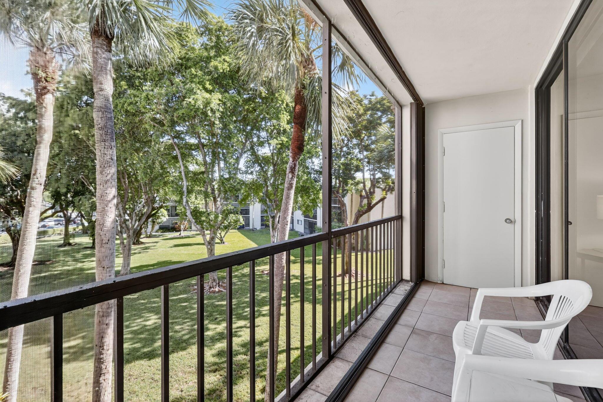 Active 55+ Building, PET FREE, Certified animals only. Beautifully updated, 1 bed., 1.5 bath condo offering serene garden views from a spacious screened balcony with Accordion Hurricane Shutters. This inviting unit features: new Whirlpool and Samsung stainless steel appliances, fresh paint throughout, new vinyl plank flooring in the kitchen, updated bathrooms with new toilets, walk-in closet with vanity area, A/C replaced in Aug. 2022. Top floor unit, elevator for easy access. Storage closet on balcony & additional community storage just steps away. Laundry facilities are conveniently located right across from the unit. Enjoy peace of mind with 24-hour guard-gated entry and security patrol. Assigned parking space, ample guest parking.
