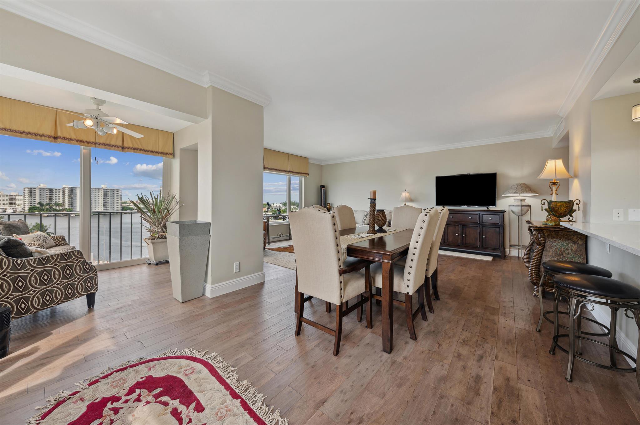 Stunning, 2/2 with a waterfront view of the Intracoastal Waterway and Atlantic Ocean. This 7th floor unit with an open kitchen layout has an incredible view of Delray to the West, North, and East. The unit includes a carport space. Short distance (.64 miles) to Atlantic Ave. Short distance (1.2 miles) to the beach. 24/7 security. Impact windows. Association application fee is $150 and deposit is a $500 refundable move-in deposit. Financing requires 20% down. No rentals allowed. No Pets. No Washer and Dryer in unit. Common laundry room on each floor. Additional 72 sq. ft. of the enclosed porch area is included in the living sq. ft. All measurements are approximate and subject to error, omission, and changes without notice.