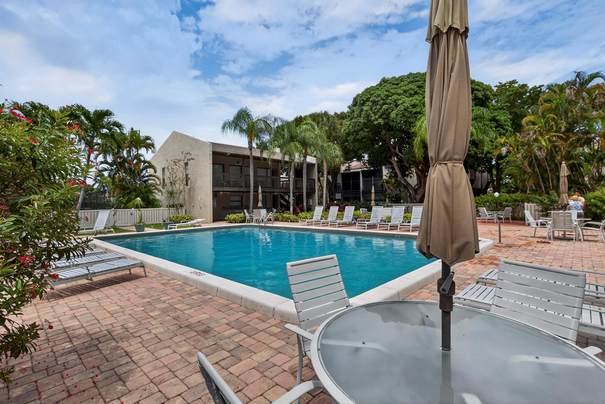 EAST BOCA!!! Spacious 2 bedroom 2 bath condo with 1,286 sq ft of living area. Large rooms with an abundance of natural light. Hurricane Impact windows, new roof, updated kitchen and baths, brand new LG washer and dryer, brand new hot water heater, porcelain tile flooring throughout, and a beautiful screened patio offering a serene view of the lush greenery and elegant banyan trees. Close to pool. This is an all age community and your beloved pets are allowed (2 under 25 lbs). The building has passed the 30 year structural integrity inspection. No lease for the first 2 years. Plenty of guest parking, community pool, BBQ area, pickleball/tennis court, and clubhouse. Minutes from the beautiful beaches, Mizner Park & the trendy Atlantic Ave.