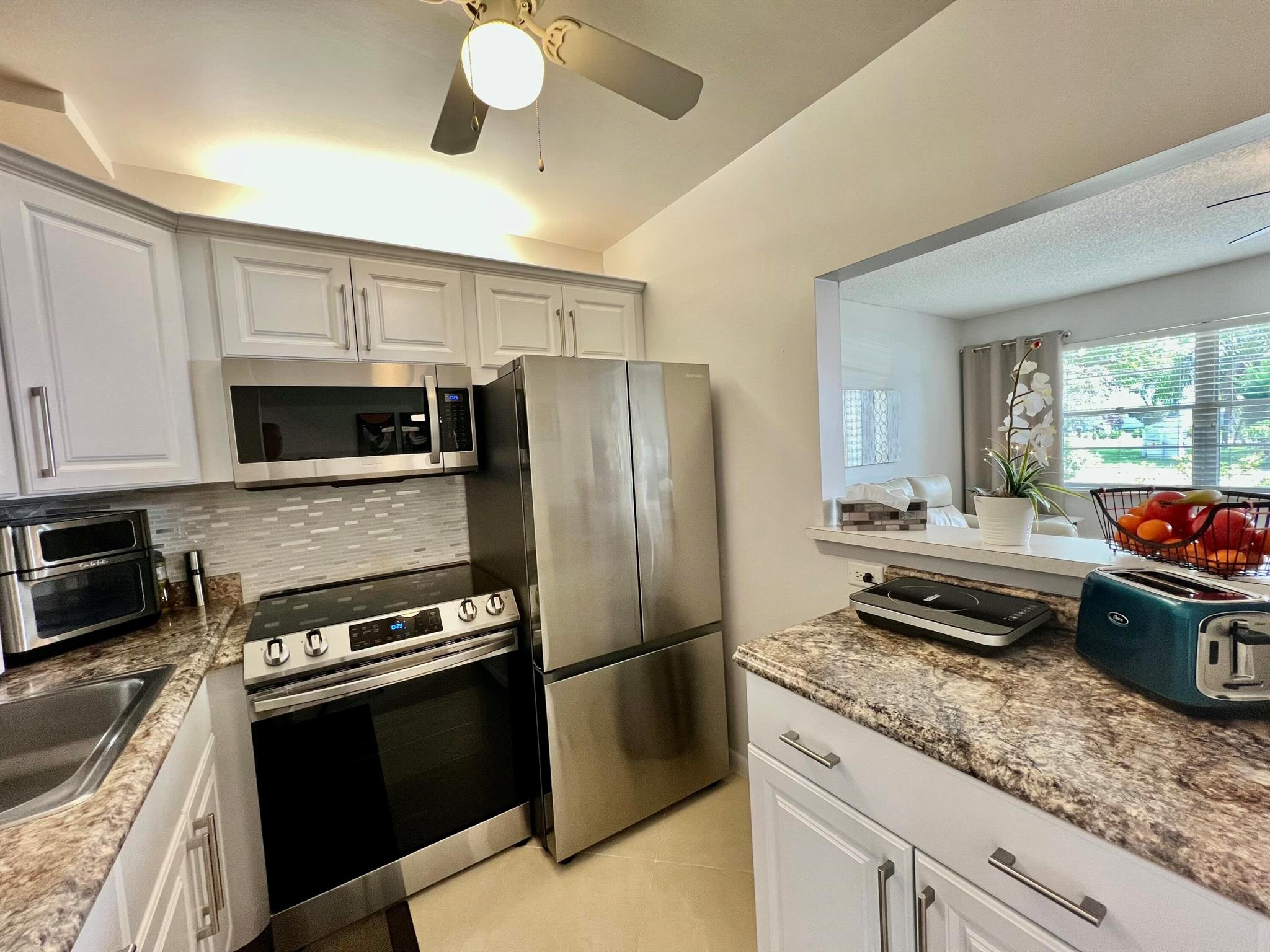 Discover modern comfort in this beautifully remodeled first-floor garden condo at Century Village East.This inviting 1-bedroom, 1.5-bath residence has been thoughtfully upgraded with a new water tank, wall A/C, and appliances--all installed in 2023.Enjoy serene lake views from the side, or step out to your private back patio, perfect for relaxing or entertaining. Offered fully furnished and turn-key, this home is rental-ready and designed for a seamless, stylish lifestyle.