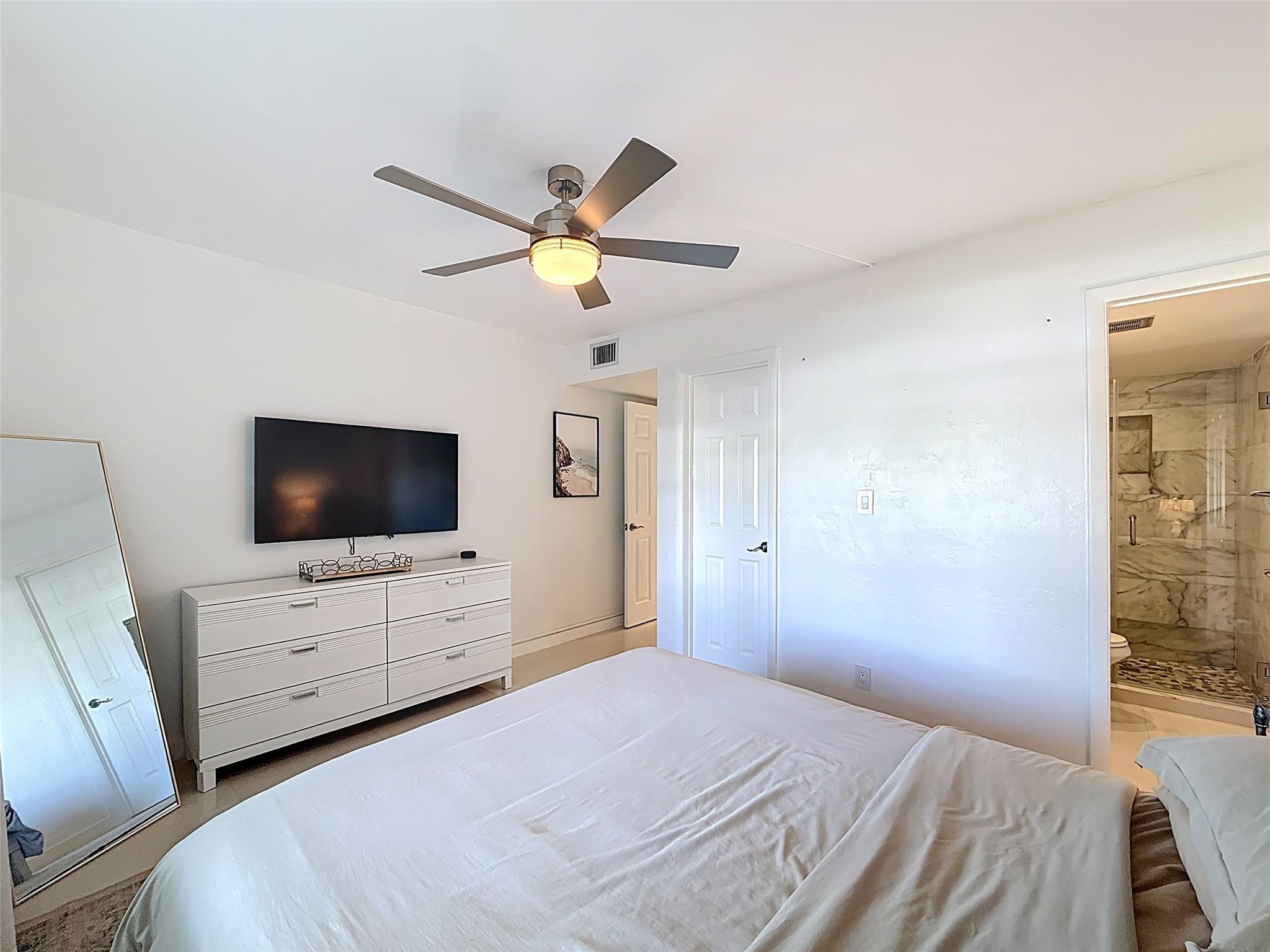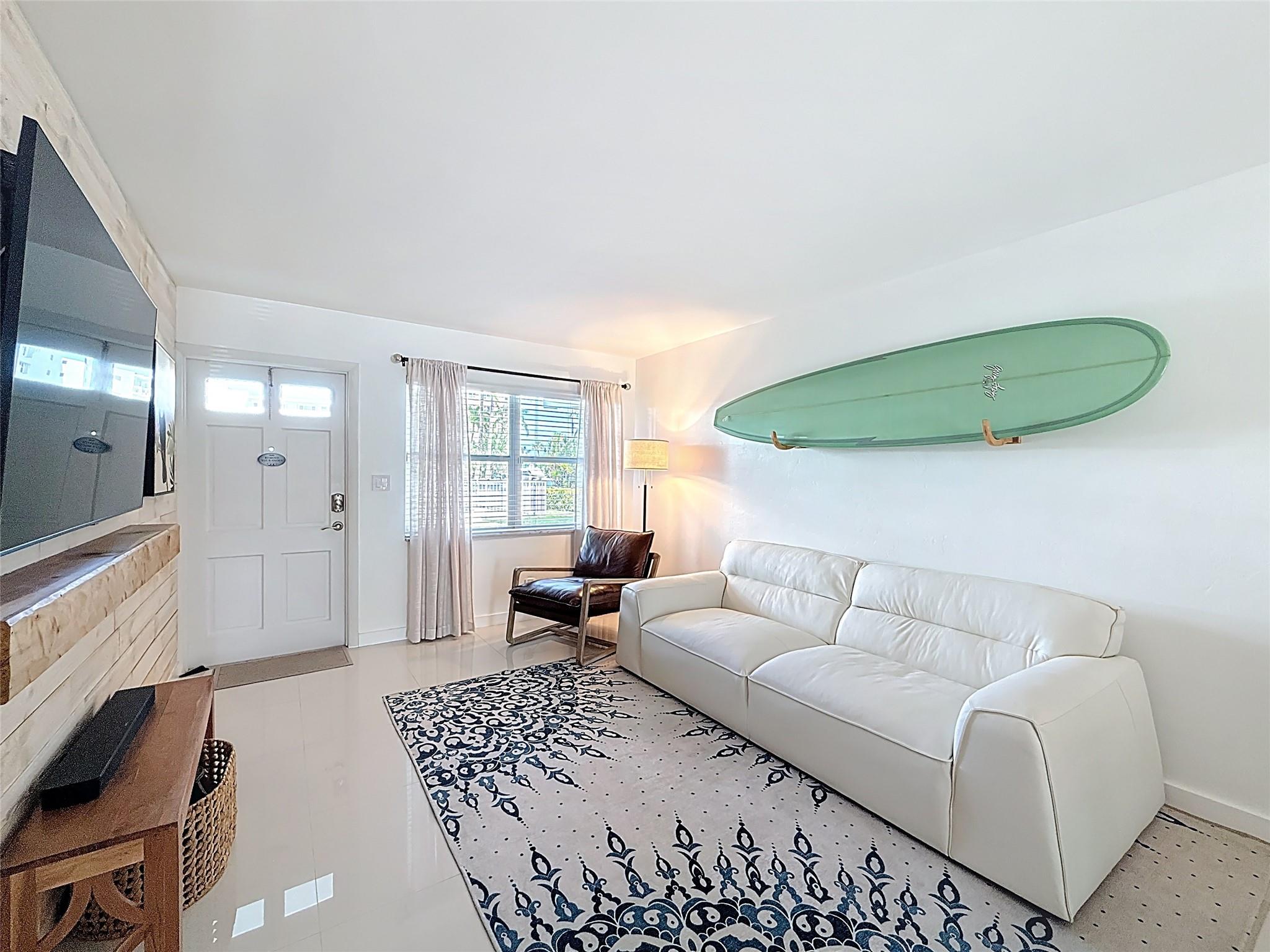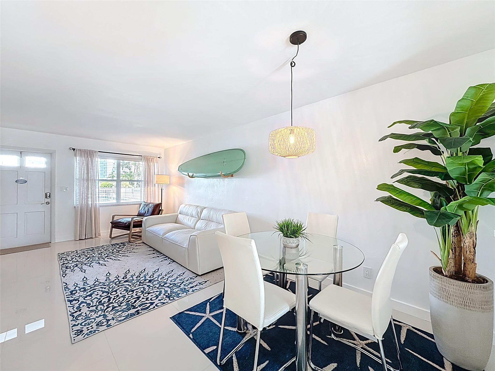 Turn-key coastal retreat! Primary residence, vacation getaway, or investment property condo in Lauderdale-by-the-Sea with deeded beach access directly across the street. Freshly repainted w/ polished porcelain floors, accent wall in living room updated furnishings including new couch, TVs, Sonos soundbar, bedding, kitchenware, and décor. Kitchen features Frigidaire S/S appliances, Lutron recessed lighting, white shaker cabinets, quartz countertops, eat-in bar. Primary bed offers walk-in closet, new mattress, and en-suite bath with stand-up shower; 2nd bdrm includes walk-in closet, feature wall. East-facing heated pool view! Investor friendly: 12 rentals/year, 30-day min. Enjoy a laid-back seaside town known for its charming walkability, small-town vibe & oceanfront. No special assessments