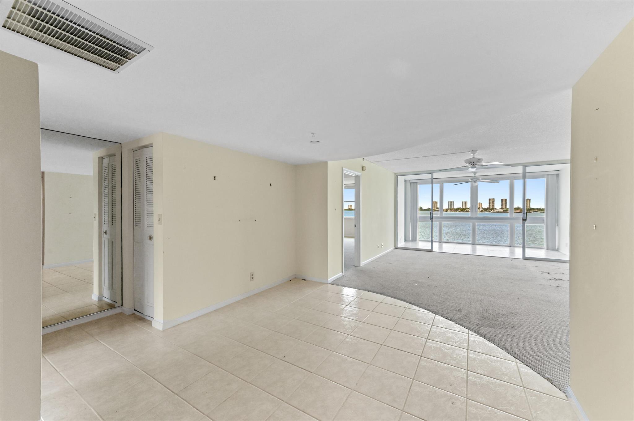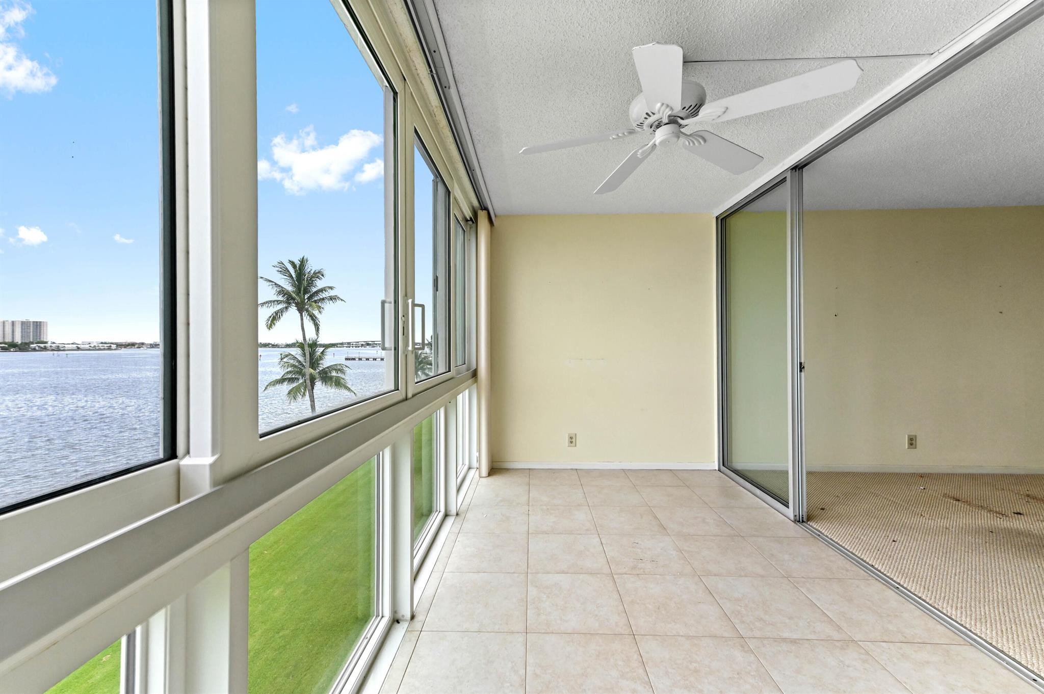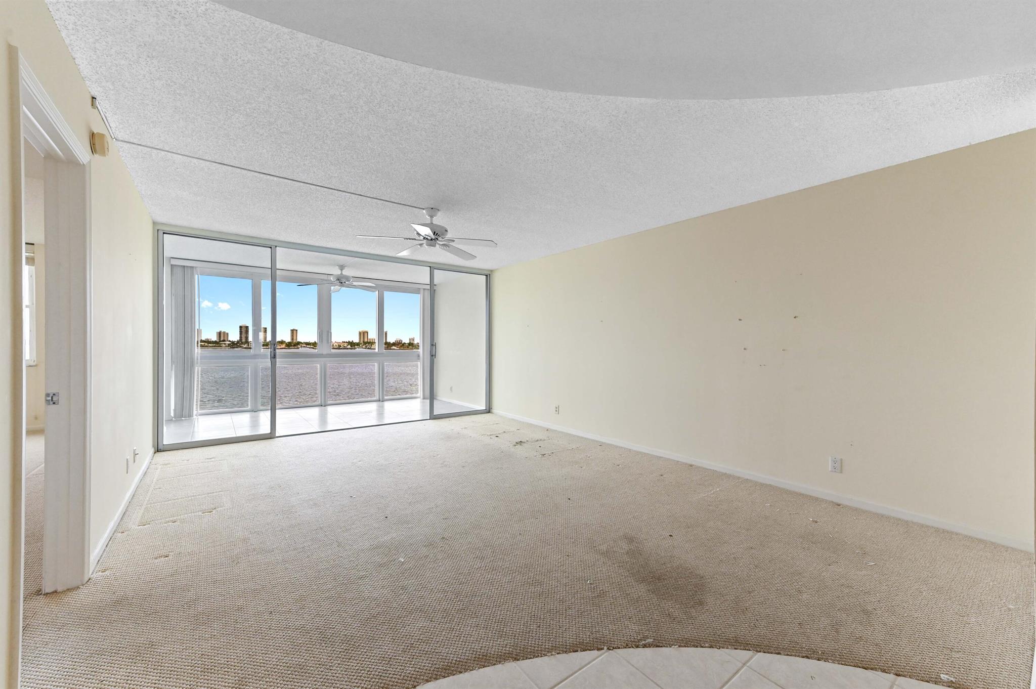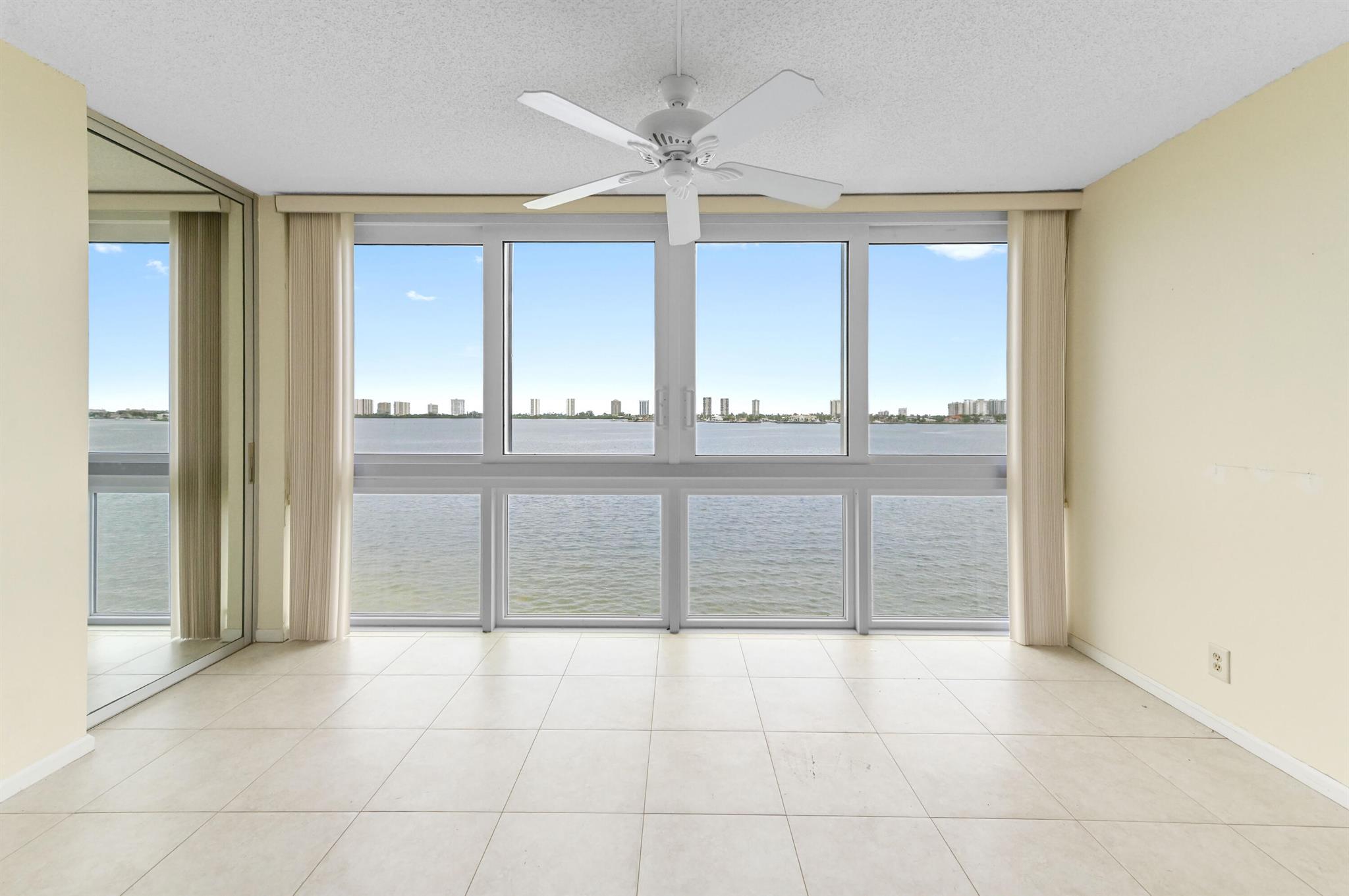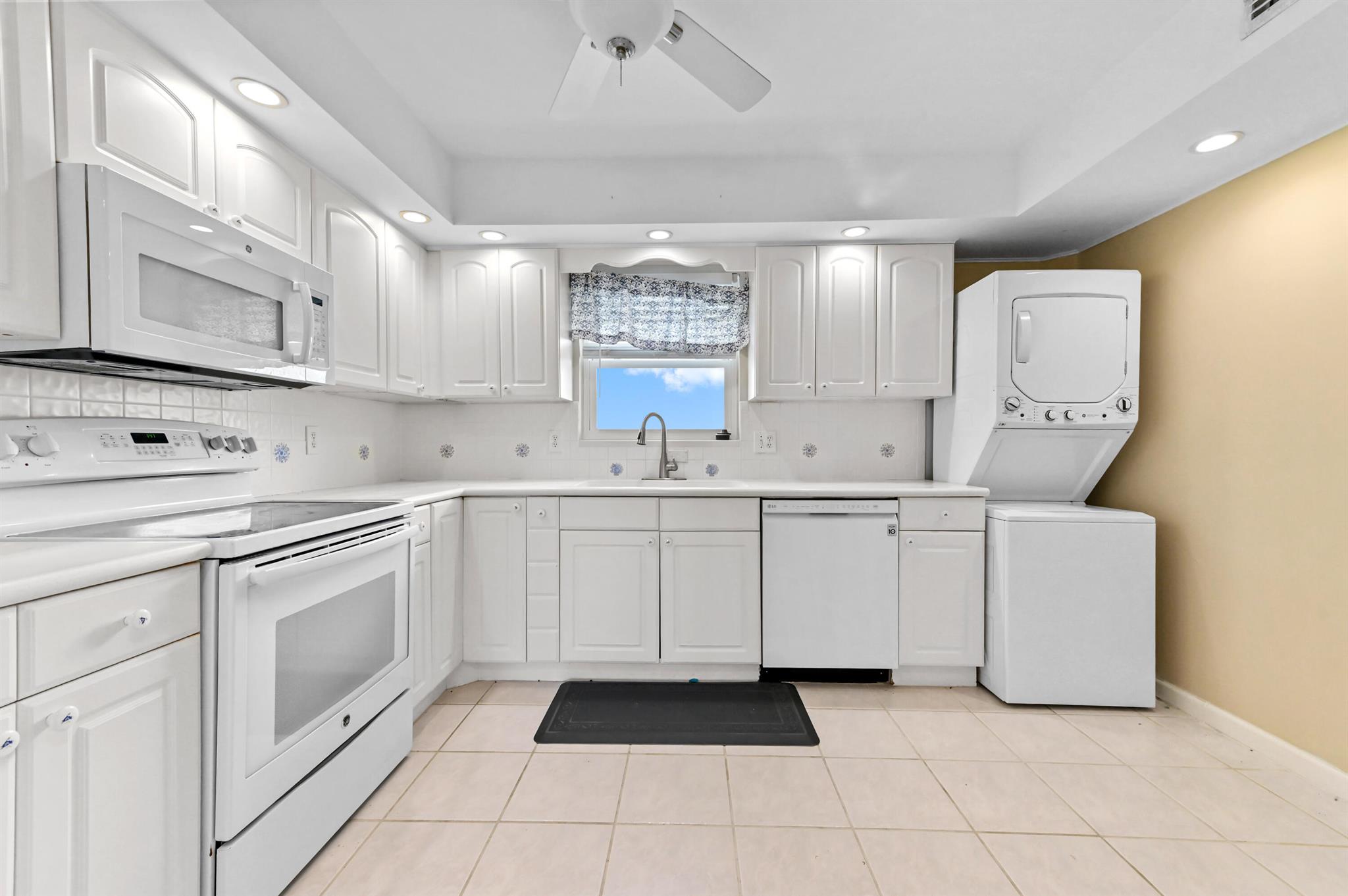 Welcome to this stunning waterfront condo in Lake Harbour Towers, a gated community offering a lifestyle of tranquility and convenience. This residence is a remarkable opportunity to create your dream home with a breathtaking Intracoastal backdrop. The unit is a blank canvas, ready for your personal vision. The spacious layout is bright and open, featuring a beautifully updated kitchen with white shaker-style cabinets, a full suite of white appliances, and an in-unit stackable washer and dryer, providing modern functionality.