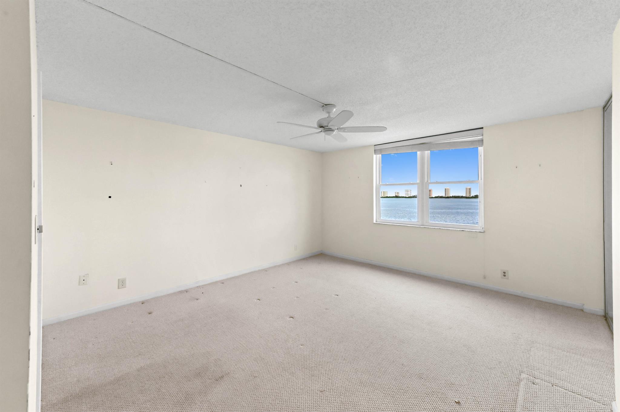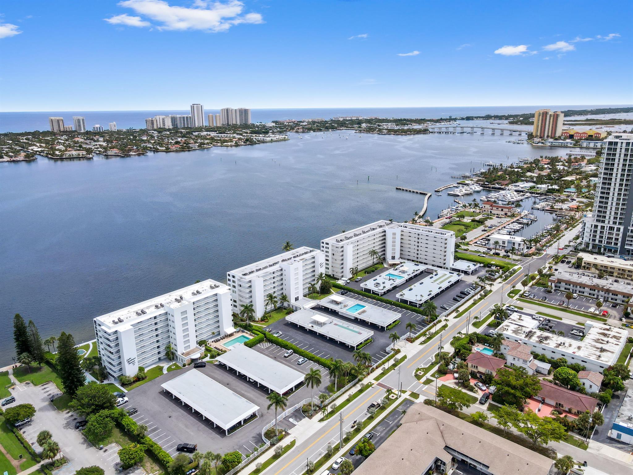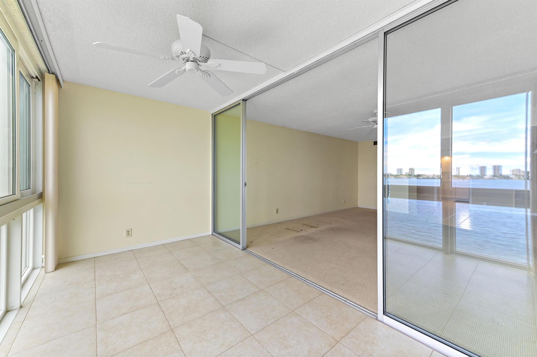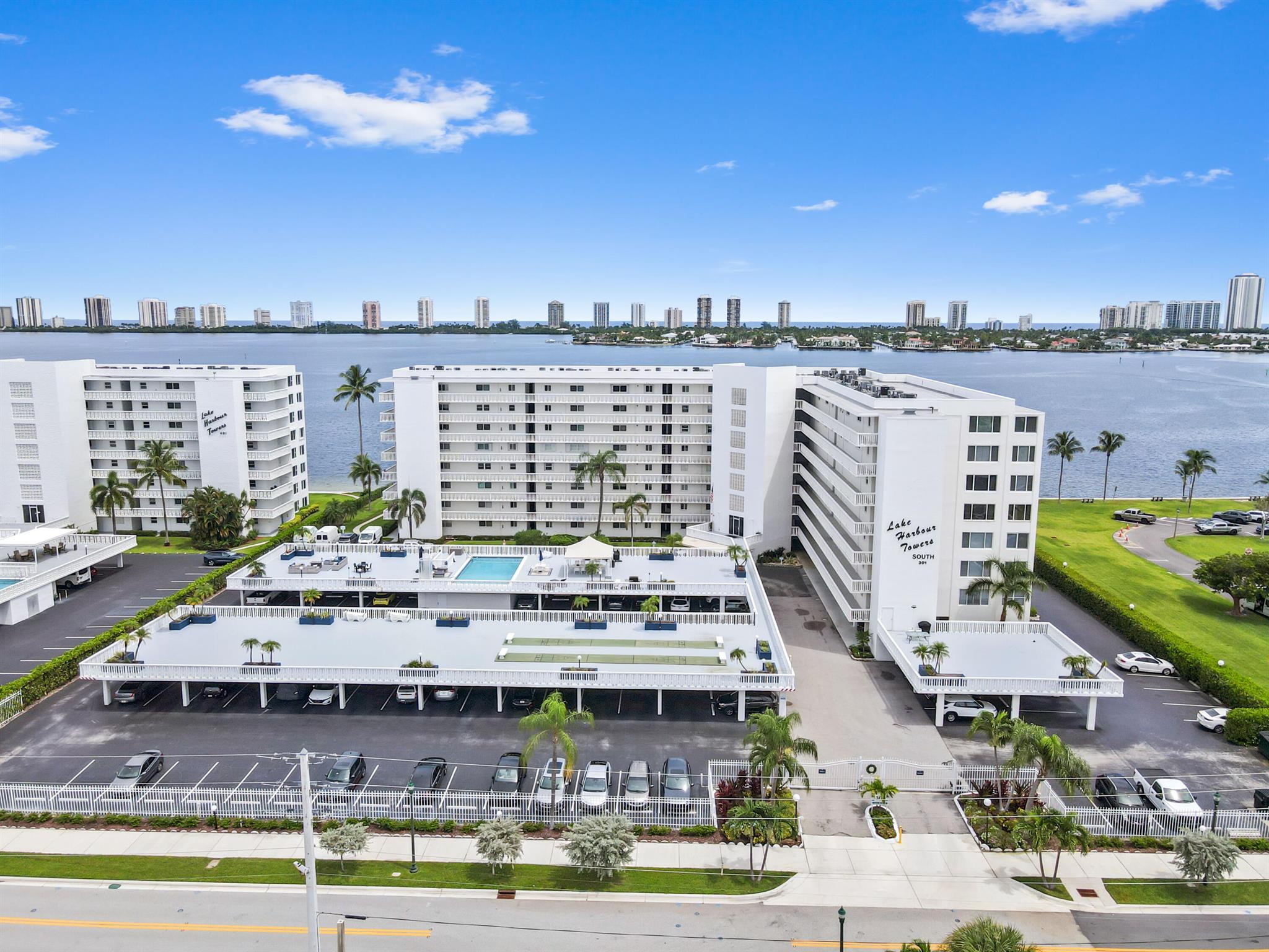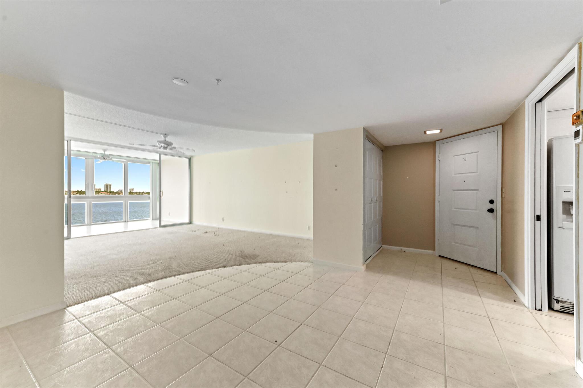 Welcome to this stunning waterfront condo in Lake Harbour Towers, a gated community offering a lifestyle of tranquility and convenience. This residence is a remarkable opportunity to create your dream home with a breathtaking Intracoastal backdrop. The unit is a blank canvas, ready for your personal vision. The spacious layout is bright and open, featuring a beautifully updated kitchen with white shaker-style cabinets, a full suite of white appliances, and an in-unit stackable washer and dryer, providing modern functionality.