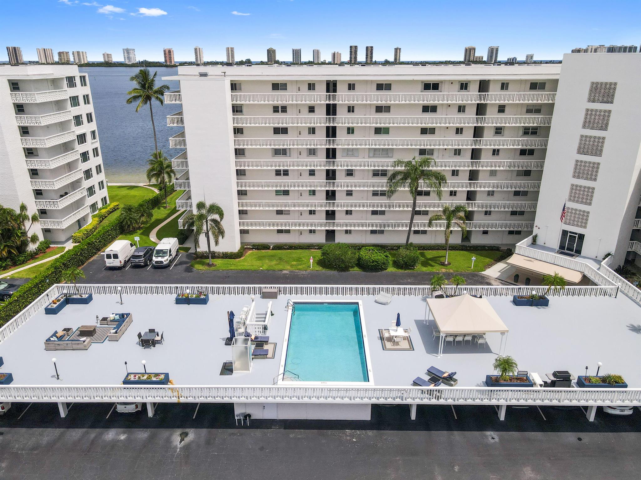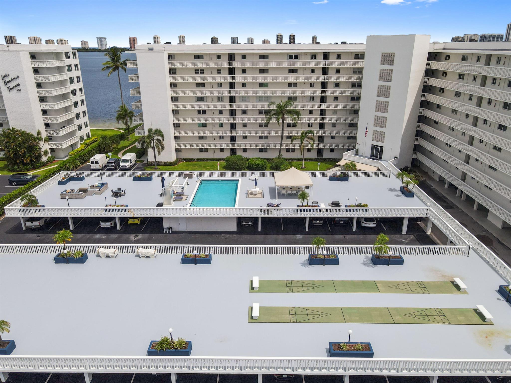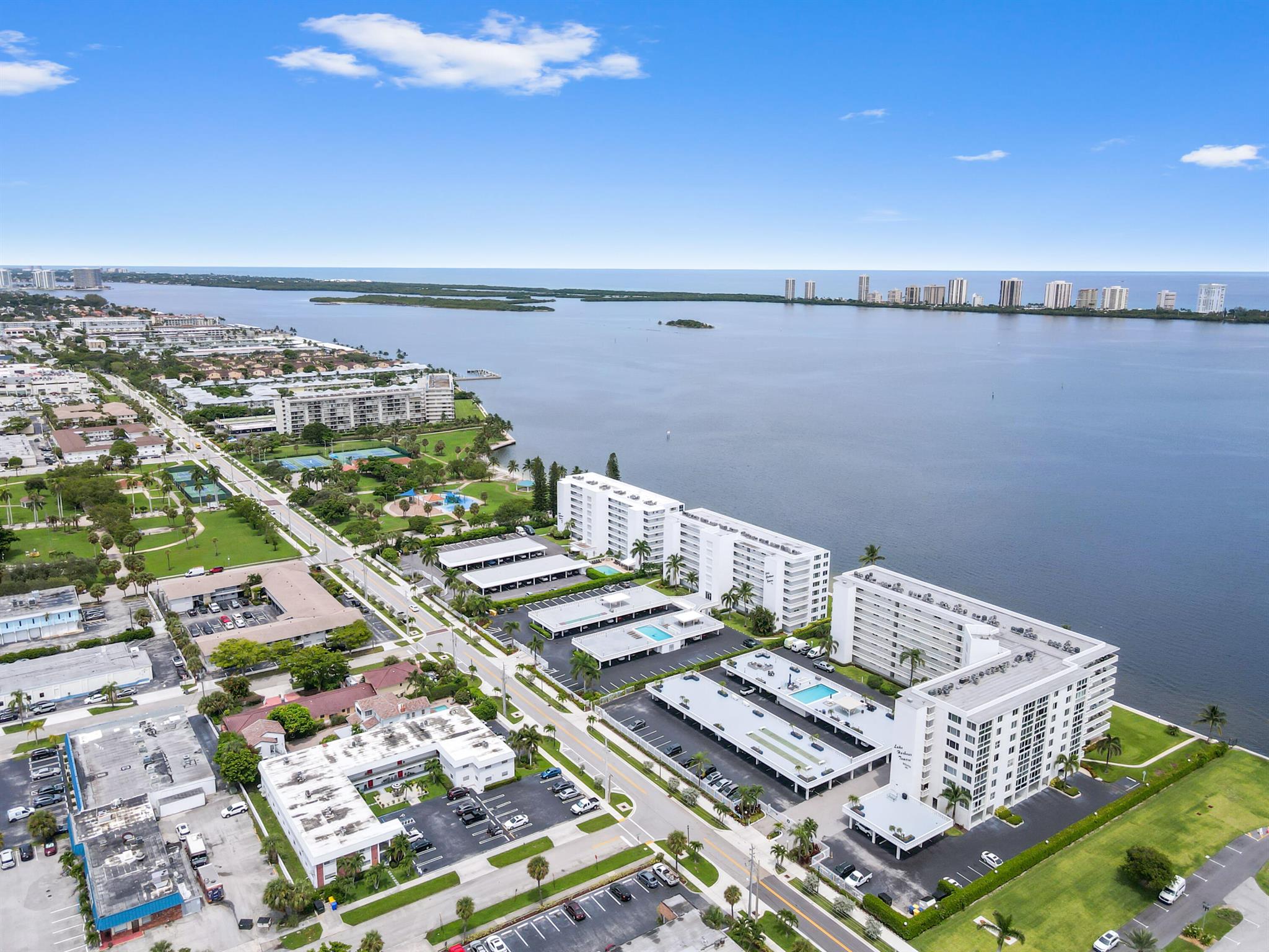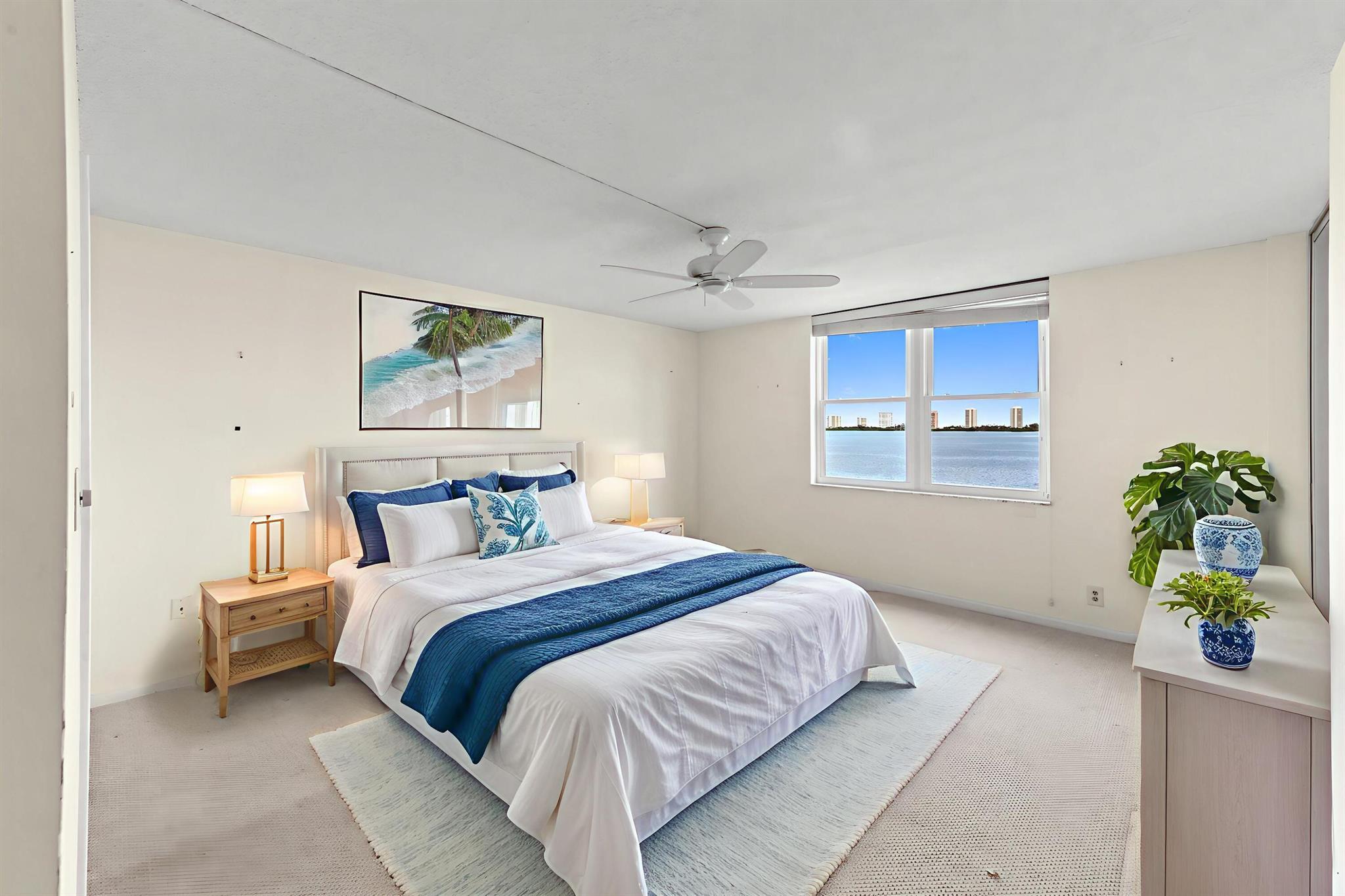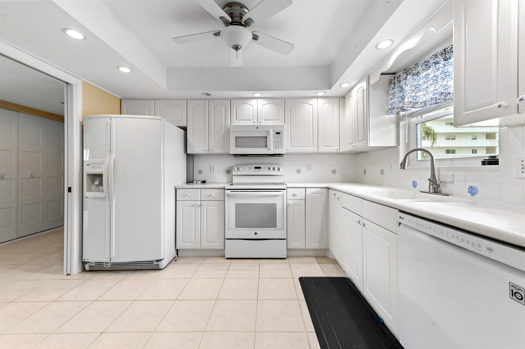 Welcome to this stunning waterfront condo in Lake Harbour Towers, a gated community offering a lifestyle of tranquility and convenience. This residence is a remarkable opportunity to create your dream home with a breathtaking Intracoastal backdrop. The unit is a blank canvas, ready for your personal vision. The spacious layout is bright and open, featuring a beautifully updated kitchen with white shaker-style cabinets, a full suite of white appliances, and an in-unit stackable washer and dryer, providing modern functionality.
