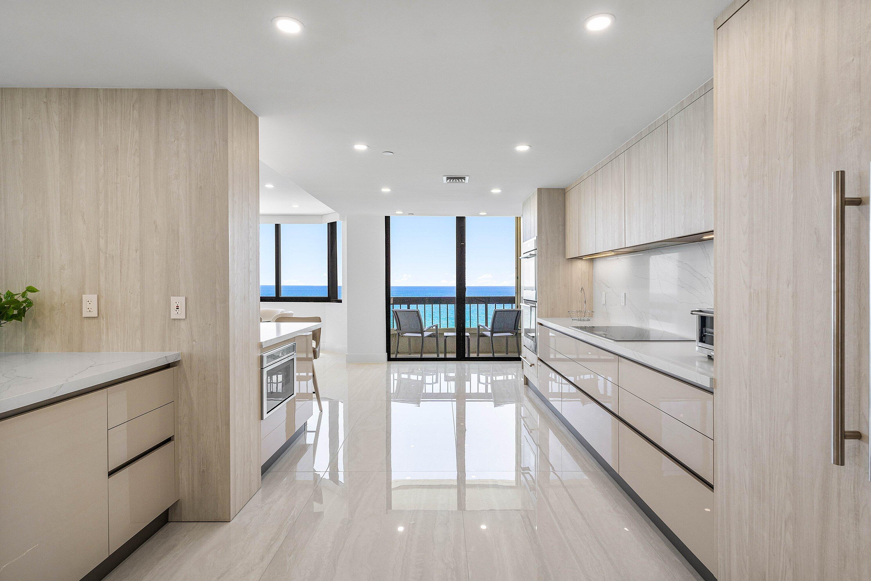 Experience coastal luxury at its finest in this completely renovated 3-bedroom, 3-bath residence with breathtaking ocean views from every room. Spanning over 2,300 square feet, this rarely available NE corner unit has been meticulously rehabbed with exquisite details & high-end finishes throughout.Soaring nine-foot ceilings, seamless luxury porcelain tile flooring and endless water views set the tone for refined coastal living. The expansive great room and kitchen flow into an east facing balcony--perfect for entertaining or just enjoying the peaceful sounds of the ocean.