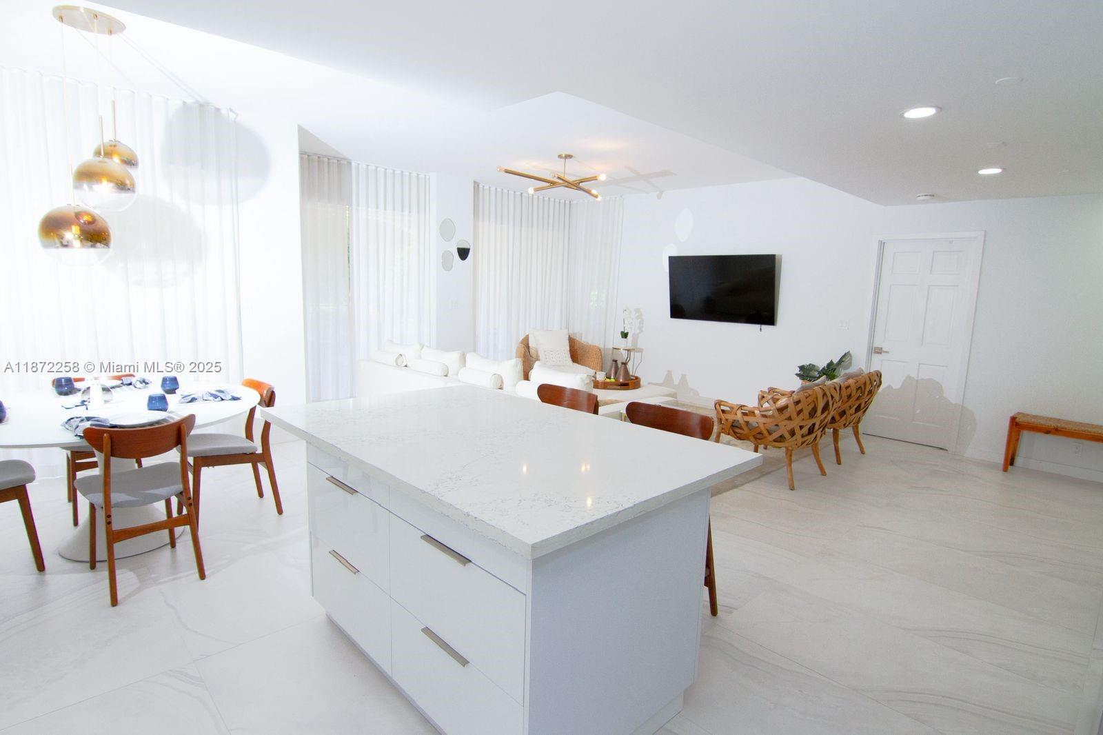Discover Fisher Island living in this exquisite renovated Seaside Village Condo located on the ground floor. This exceptional residence offers 2 spacious bedrooms, expansive terrace, marble floors, integrated kitchen elegantly finished in white with top-of-the-line appliances. New Hurricane windows and patio door were installed on Sept 2025 for added security on hurricane threats. Walking distance to Fisher Island's world class Racquet Club, private beach, the Beach Club, and the best oceanfront pool on Fisher Island. World-class like the historic Vanderbilt Mansion Clubhouse, seven restaurants, the P.B. Dye Jr. Golf Course, & Gourmet Market is also at walking distance. Short Term rental on this unit is permitted.