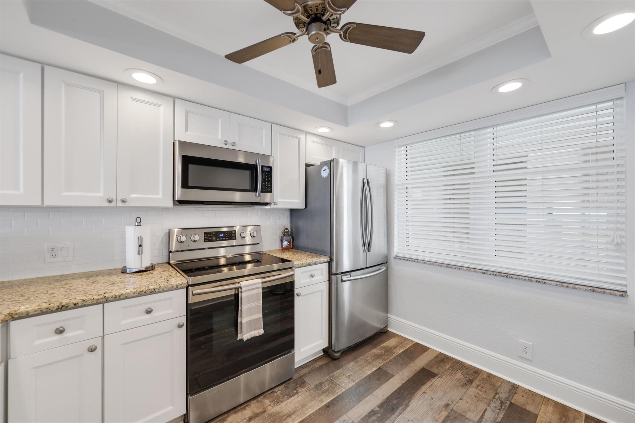 Beautifully renovated 2BR 2BA oceanfront condo''On The Sand''in Juno Beach fully furnished. Features include luxury vinyl flooring, hurricane impact windows & doors, updated baths, hi hats upgraded GE electric panel, RH light fixtures and RH and Arhaus Furniture. Kitchen offers custom wood cabinetry, stainless appliances, farmhouse sink, granite countertops and oversized breakfast bar. Master features dual vanities, walk in closet and sliders out to the balcony. Full size washer/dryer, newer AC and hot water heater. Building offers private beach access,a recently renovated community room and pool deck with covered outdoor areas overlooking the ocean. Well managed and well funded association- no current or pending assessments.