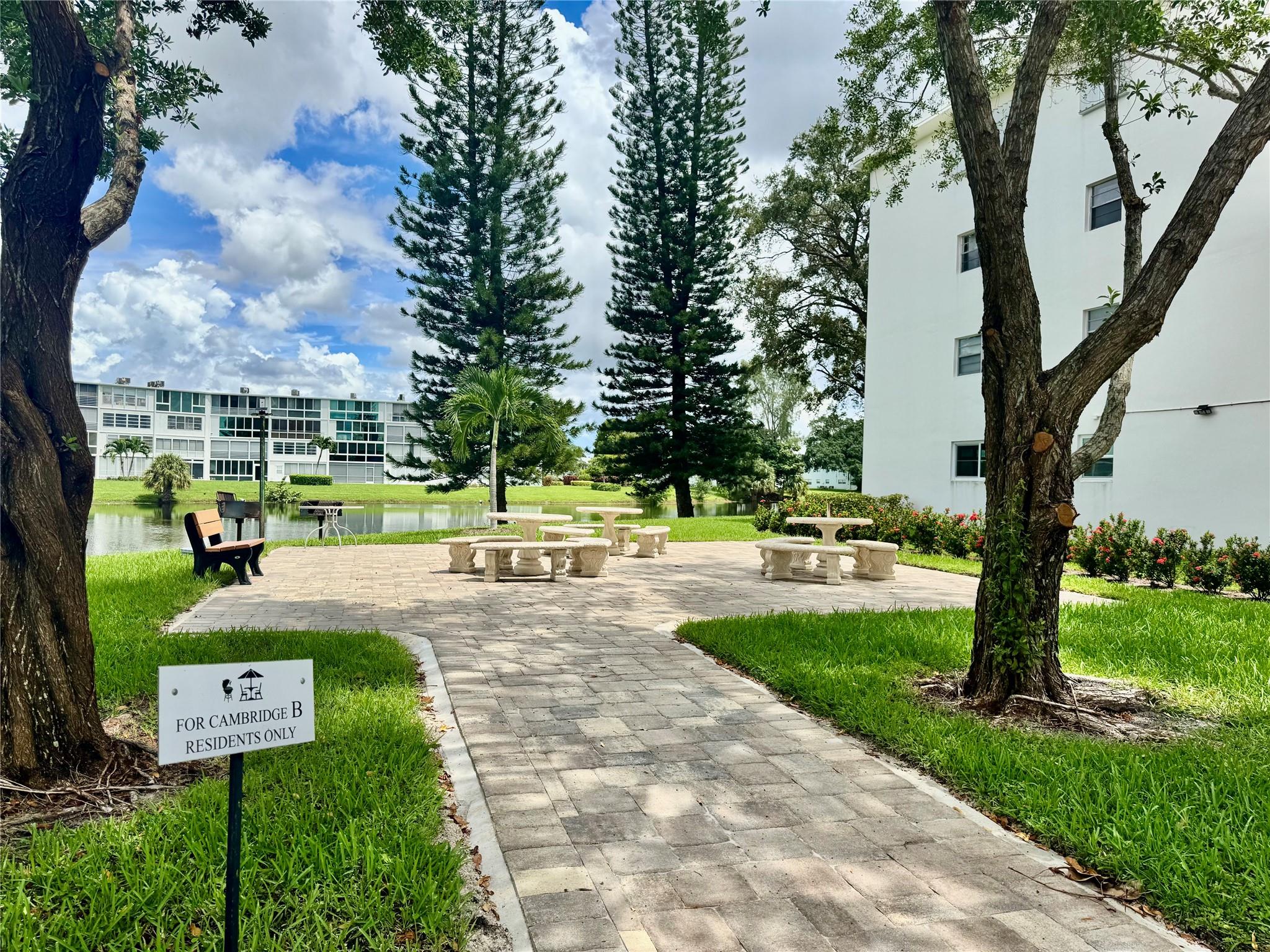 Water view condo - Century Village East. 1 bedroom and 1.5 bathroom on the 3rd floor of a desirable High-rise building. Patio/ Florida room and front door has impact windows installed in 2023. Patio is overlooking on the spectacular water view with nice and relaxing shade in the afternoon. Inside you will find bathroom with jetted tub. A/C is 4 years old. New elevator replaced in 2023. New roof replaced in 2025. Barbecue area. Condo is sold furnished. Painting in the living room and decorative items do not convey. Unit is very clean and ready to move in. 4 miles to the beach! Century Village has so much to offer. Free transportation to the shopping plazas, tennis courts, pickleball and Fitness Club with sauna, outdoor and indoor swimming pools This beautiful, safe home is waiting for you!
