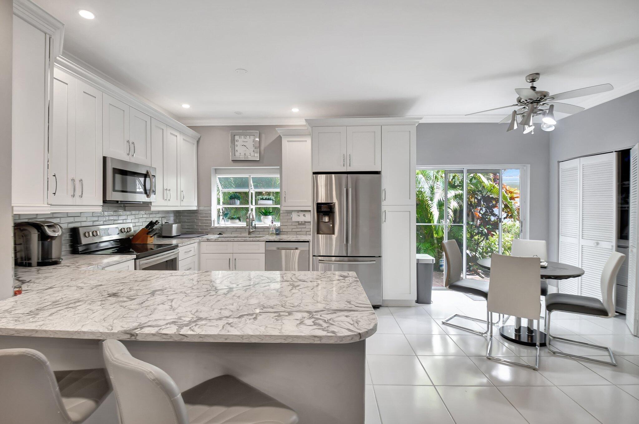 A BEAUTIFUL 3 BED & 2 BATH ON THE FIRST LEVEL FOR YOUR CONVENIENCE COMPLETELY UPDATED. BRIARWOOD SECTION IS A 55+ COMUNITY. THE KITCHEN FEATURES WHITE CABINETS WITH ALL STAINLESS STEEL APPLIANCES WITH NEW AC AND QUARTZ COUNTERS WITH A SPACIOUS EAT IN KITCHEN, GREAT ROOM OPEN CONCEPT FOR YOUR ENTERTAINING & RELAXATION. FORMAL DINING ROOM. WITH LARGE MASTER BEDROOM FEATURES WOOD FLOOR. COMPLETE TWO LARGE WALK IN CLOSETS, MODERN BATHROOM W/SEPARATE SHOWER AND TUB. GUEST BATHROOM HAS BEEN UPDATED WITH A WALK IN SHOWER. FLORDA ROOM IS ENCLOSED WITH HURRICANE GLASS FOR YOUR SAFETY. BRIARWOOD IS A GATED COMMUNITY FOR SAFETY WINDOWS HAVE WOODEN SHUTTERS. LIGHTED BATHROOM CABINETS. SHOWER HAS NO LIP FOR SAFETY. HURRICANE WINDOWS TO MAKE 3RD BEDROOM. CROWN MOLDING. ALL NEW CEILING FANS