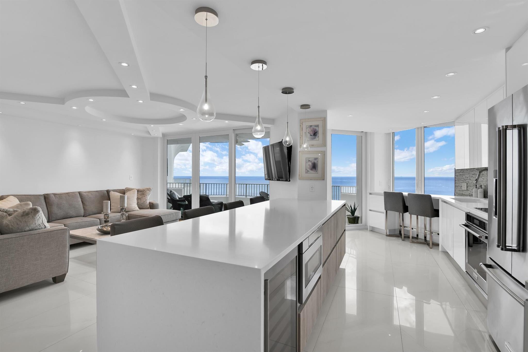Experience breathtaking ocean views from this beautifully renovated 2BR/2BA residence at The Chalfonte. Designed for modern coastal living, it features an open, light-filled layout with sleek tile floors and expansive floor-to-ceiling windows framing the blue Atlantic. The stylish kitchen offers custom cabinetry and premium appliances, seamlessly connecting to spacious living and dining areas. Both bedrooms enjoy serene ocean vistas and generous closets. The Chalfonte is Boca Raton's premier oceanfront community with resort-style amenities: direct beach access, oceanfront pool, fitness center, tennis & pickleball courts, social rooms, and 24-hour security--all just minutes from Mizner Park, dining, and shopping.