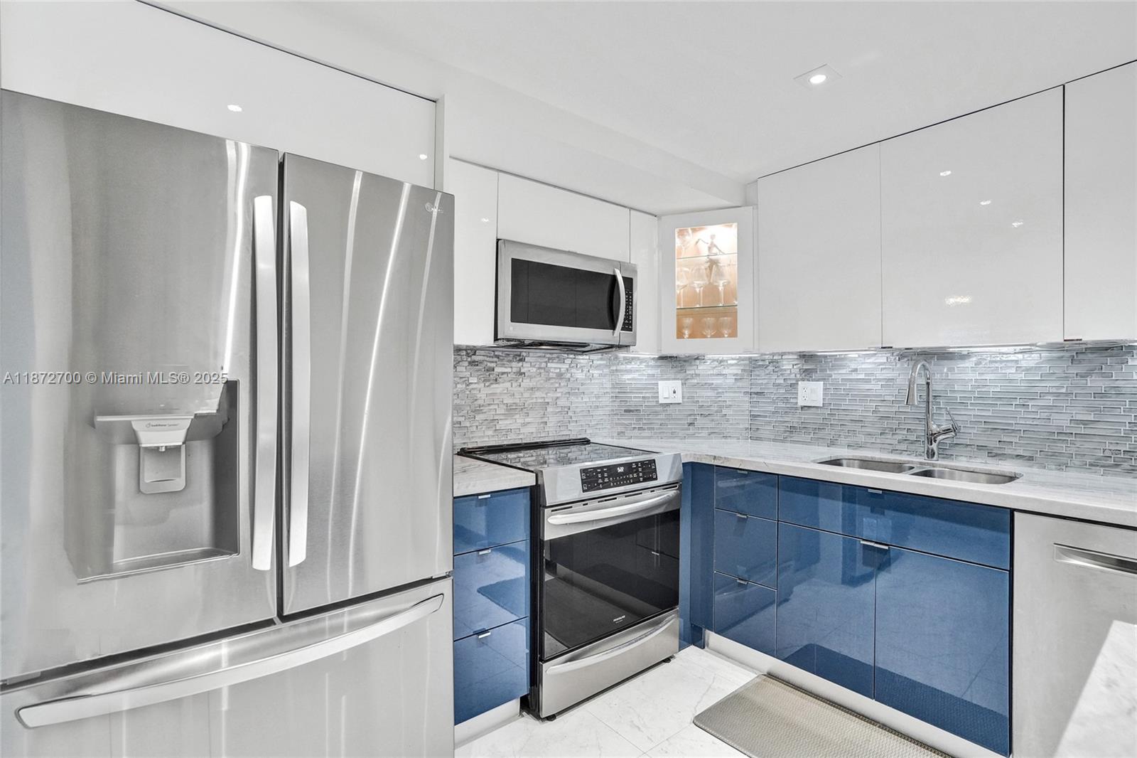 2Bd/2Bth Corner unit walking distance to the beach... a wraparound balcony and panoramic views, Impact Windows and Doors, NO popcorn ceilings, herringbone pattern marble floors, LED illuminated, anti-fog, bluetooth bathroom mirror, recessed lighting throughout, Induction slide-in range, LG 28cu.ft. French door smart fridge, beverage/wine cooler, Bosch dishwasher, modern kitchen cabinetry, quartz counters, glass tile backsplash and more! Community amenities include a convenience store, tennis courts, gym, pool, billiards/table tennis room, and business center.