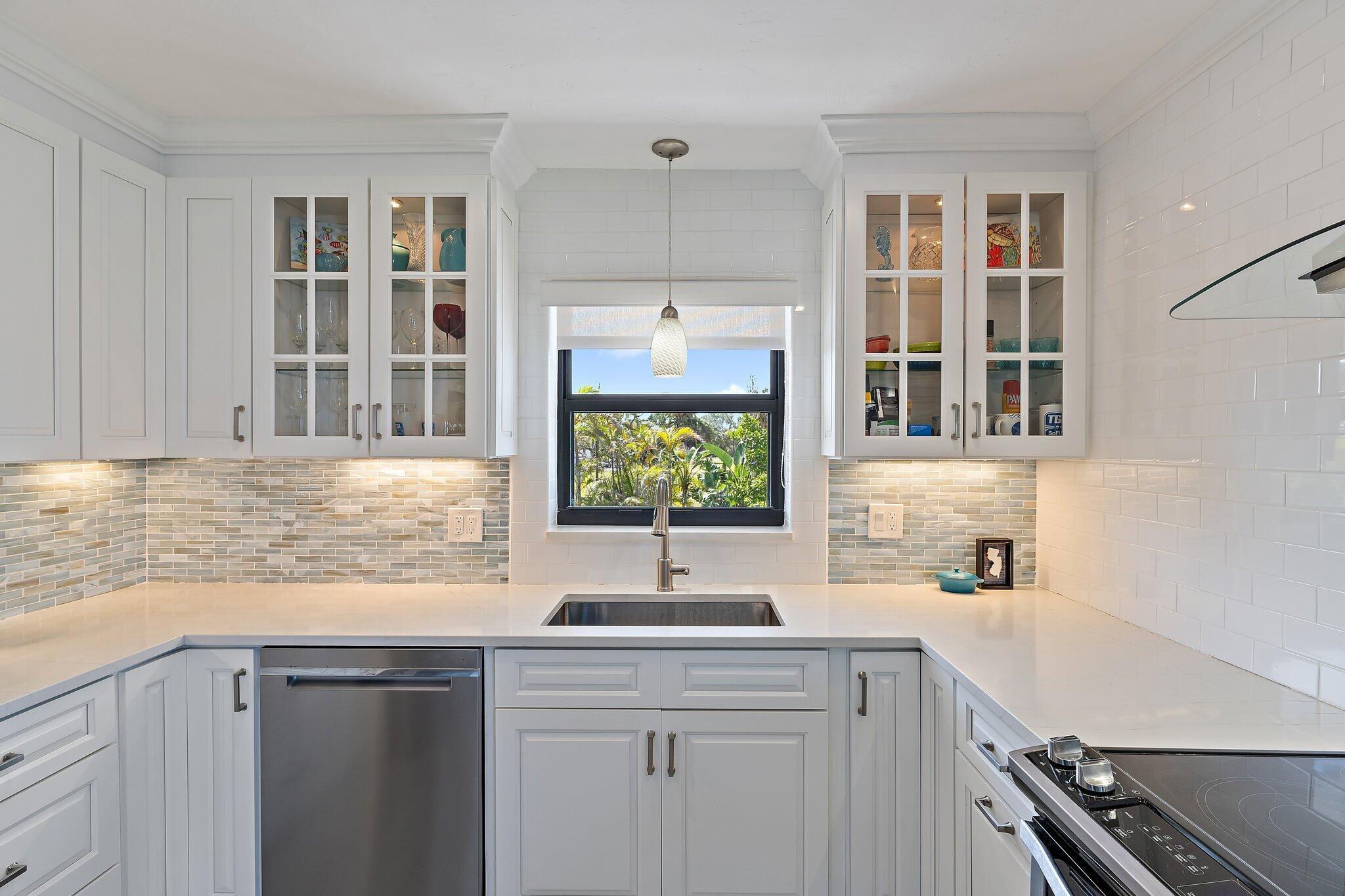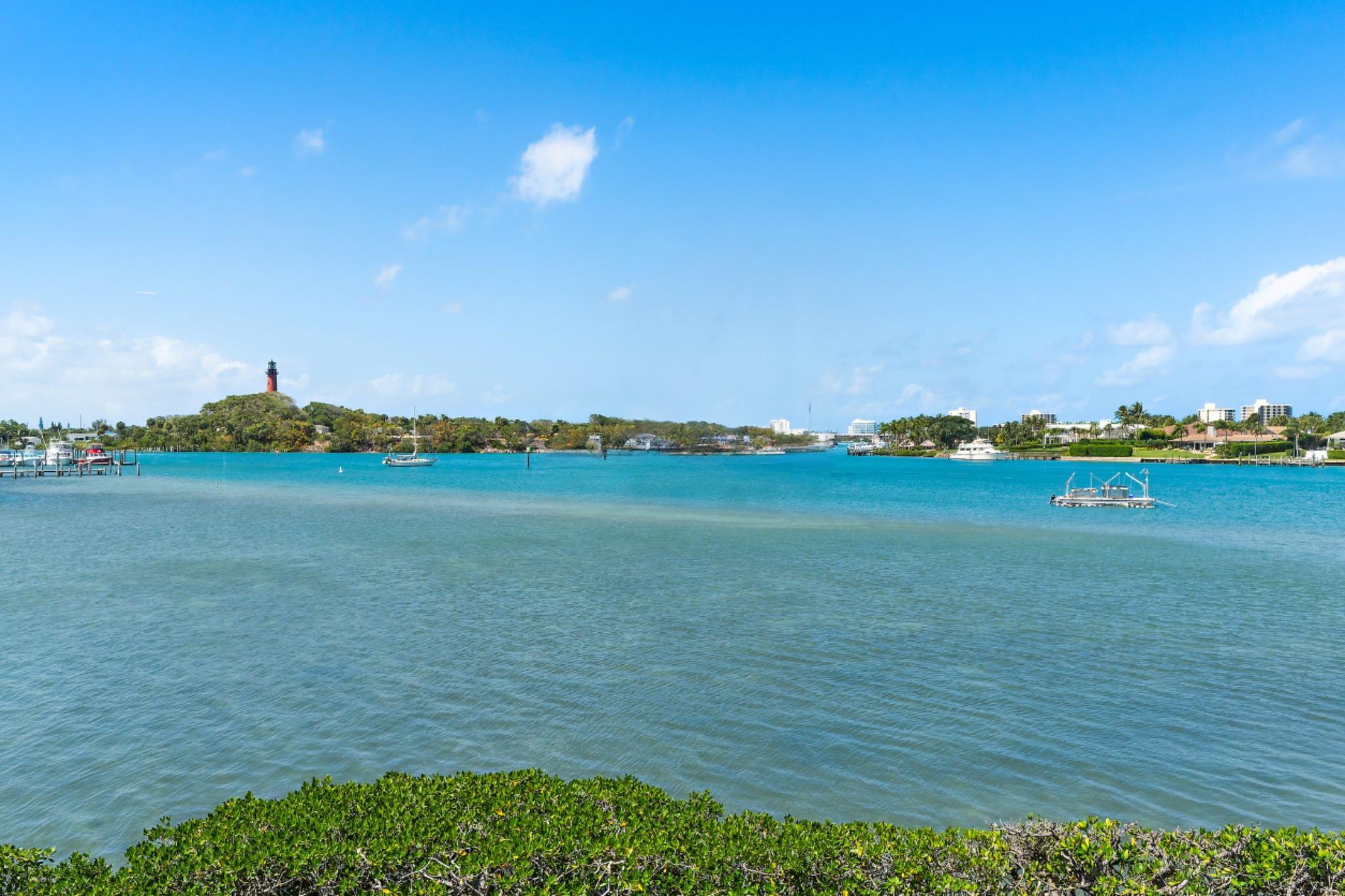 Looking for Million Dollar Views and ''Lock + Go'' convenience that is just around the corner from beautiful beaches, Jupiter's finest Waterfront Restaurants, shops, Boat Slips for lease, golf and more? This condo delivers all 3! Unrivaled Jupiter Lighthouse views + Unforgettable Lifestyle. Truly enjoy this completely renovated end unit with private entry and 180 degree views of the Jupiter Inlet. Entertaining is easy from the gorgeous kitchen that offers plenty of cabinet space, pots and pans drawer, Quartz counters, luxury appliances + breakfast bar. Wonderful open concept with ''Oak'' plank tile flooring, and Impact glass windows + doors that showcase the incredible view. Renovated baths are as pretty as a picture with high-quality tile work, walk-in showers w/ barn door enclosures.