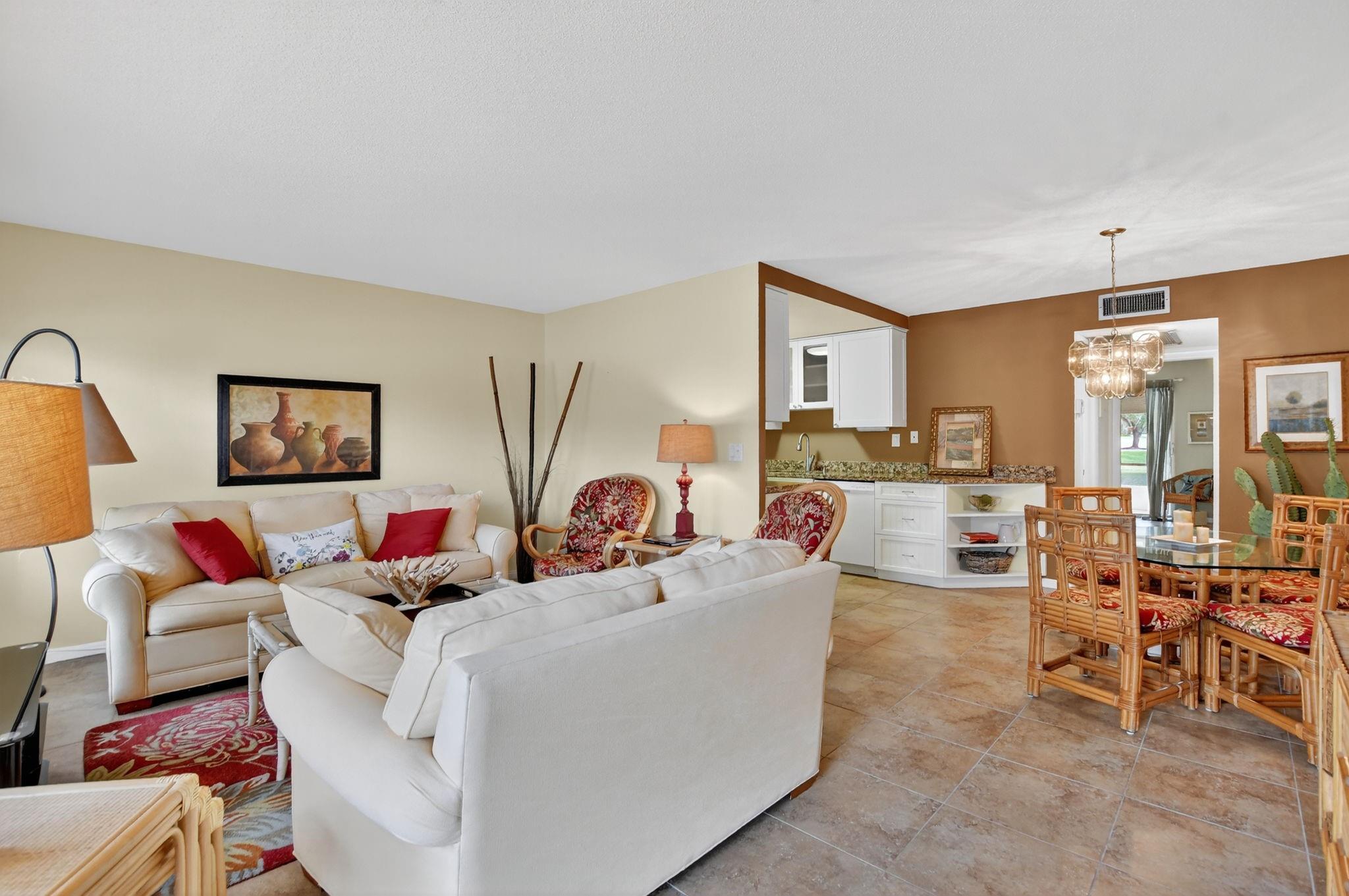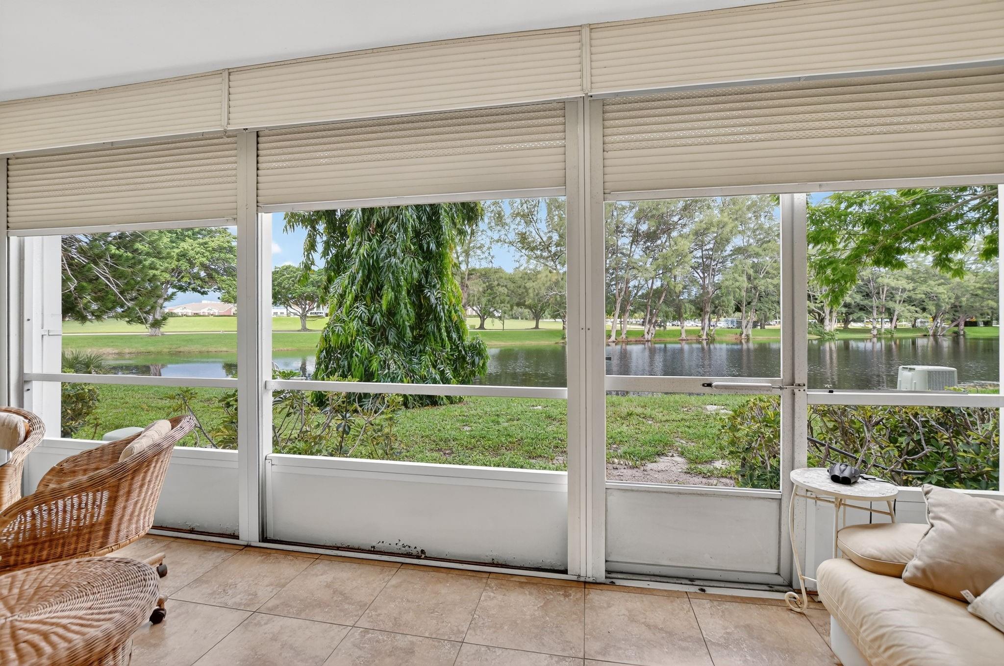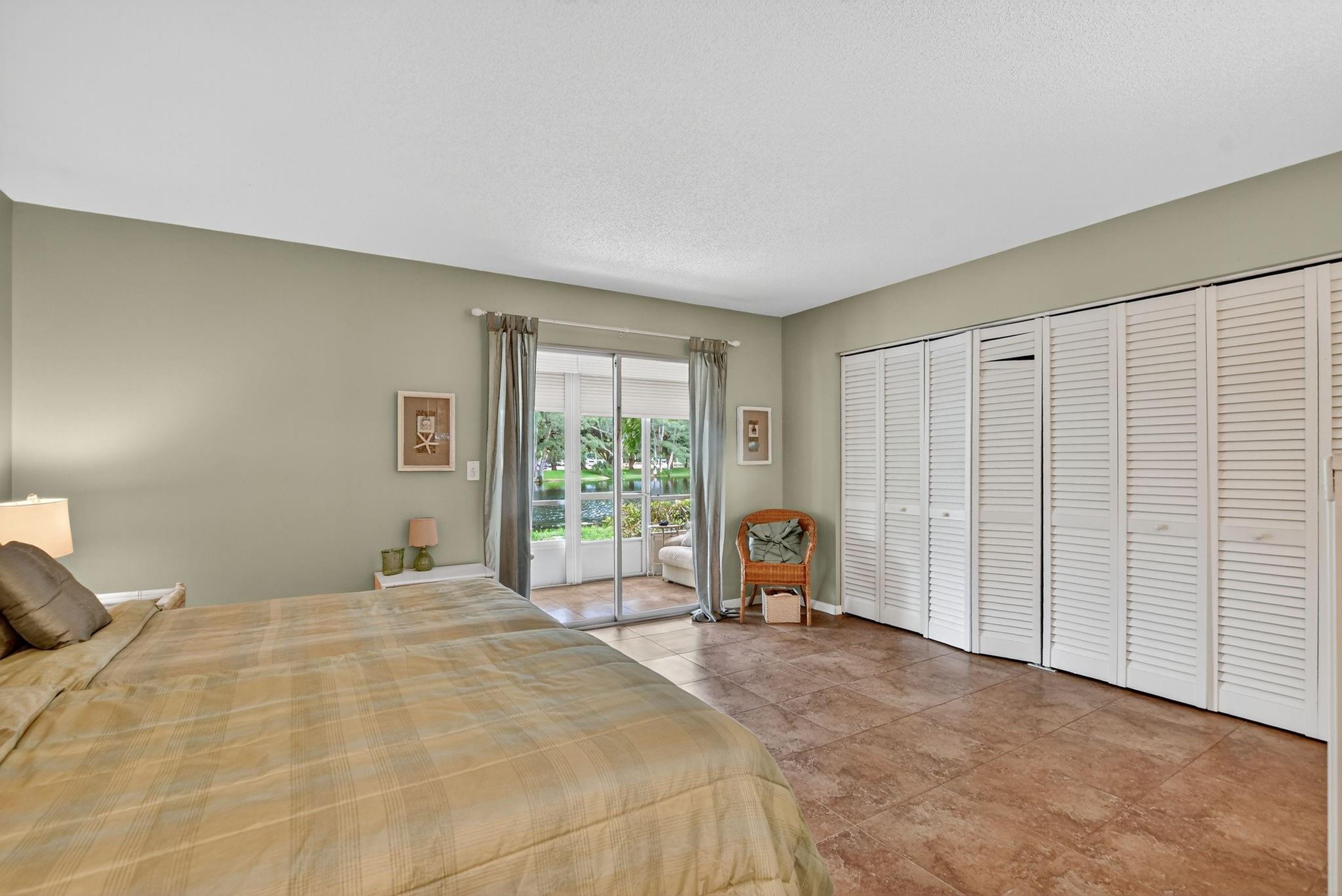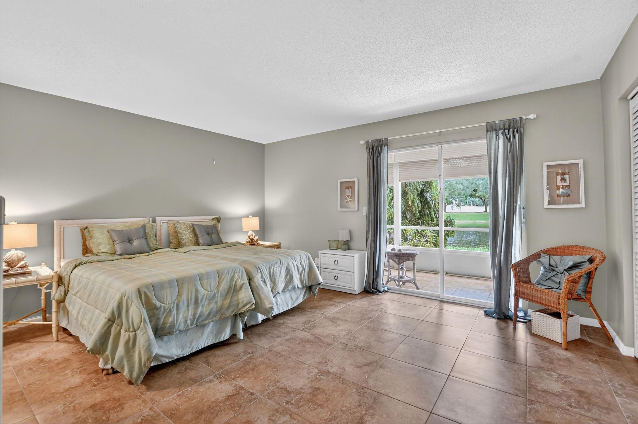 Paradise awaits in this UPDATED 1ST FLR, 1 bdrm, 1.5 bath condo located just steps to the magnificent CLUBHOUSE! Enjoy gorgeous sunsets from your back patio w/a beautiful view of the LAKE. Convenient pkg. rt outside your front door. Many wonderful features incl tile flrs thru-out, lovely galley kit w/granite cntrs, NEW A/C, remodeled bathrms w/tub/shower in primary & roll up shutters in patio. Unit comes nicely furnished incl 2 sleeper sofas in liv rm! Fully equipped & ready to move right in! YOU WILL LOVE TO CALL THIS HOME! Gated comm w/24 hr sec, free busses, pools, tennis, pickleball, cafe, putting green, shuffleboard, STATE OF THE ART CLUBHOUSE w/fitness cntr, indr & outdr pools, classes & clubs of every type, free movies, theater. Close to shopping, beach & dining! Assoc. Claims 55+