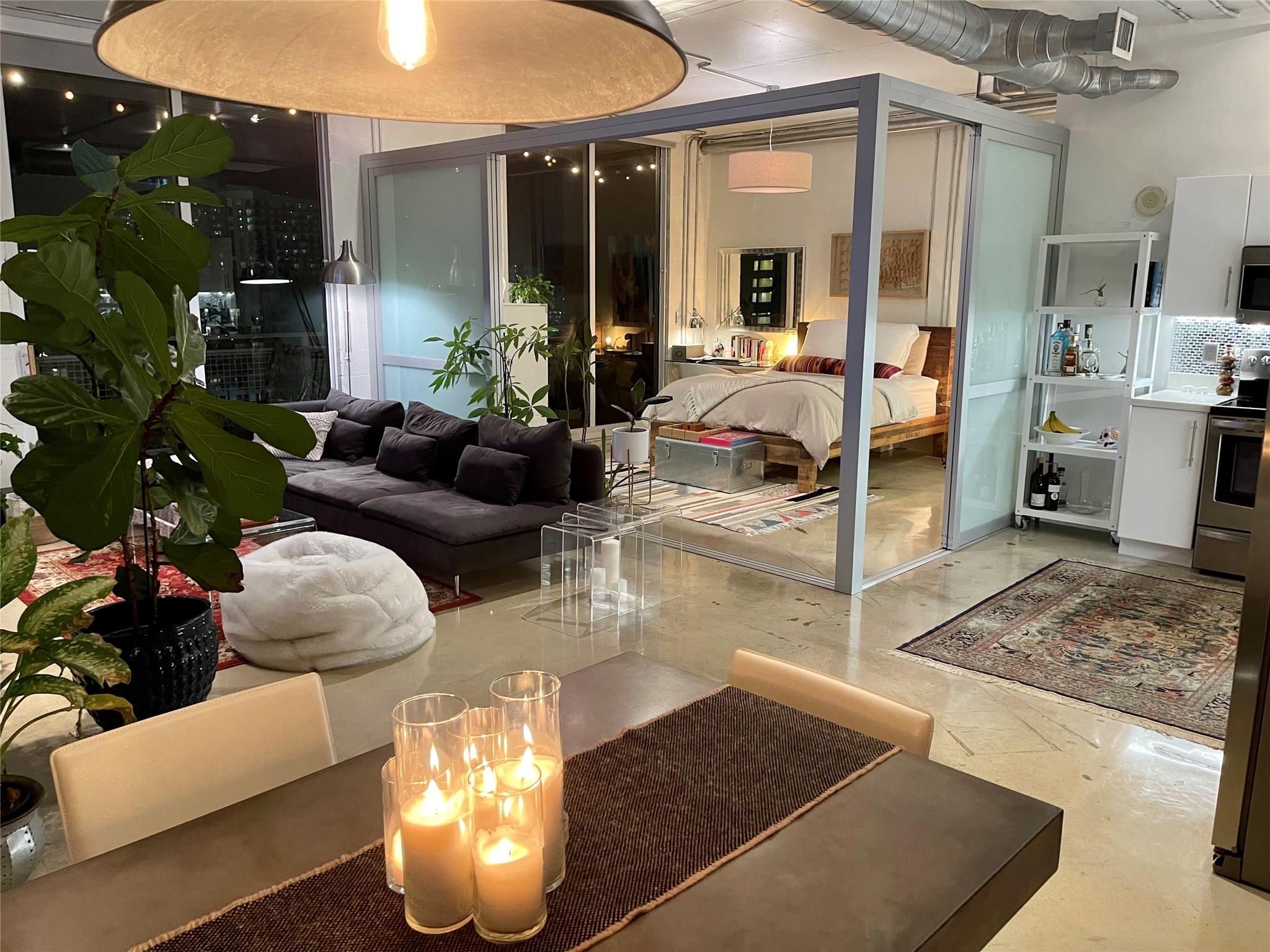 Unique industrial chic loft-style 2/2 condo located in trendy Edgewater close to everything. Boutique 62-unit building with low maintenance fees. This unit is south facing with lots of natural light. Beautiful views of the city skyline and bayside water views from every room. Upgraded kitchen and bathrooms, electric blackout blinds throughout with floor-to-ceiling windows, 10’ ceiling heights, custom retractable glass partition walls in the master bedroom, polished concrete flooring. Open concept large living space, perfect for entertaining. Covered balcony the entire length of the unit. Laundry in unit. Brand new AC system. 8 minutes from Miami International Airport. Internet included. Easy to show. Available immediately.