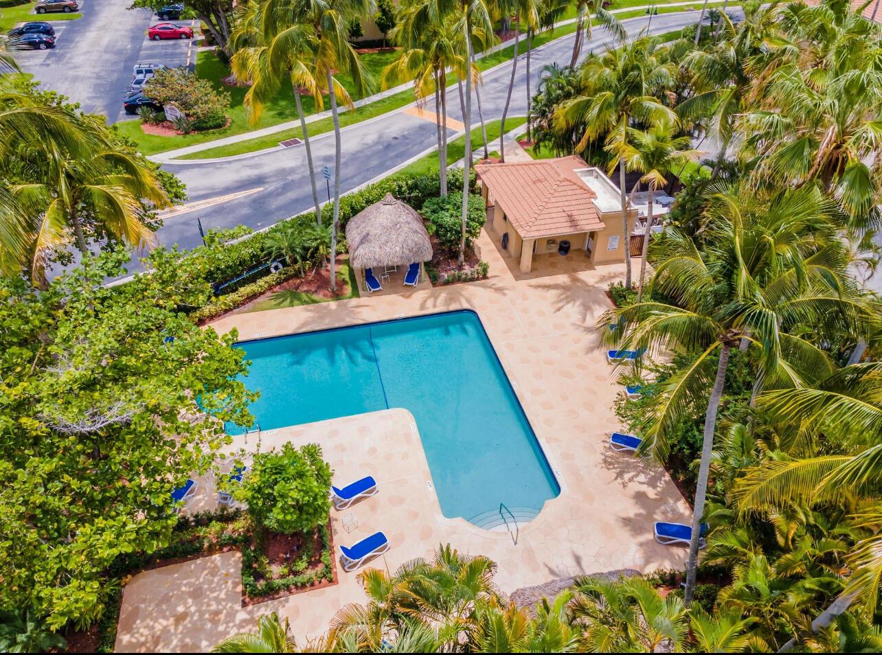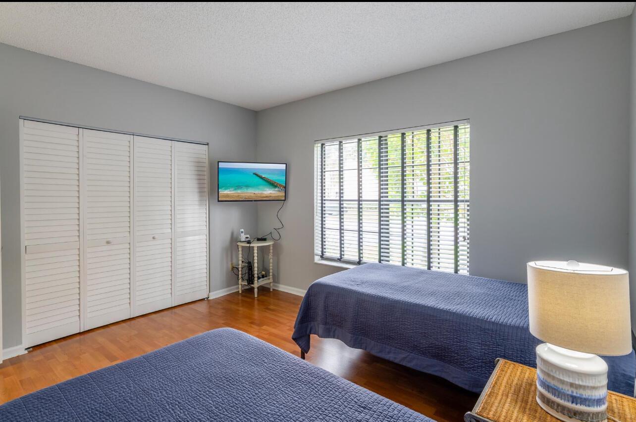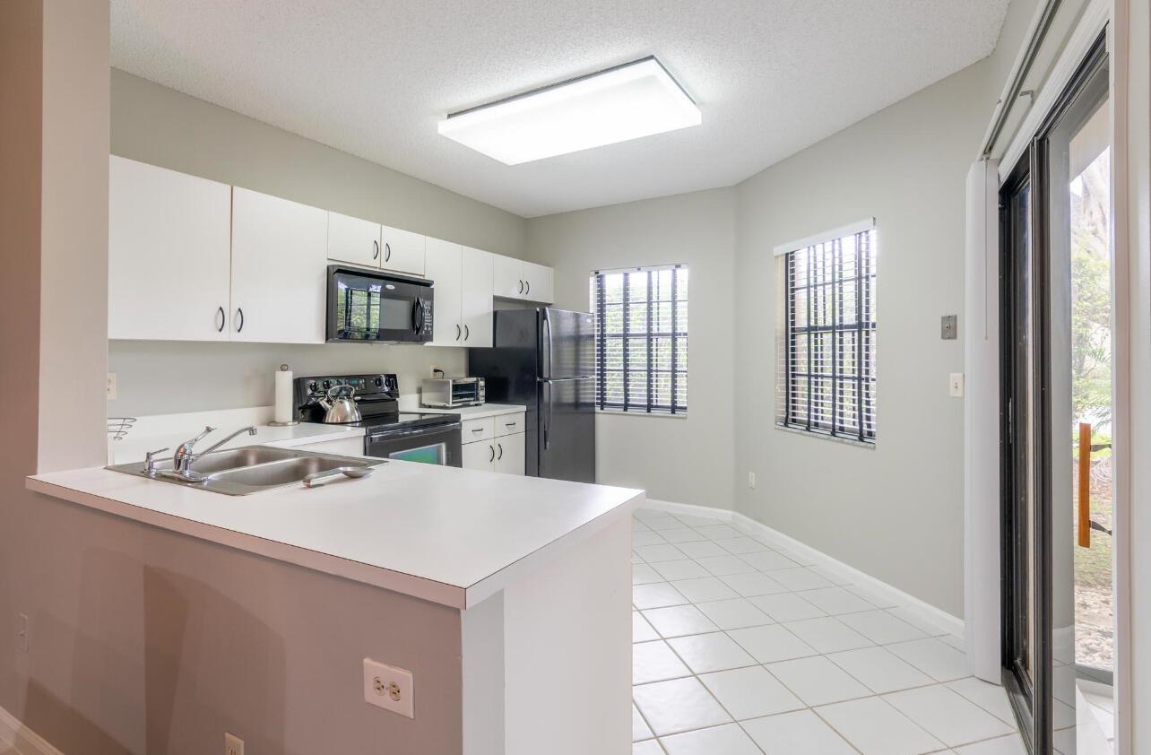 This 2 bedroom 2 bath condo offers the ease of first floor living in the beautiful 24 hour manned gated community of Boca Pointe. Living room / dining room combination, open kitchen, and a sliding glass door to your enclosed patio. The primary bedroom has a large walk in closet, sliding glass doors to the balcony and an ensuite bathroom. Washer and dryer is located inside the condo in a hall closet and there is a storage room outside by the front door. Located close to the satellite pool this condo is move in ready, being sold fully furnished and turnkey. Pet weight restriction up to 50 pounds for owners. ''A'' rated schools!