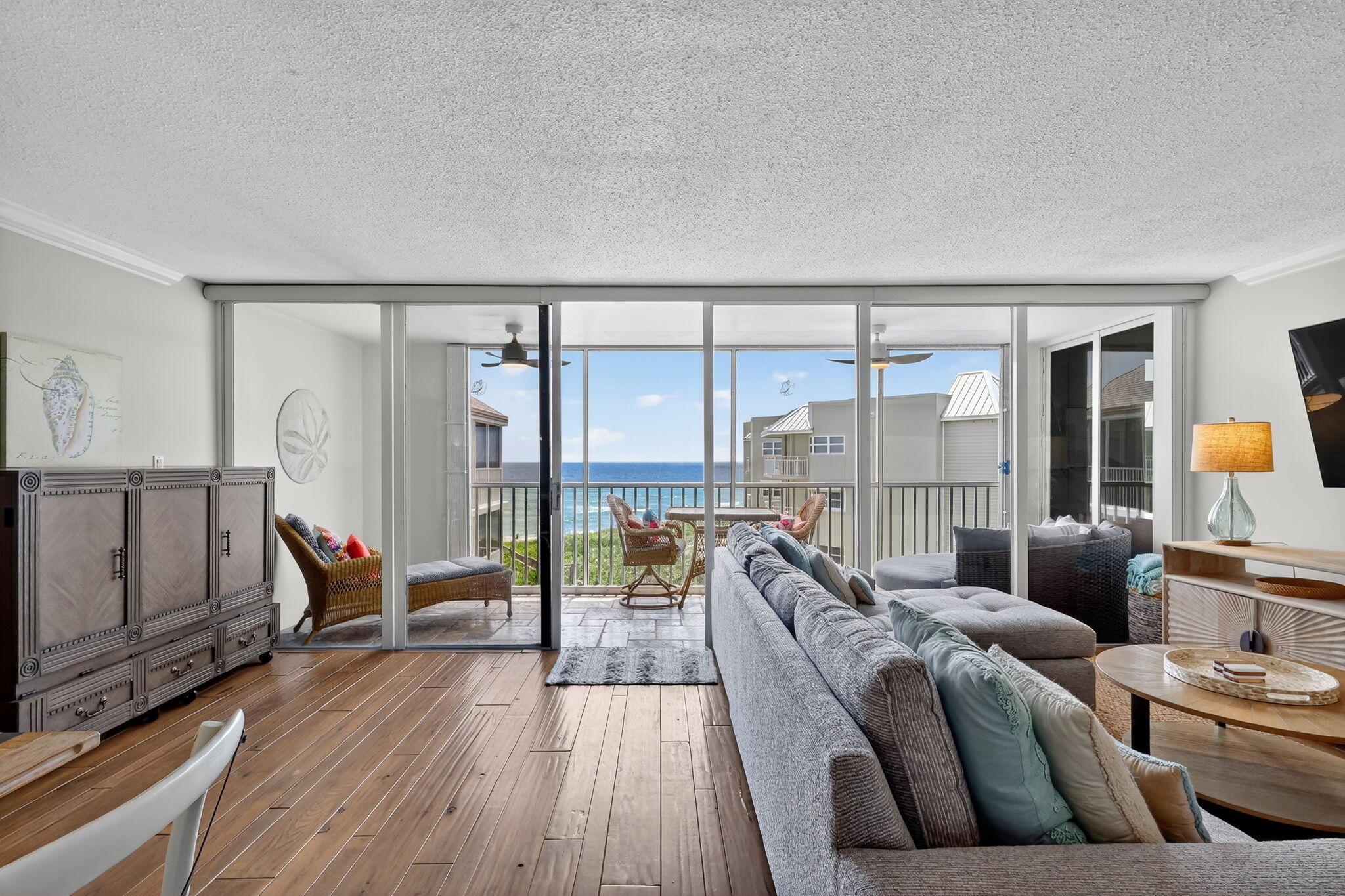 Fully-furnished oceanfront penthouse! Welcome to your coastal retreat on Hutchinson Island perfect for investors, seasonal residents or year-round living. Light-filled and impeccably designed, this condo features an open-concept layout and floor-to-ceiling glass doors that open to a spacious balcony.Move-in ready with an updated kitchen, granite counters, in-unit laundry, and generous storage including a walk-in pantry. The primary suite boasts ocean views and balcony access.Located in a well-maintained, elevator building with a heated pool and private path to the beach. Membership is available at the Marriott Ocean Club.Concrete restoration has been completed and all special assessments have been paid. Excellent rental history. Booked from Feb 1 - April 15.
