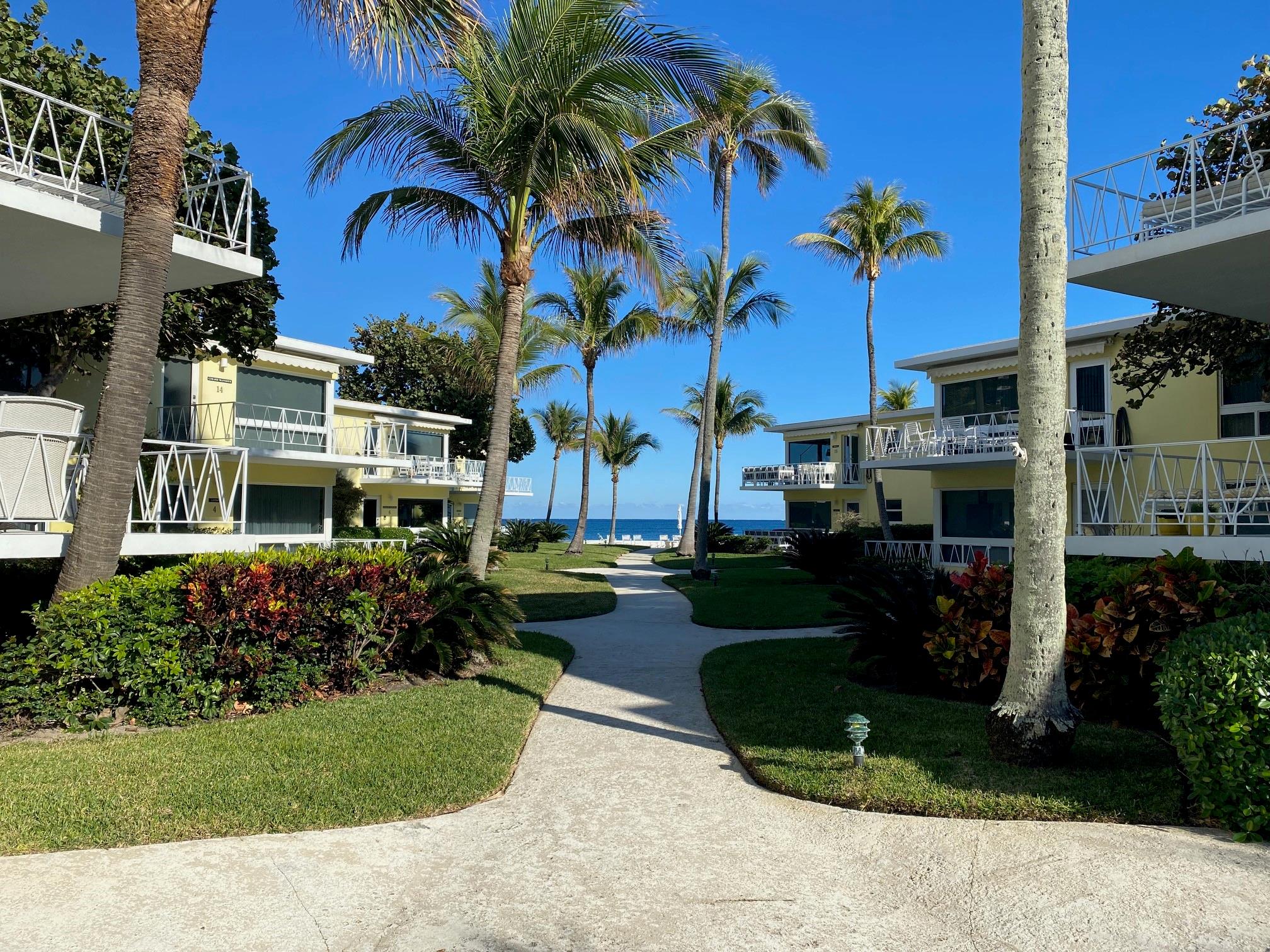 True Old Florida Charm with Mid-Century Character, nestled Ocean Front with Magnificent Ocean Views! This 2 bdrm/2bath Gated Co-Op, in Lauderdale By The Sea, has only 14 units. Boasting 1280 sq ft, with an open living, dining and kitchen area, has floor to ceiling windows, doors, and two large open balconies that face east and west. Tiled floors, newer roofs, concrete restoration, and impact windows and doors in 2019. New central sanitary sewer system to municipal sewer line and brick paver driveway in 2025. Covered Parking, Heated Pool in the sun and Swaying Palm Trees all on one of the Nicest Beaches in the County! Minutes to Lauderdale By The Sea and Pompano, boasting shops and eateries, and piers. Here IS your Beautiful Casual Florida Lifestyle. Onsite Property Management, too.