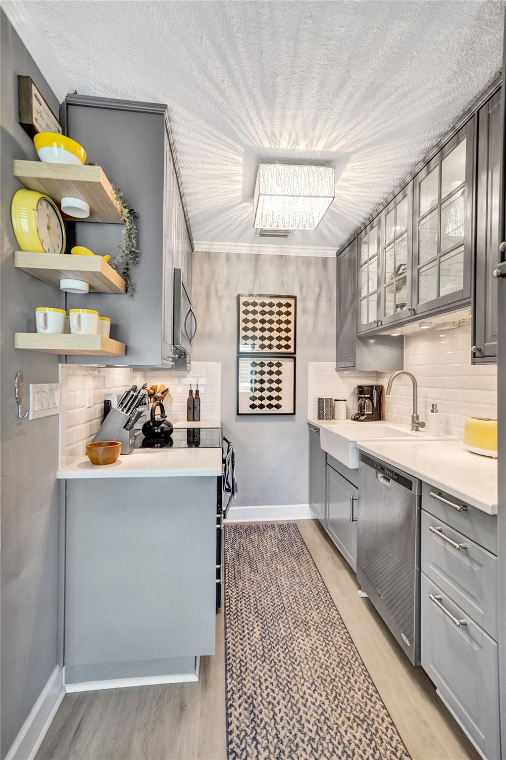 Completely Renovated Condo with Modern Kitchen and Bath being sold turn key including high end furniture. Newer A/C & tankless water heater, updated electrical, custom lighting, luxury flooring, impact windows, and plantation shutters. Kitchen features quartz counters, subway backsplash, stainless appliances, farm sink, and desk nook. In unit washer & dryer! Great location in Middle River. This private key west style community is just South of Wilton and convenient to Flagler Village, Las Olas, and Downtown. Gated community, heated pool, pet friendly, guest parking, and annual rentals OK. Call today for more info.