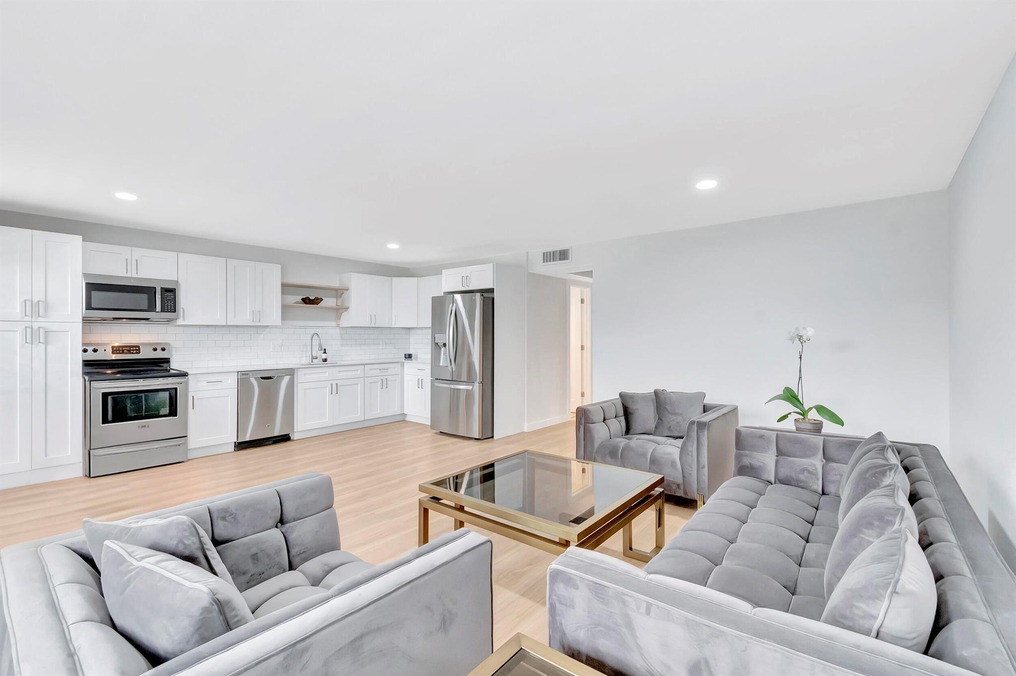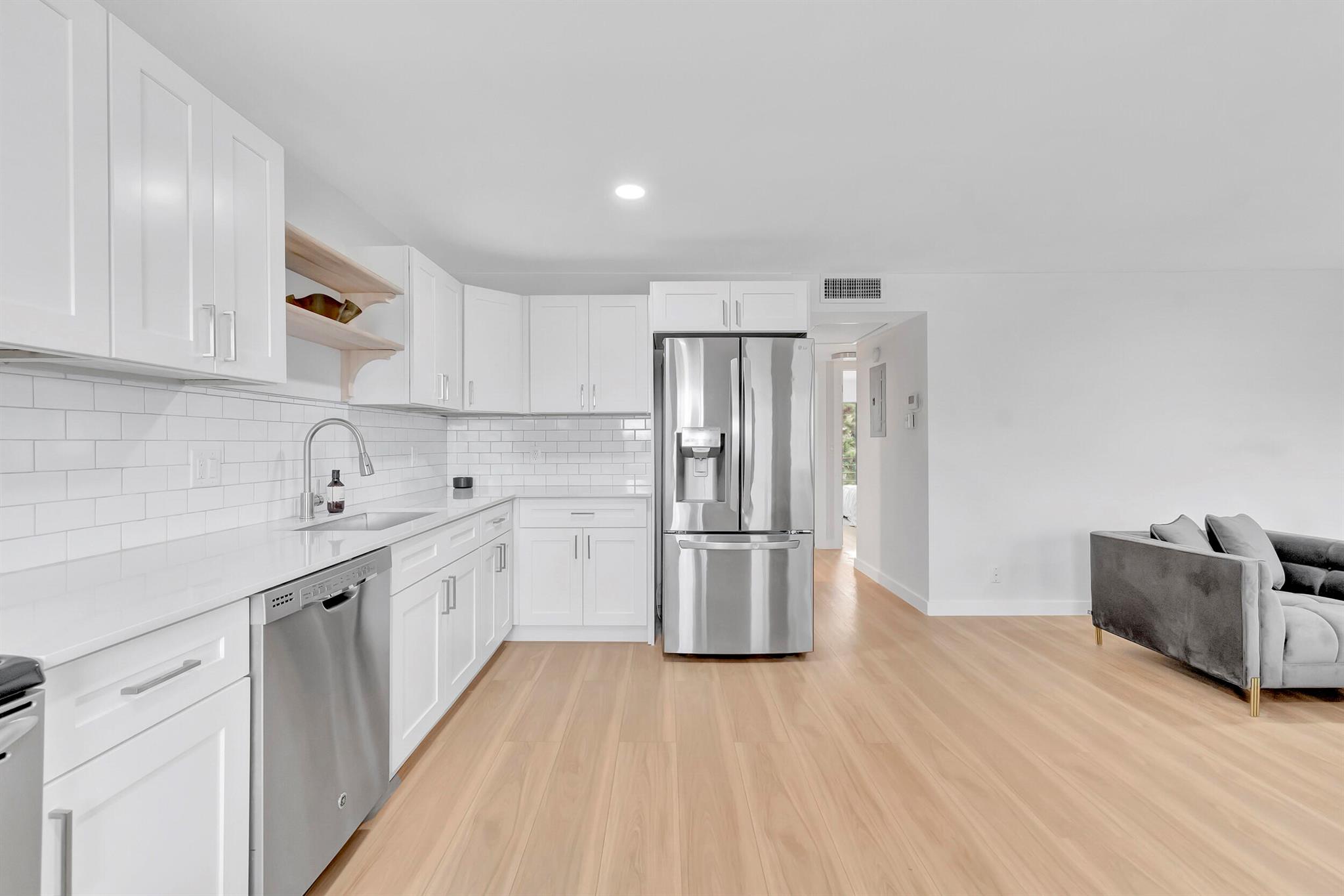 Beautifully renovated 2BR/2BA 2nd-floor condo in Century Village East with panoramic lake views. Updated from floor to ceiling with an open kitchen featuring white quartz counters, subway tile backsplash, stainless appliances and wall-to-wall cabinetry with four-door pantry. New wood-like waterproof vinyl flooring, recessed lighting, no popcorn ceilings, new vanities, toilets, LED mirrors & stand-up showers. New GE panel, HWH, doors, window treatments & freshly painted. Enclosed lakefront patio with porcelain wood-plank tile. Partially furnished with never-used living room set. Short walk to pool/tennis, close to clubhouse and West Gate. No assessments, strong reserves, Milestone & SIRS complete. Buyers may qualify for up to $10k down-payment + $7,500 closing cost assistance.