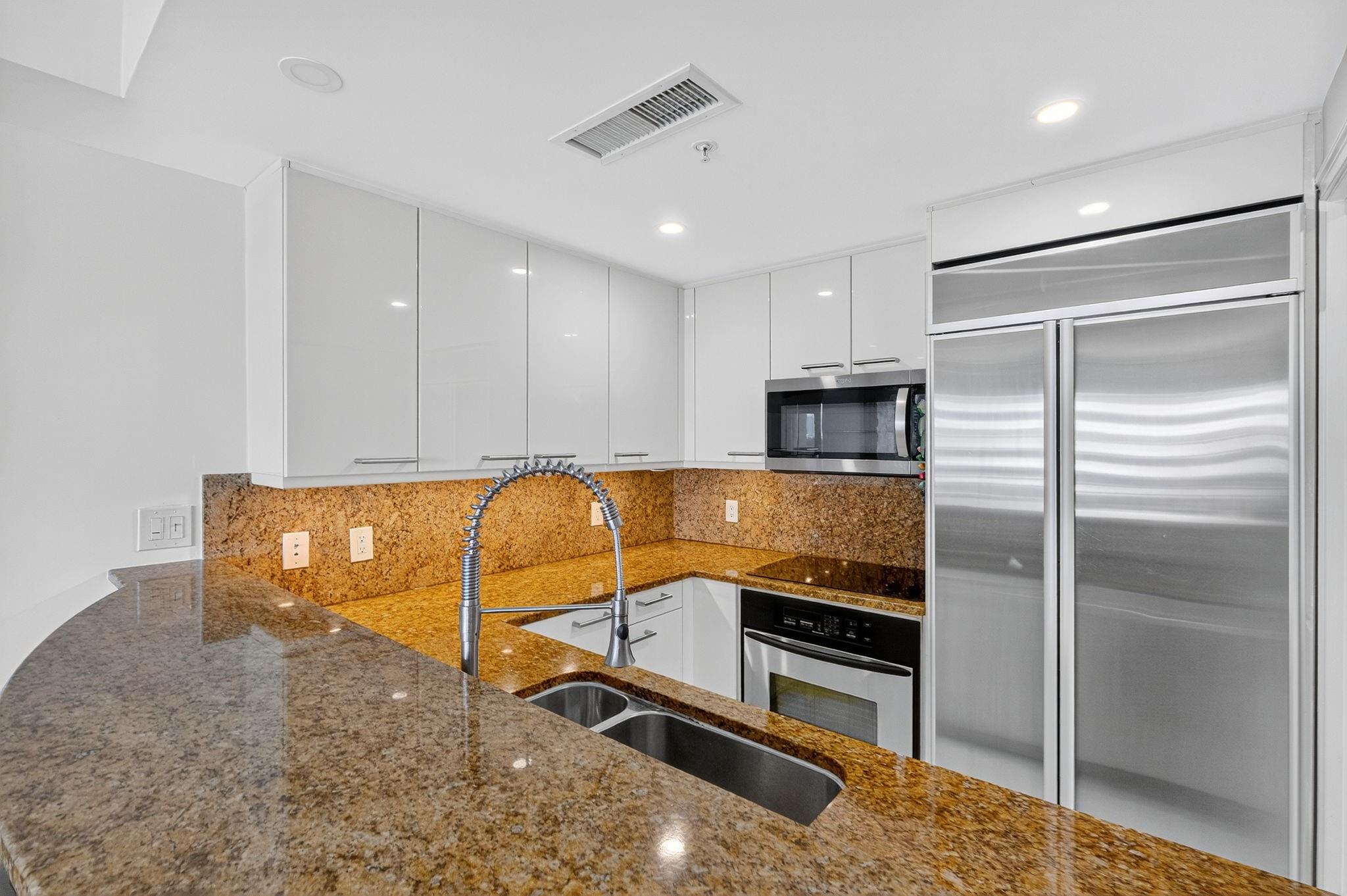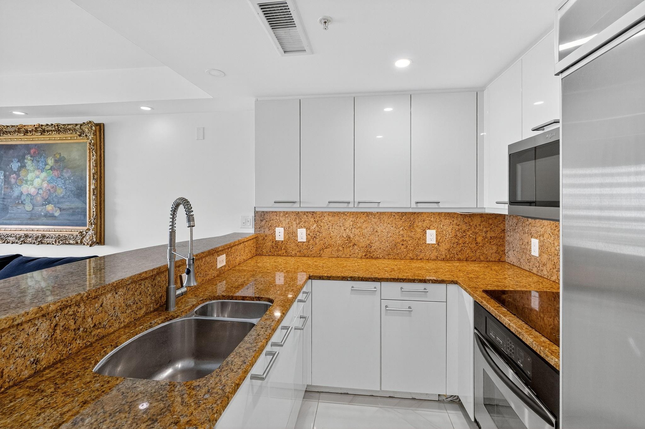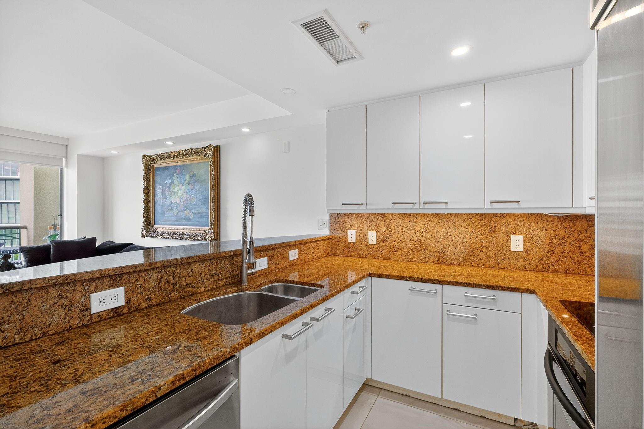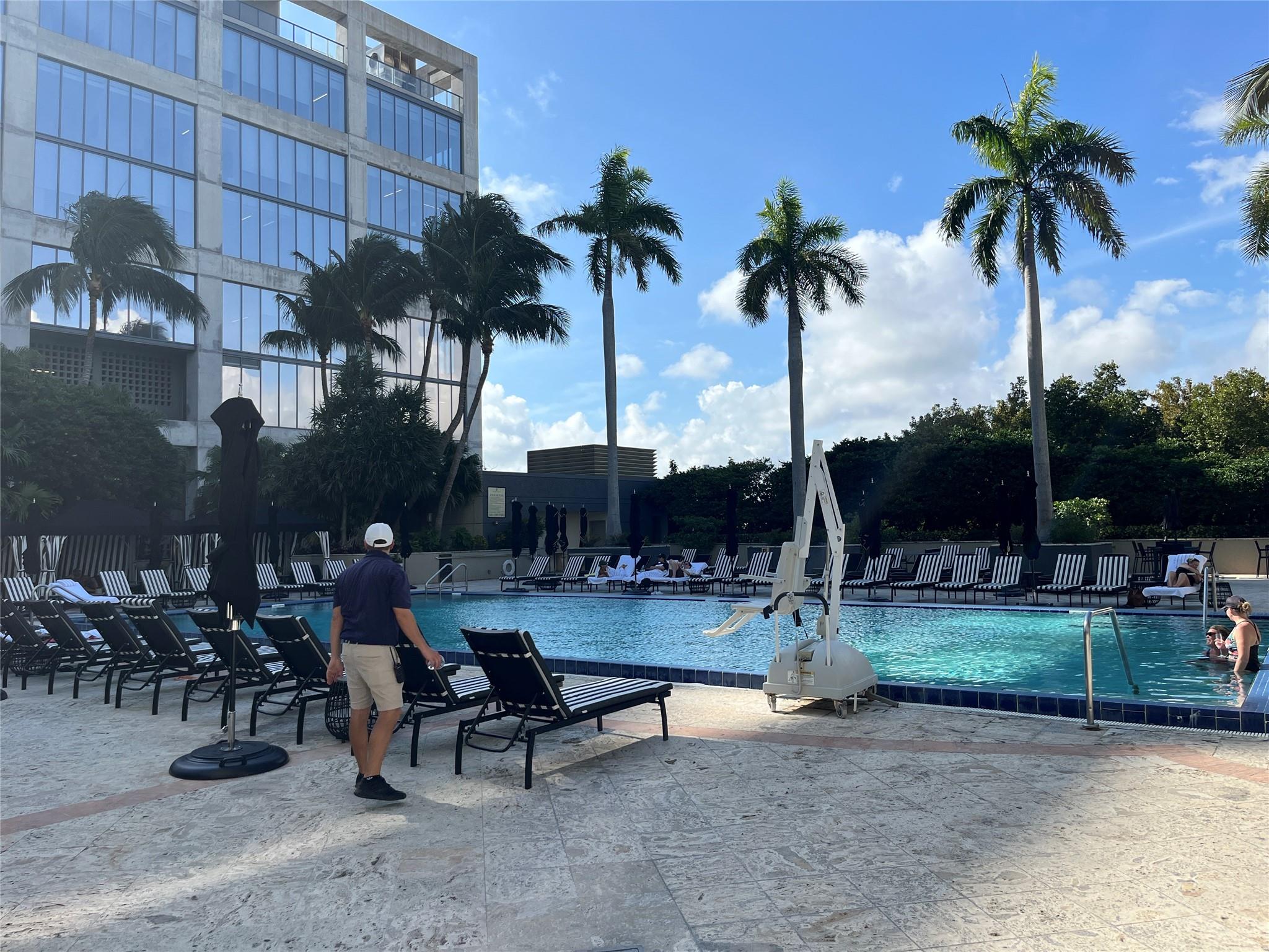 Fabulous 12th floor 1 bedroom 1.5 bath unit at the Ritz-Carlton Executive Residences in Coconut Grove. Great city and bay views from both terraces, living room and bedroom. Tiled floors throughout, open kitchen with granite countertops and stainless appliances. The spacious bedroom has a walk-in closet with built-ins. Primary bathroom has separate tub & shower and double sinks. Foyer entry has extra closets, half bath and washer & dryer. Brand New Air Conditioner unit! Enjoy luxury living with all the services and amenities that the Ritz offers.