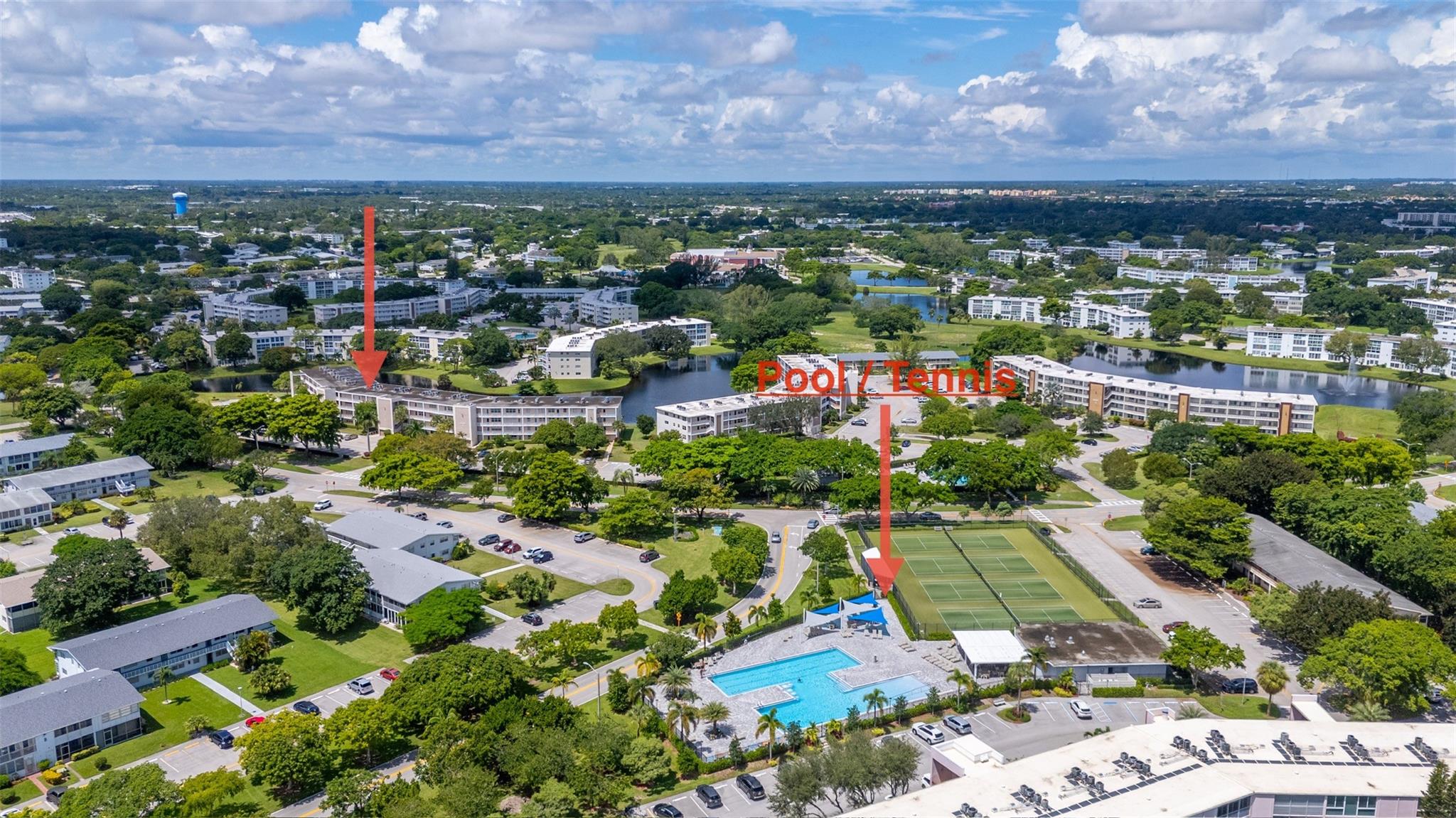GREAT LOCATION! 3RD FLOOR WATER VIEW CONDO ONLY A FEW STEPS FROM SWIMMING POOL. LARGE FLORIDA ROOM. WOOD FLOORS THROUGHOUT. NEW RANGE FAN. VERY CLEAN AND READY TO MOVE IN. FURNISHED. ROOF IS ONLY 2 YEARS OLD! TWO ELEVATORS, UPDATED LAST YEAR. COMMON LAUNDRY ROOM WITH NEW FREE MACHINES. ONLY 3.5 MILES TO THE BEACH! CENTURY VILLAGE HAS SO MUCH TO OFFER: FREE TRANSPORTATION TO SHOPPING PLAZAS, TENNIS COURTS, FITNESS CLUB, INDOOR AND OUTDOOR SWIMMING POOLS. LOOKING FOR A 5-STAR RESORT THIS IS THE PLACE FOR YOU.