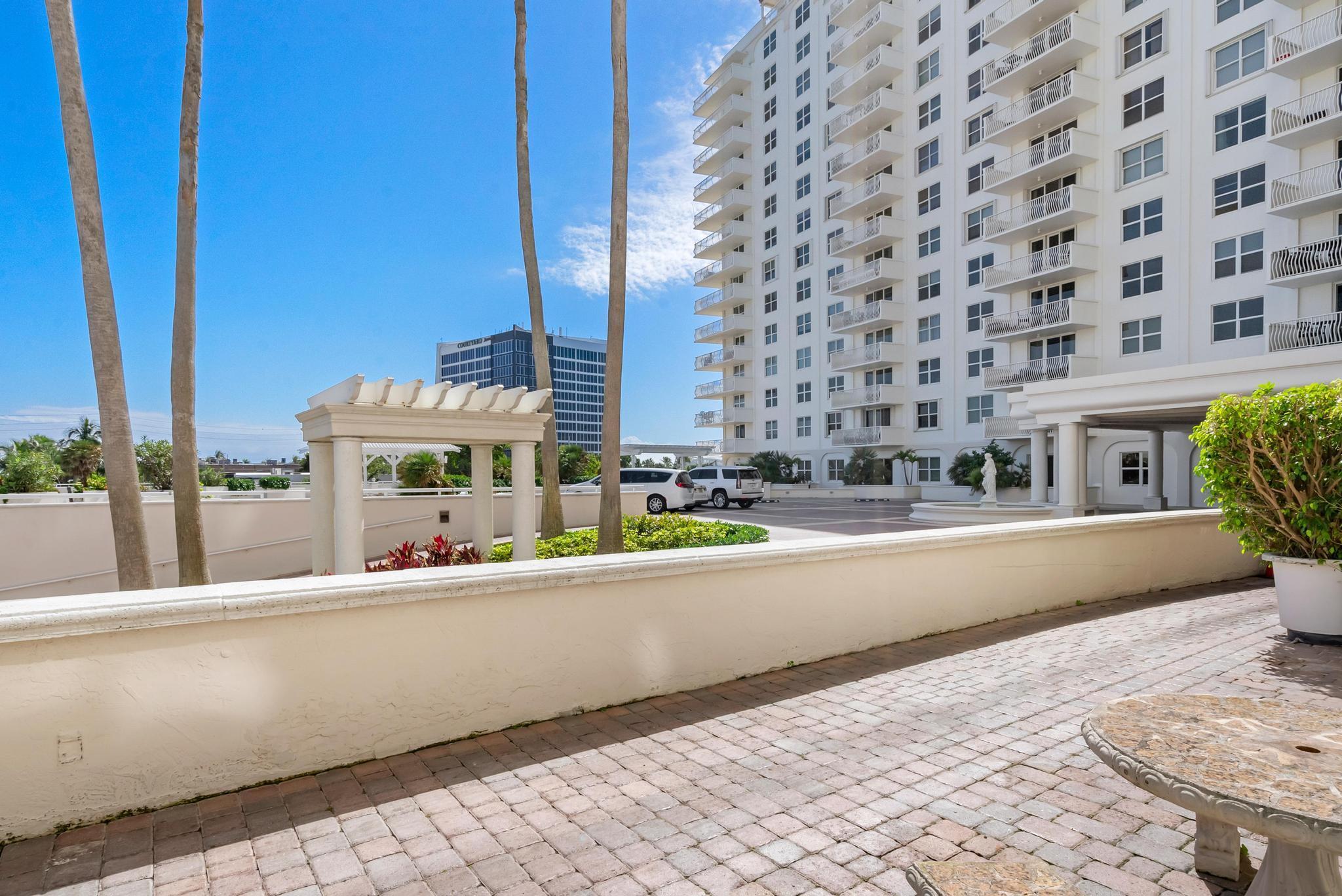 Patio level, 2 bed/2bath corner unit condo with 10 foot ceilings, 1575 liv sqft and full impact windows, GE panel. Wrap around patio adds another approx 660' of outdoor enjoyment space! Amazing location 2 blocks to the beach, and also next door to Intracoastal Park. On-site marina with 35 dock slips w water/electric. Amenities include waterfront pool, Fitness, Tiki Bar, library, marina, bbq grills. 24 hour security