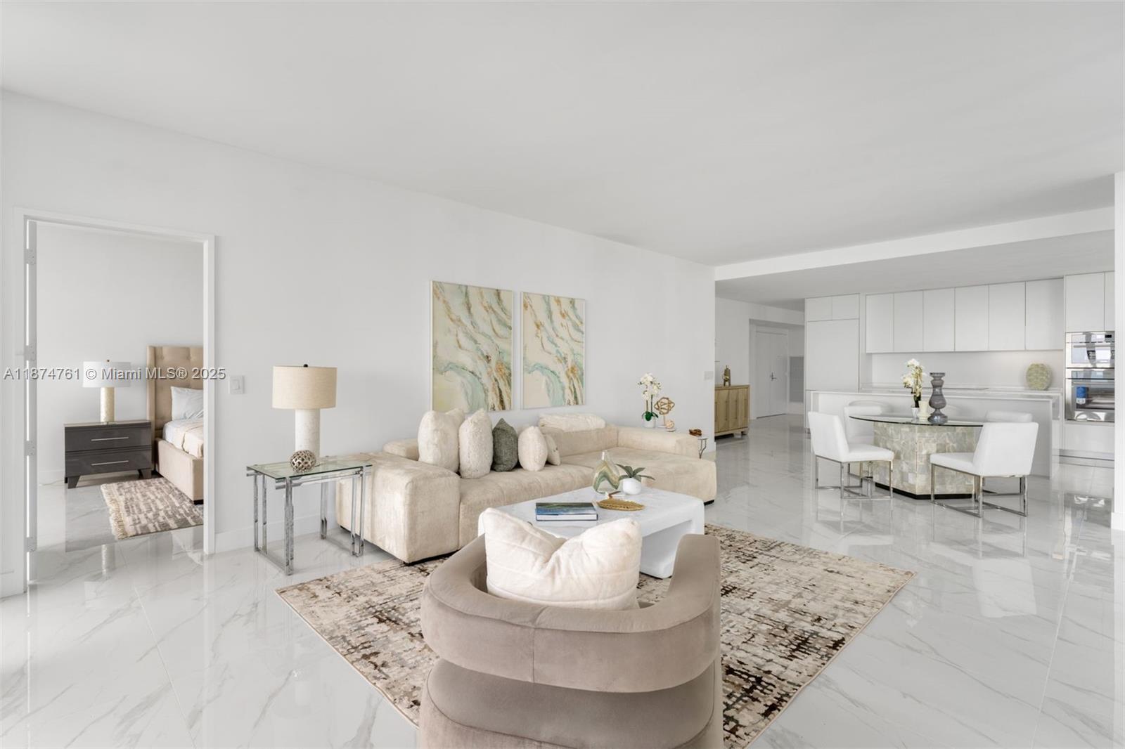 Introducing a stunning corner residence at Aria Reserve—brand new and never lived in. Elevated high above Biscayne Bay, this expansive 4-bedroom, 5.5-bath home offers 2,978 sq ft of total area, sweeping views of the ocean, skyline, and bay through floor-to-ceiling impact glass that floods the space with natural light. The open-concept design features a sleek gourmet kitchen with Thermador appliances, perfect for both quiet evenings and elegant entertaining. Each generously sized bedroom includes a private en-suite bath and walk-in closet. With a versatile den, private entry foyer, and two private elevators, this residence invites personalization to create your dream home. Experience elevated luxury living in one of Miami’s most anticipated towers.