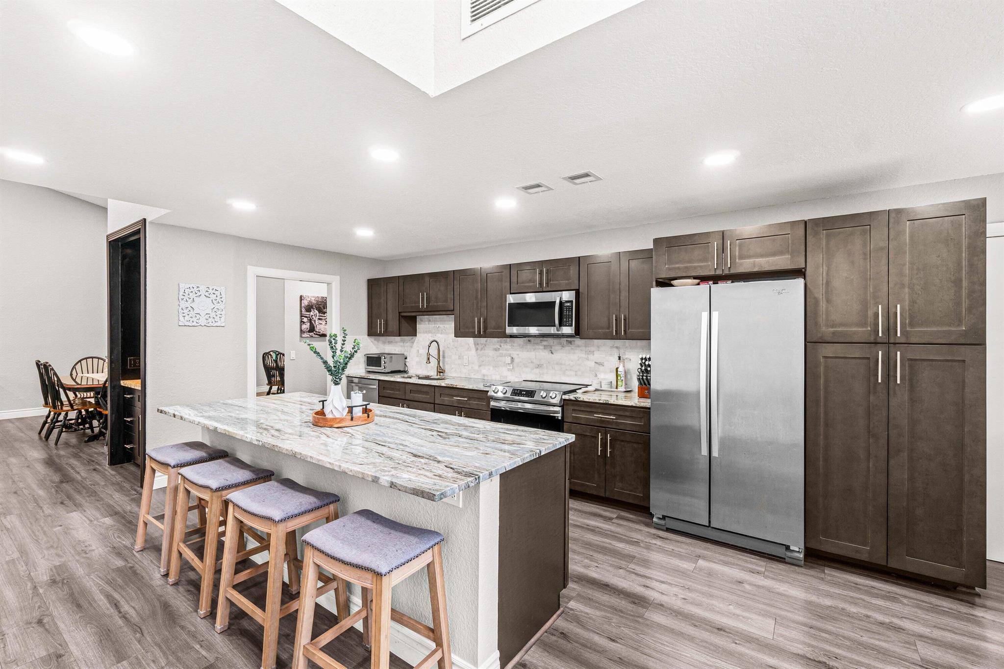 Renovated & Open Concept 3BR, 2.5BA villa with over 2,000 sq ft and lovely outdoor patio in the beautifully manicured Fountains Country Club where there is No Mandatory Membership! This home features soaring ceilings, laminate flooring, recessed lighting, and a stunning open-concept kitchen with granite countertops, island, and custom wet bar. Enjoy peace of mind with a NEW A/C and hot water heater, and brand-new primary and half bathrooms. The enclosed lanai adds extra interior living space, while the private outdoor patio is perfect for BBQs and relaxing under your own mango and avocado trees. A rare combination of upgrades, lifestyle, and flexibility in a prime Palm Beach County location!Note* There are 3 payments remaining of the current assessment for a total of $321.11 each