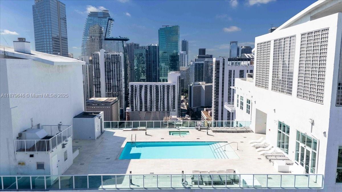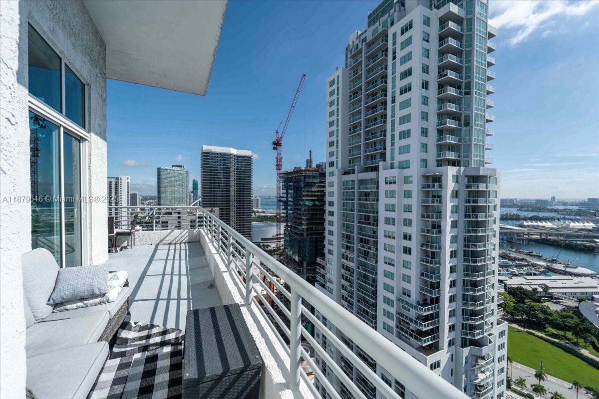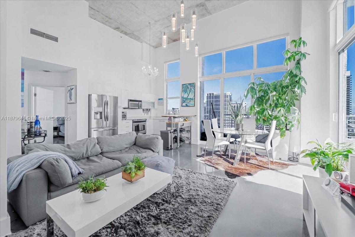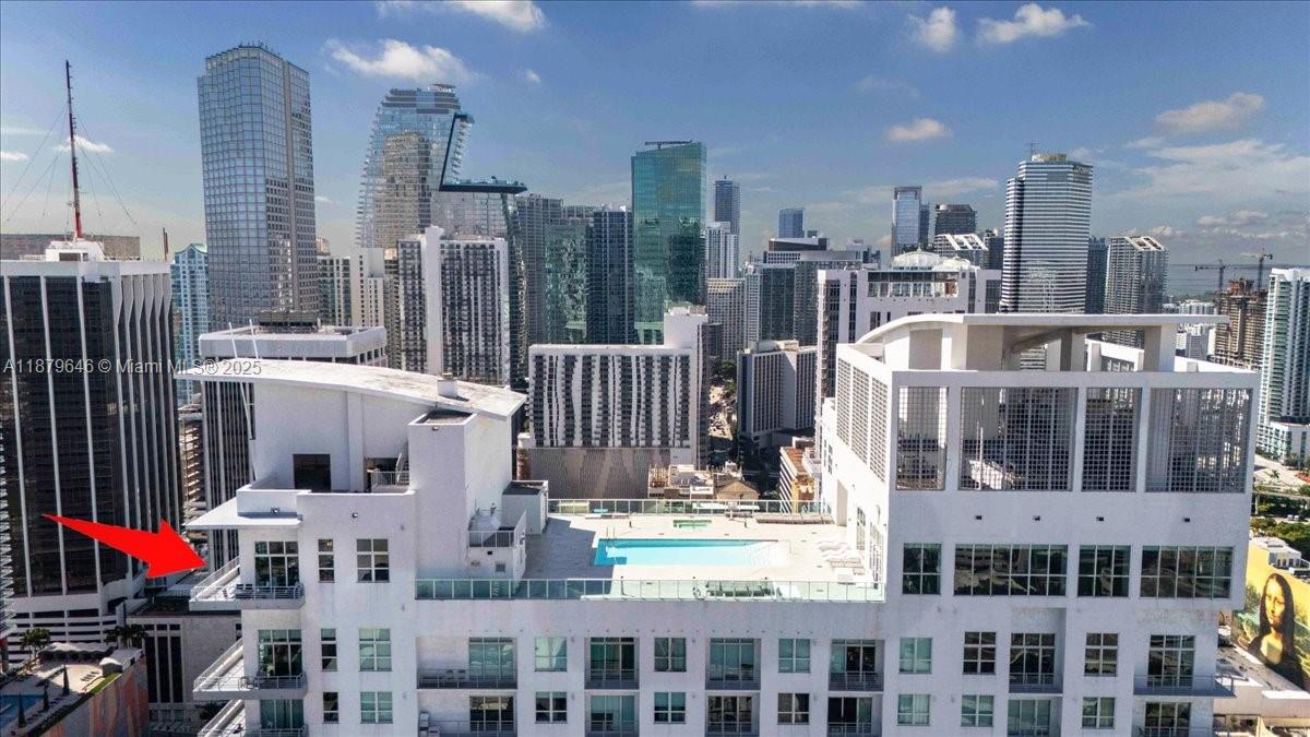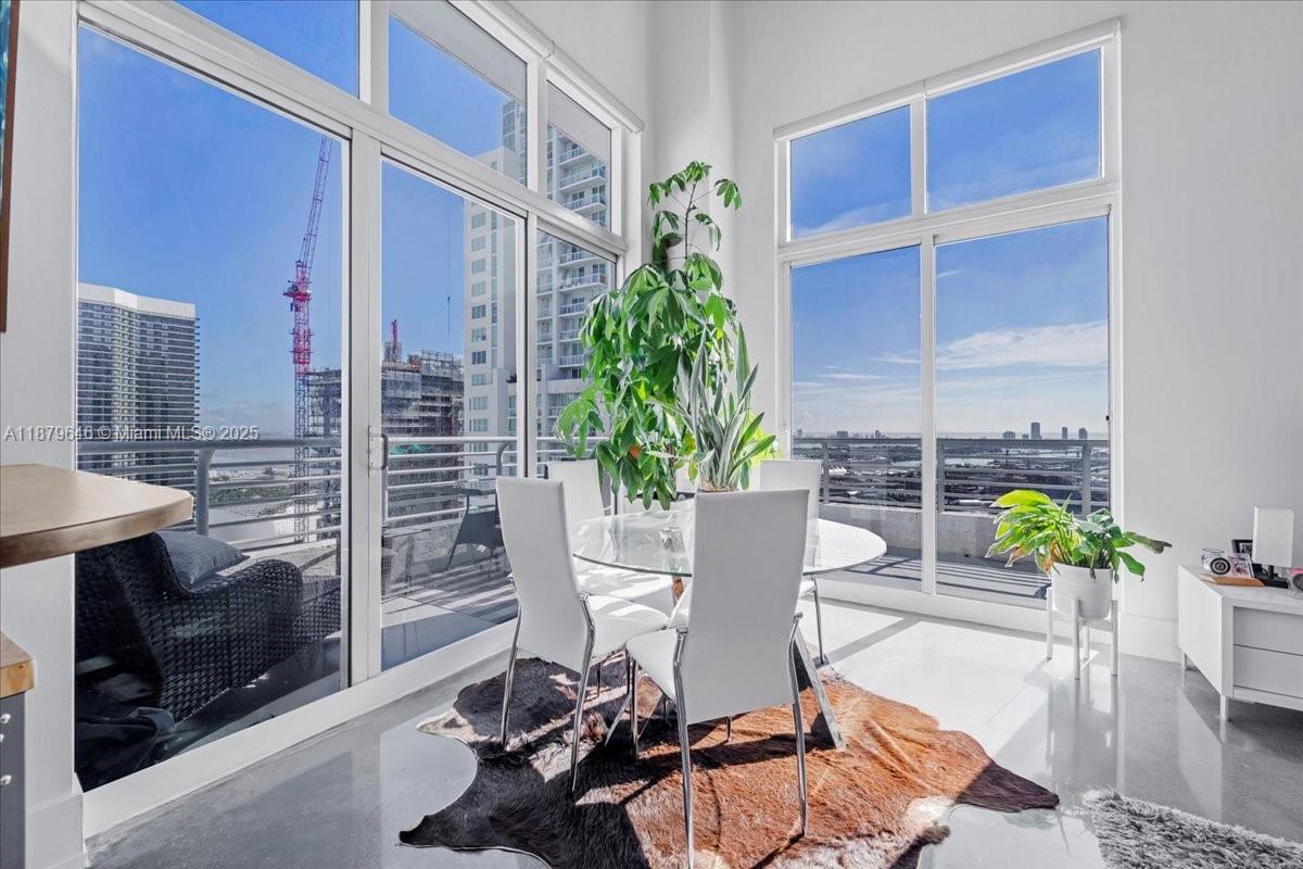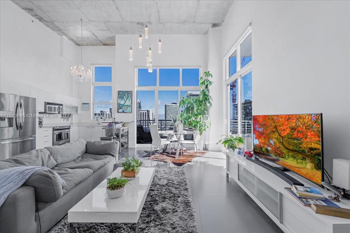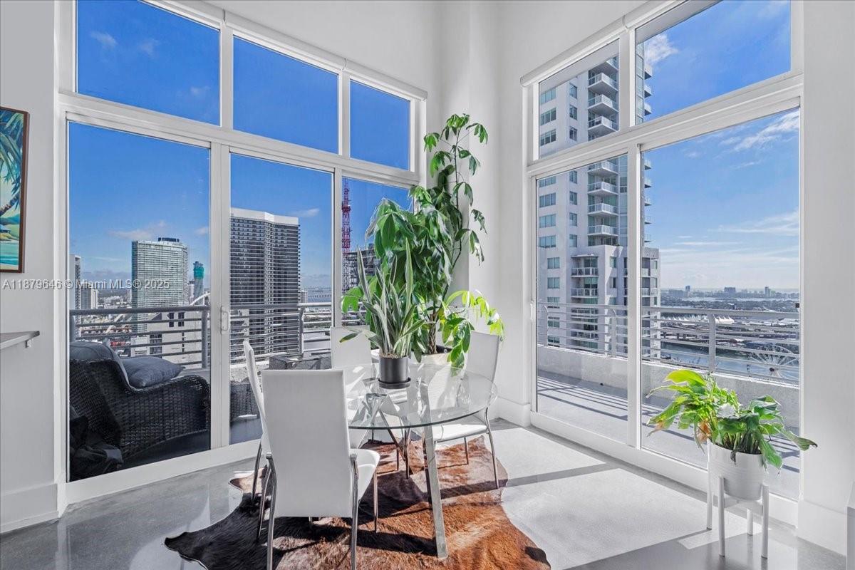 Rarely available Upper Penthouse with soaring 16ft ceilings and sweeping bay & city views! This corner loft-style residence is bathed in natural light from floor-to-ceiling glass. The floor plan includes one enclosed bedroom plus a second open loft bedroom connected to the kitchen and living area, easily convertible into a true second bedroom. Amenities include two pools (one just steps from your door and another at ground level), a rooftop gym with sauna, and an elegant clubroom. Walk to the Arena, Bayside, museums, and Brickell, with South Beach only minutes away. A rare penthouse opportunity in the heart of the city!