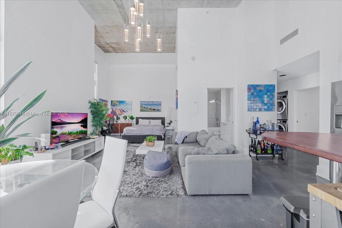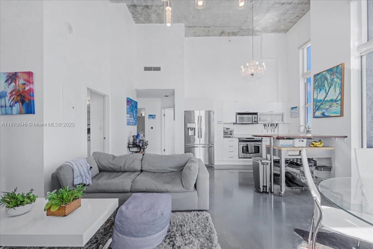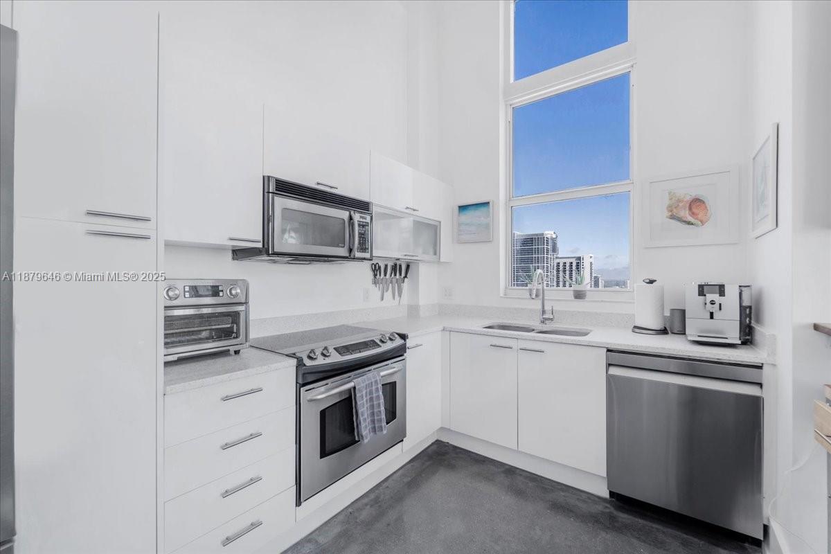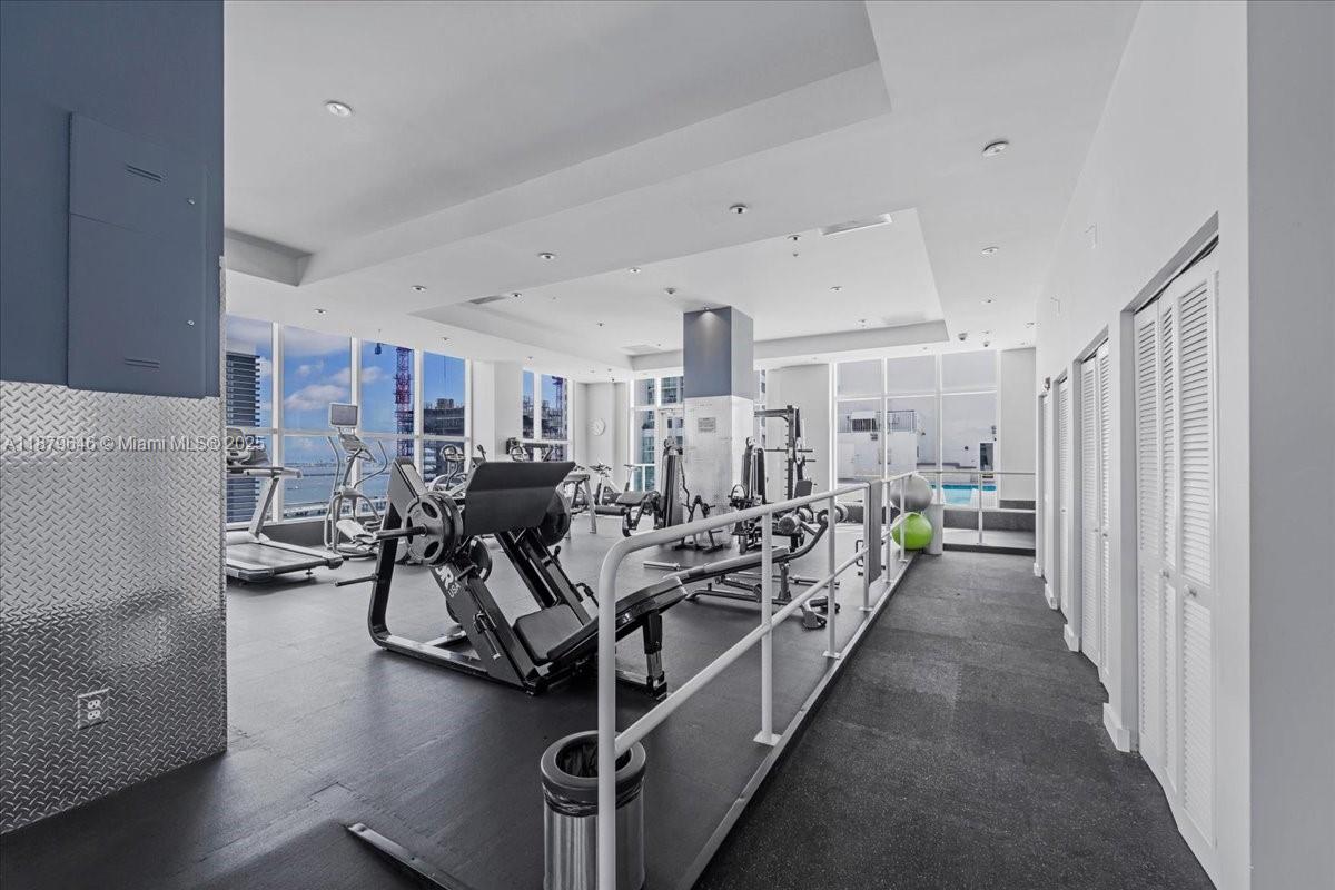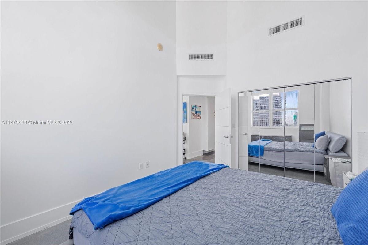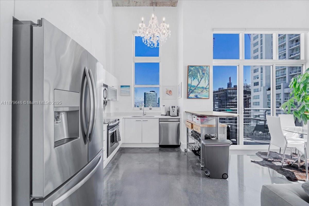 Rarely available Upper Penthouse with soaring 16ft ceilings and sweeping bay & city views! This corner loft-style residence is bathed in natural light from floor-to-ceiling glass. The floor plan includes one enclosed bedroom plus a second open loft bedroom connected to the kitchen and living area, easily convertible into a true second bedroom. Amenities include two pools (one just steps from your door and another at ground level), a rooftop gym with sauna, and an elegant clubroom. Walk to the Arena, Bayside, museums, and Brickell, with South Beach only minutes away. A rare penthouse opportunity in the heart of the city!