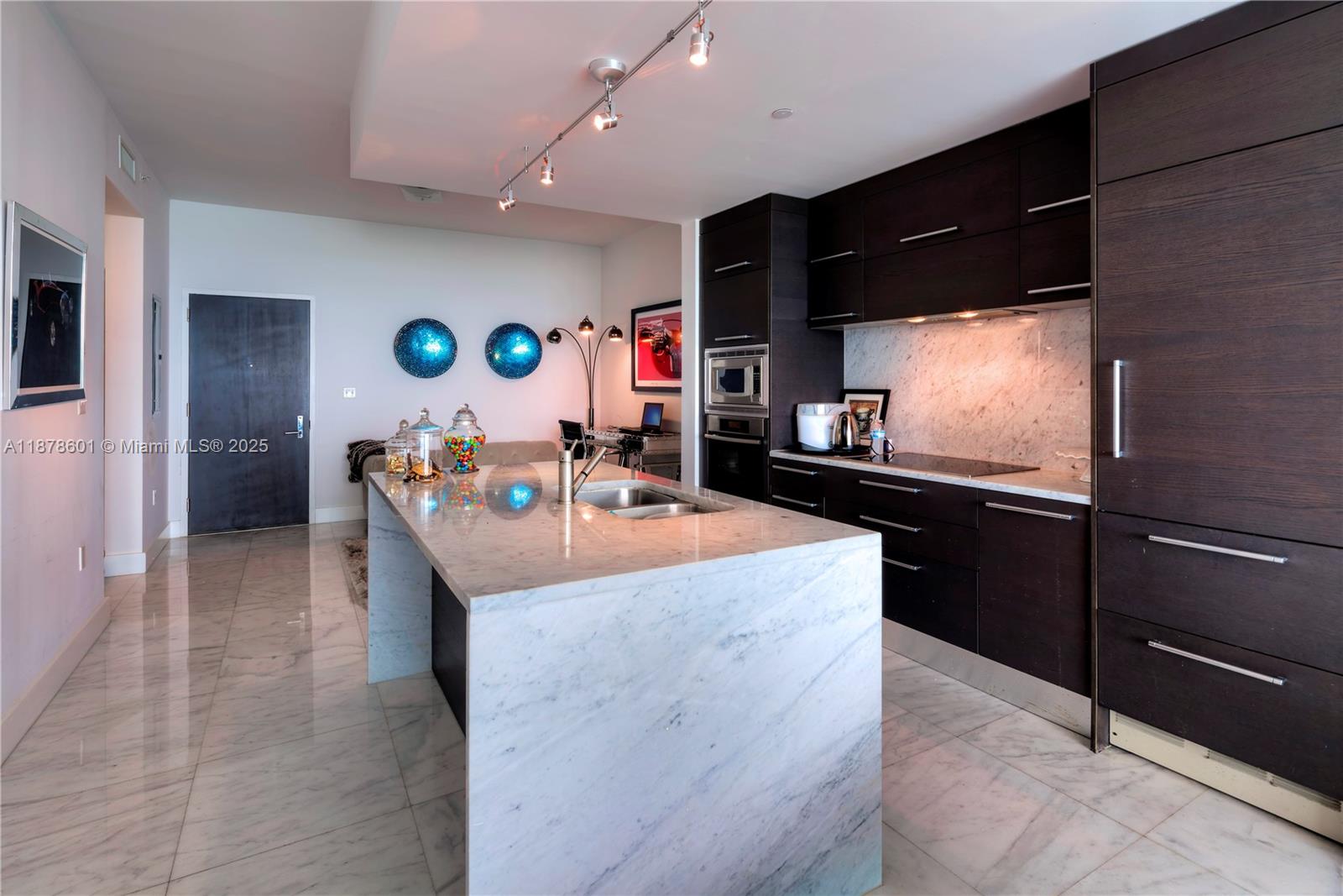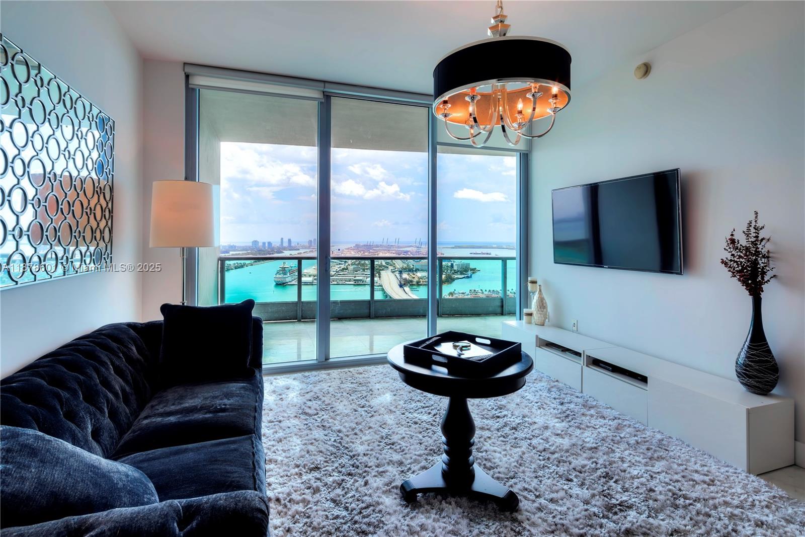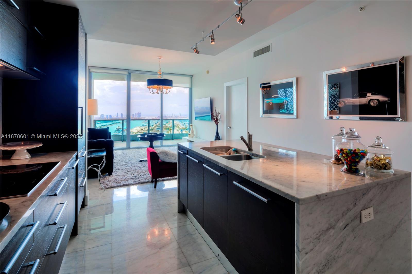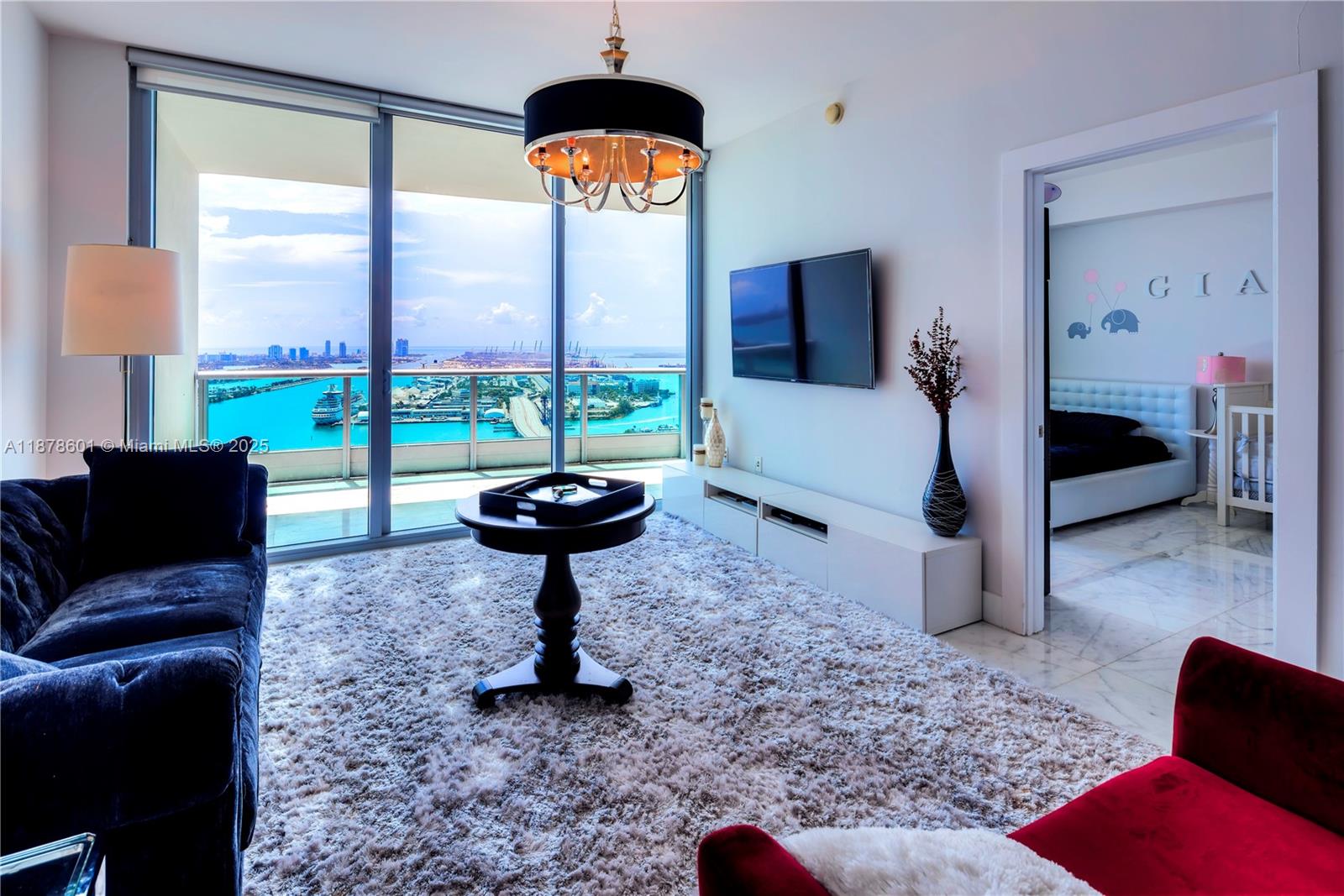 1,006 sq/ft 1 Bed + DEN, 2 Full Bath condo w/direct bay & ocean views. Expansive floor plan, Carrara marble flooring & floor-to-ceiling glass windows. Modern kitchen w/marble countertops & Sub-Zero/Miele appliances. Spa-like master bath w/glass-enclosed shower & soaking tub. Custom walk-in closet. Oversized terrace w/stunning views of Biscayne Bay & Miami Beach skyline. Washer/Dryer in unit. Amenities: 2 pools, private theater, fitness center & full-service spa.