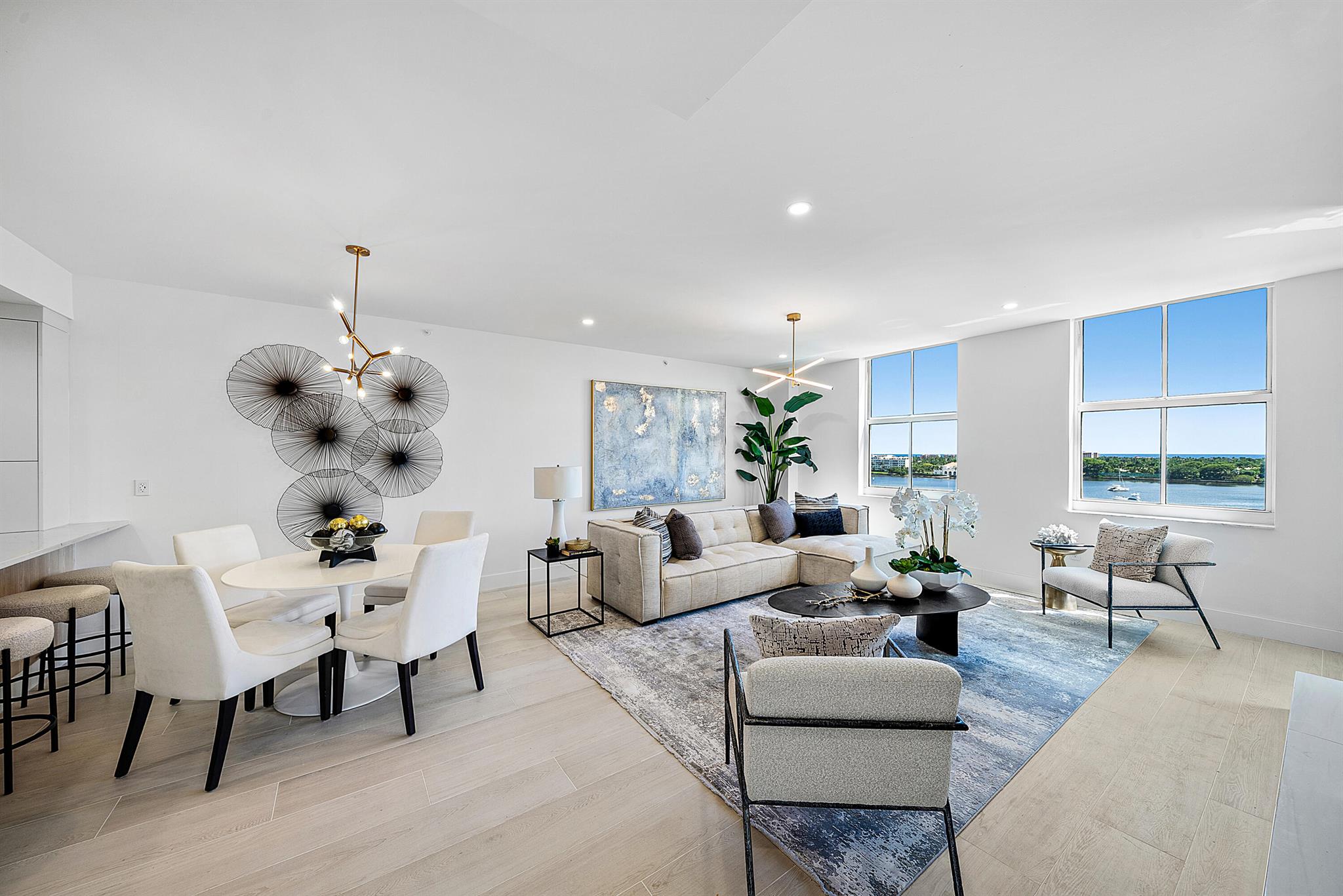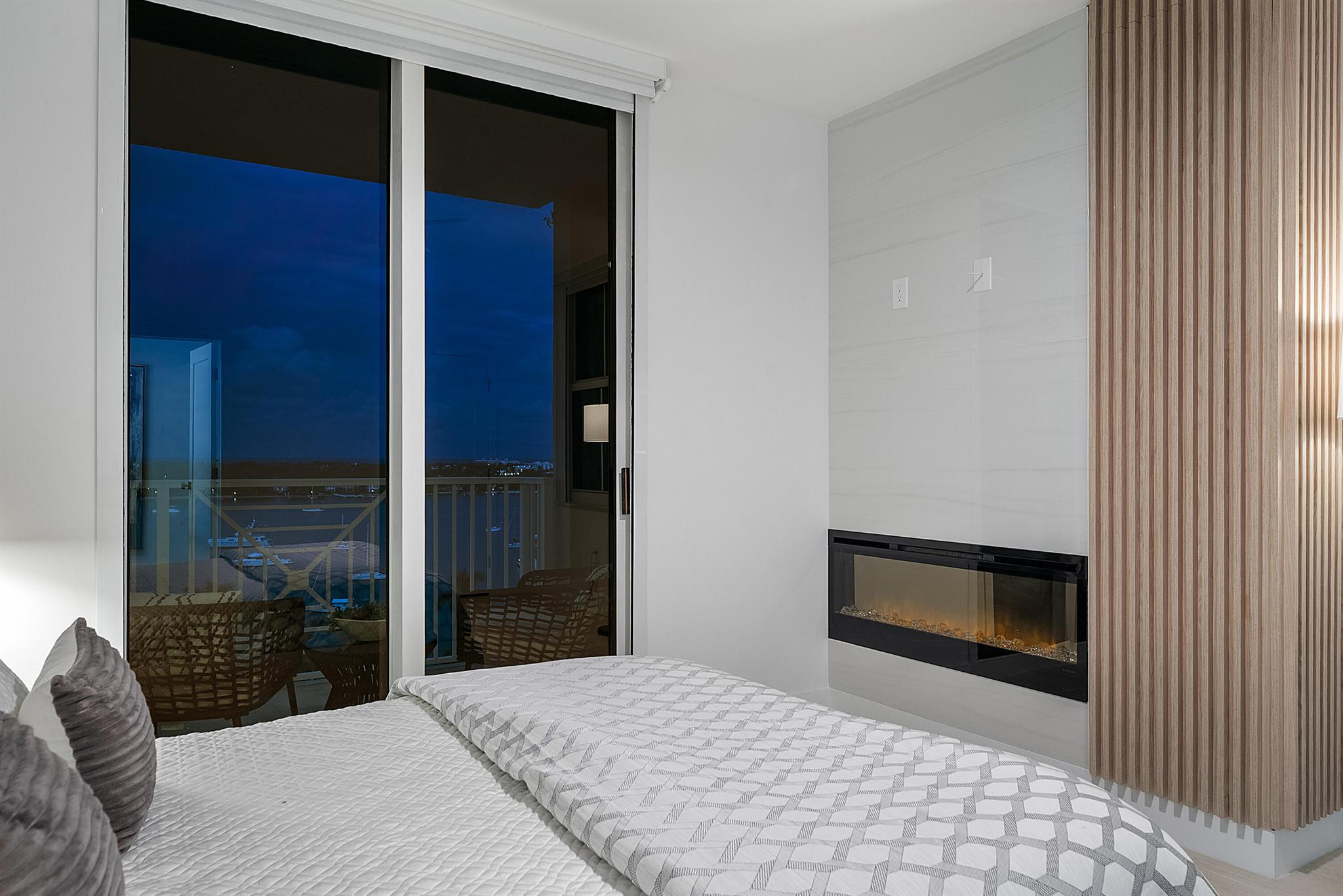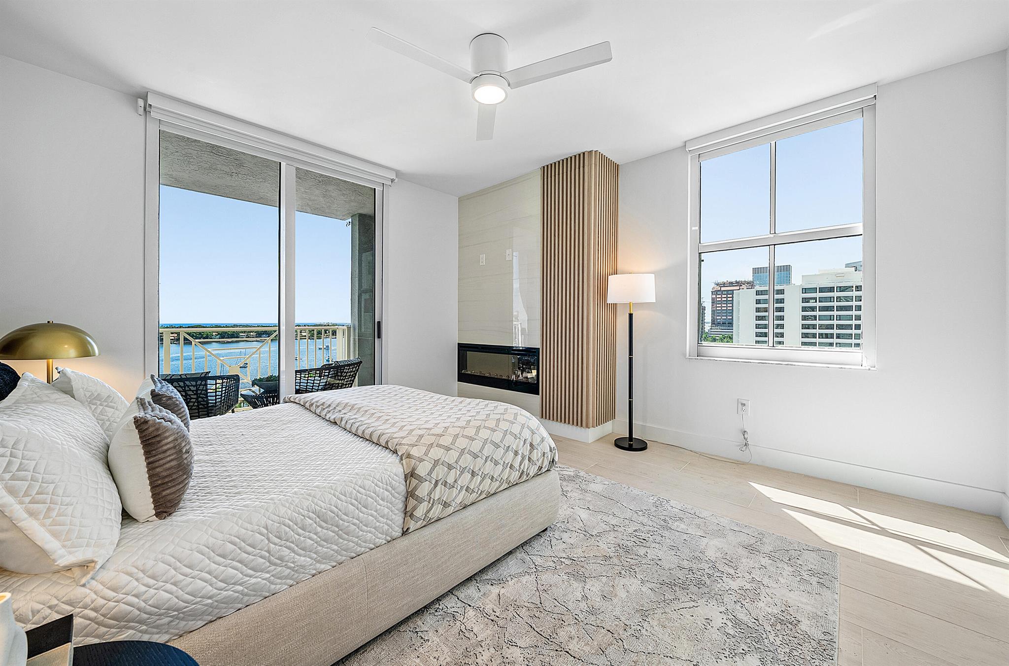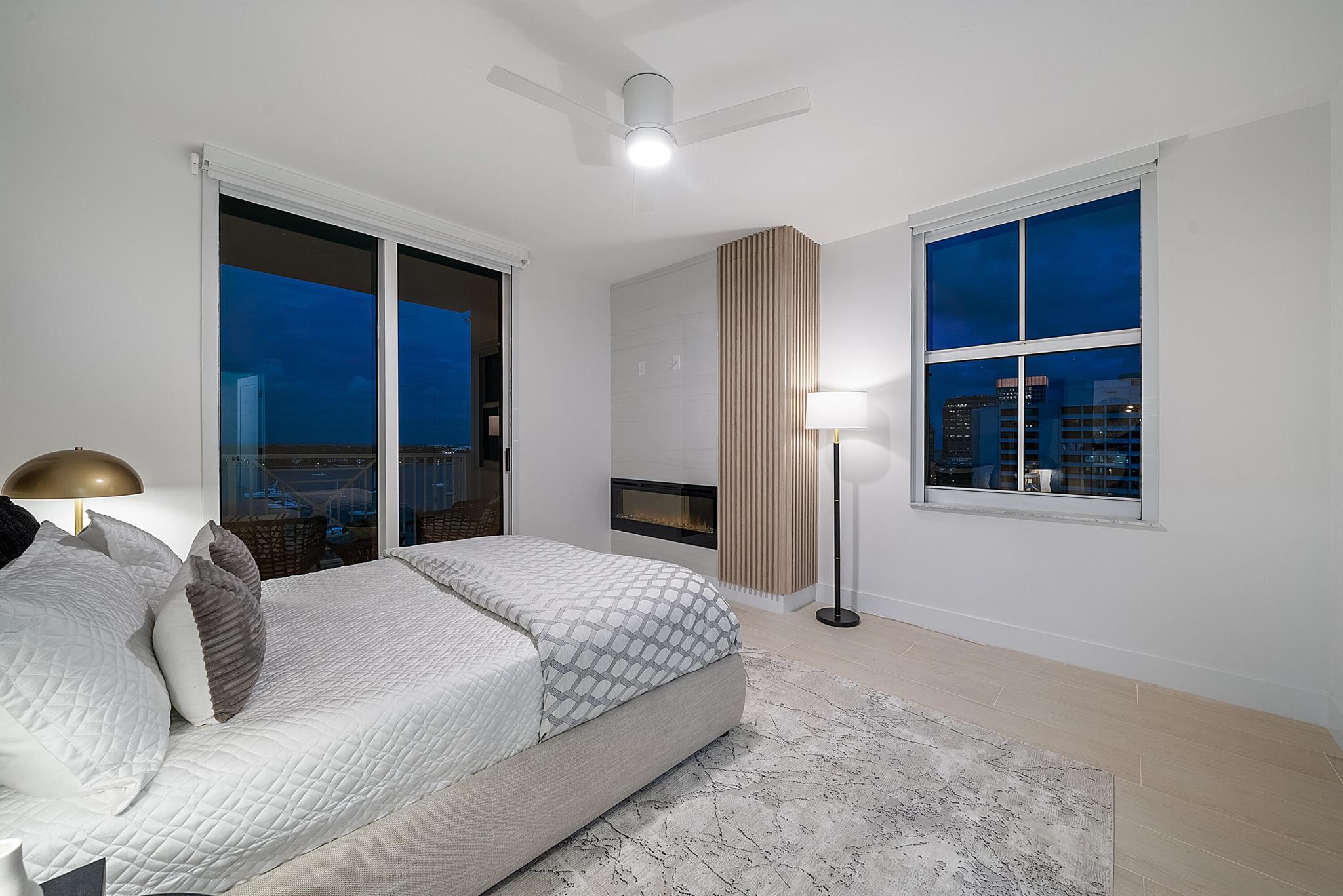 Professionally designed and renovated water front 3 bedroom condo in the heart of West Palm Beach. This stunning light filled southeast corner 3 bedroom with den unit at The Strand is one of only five of its kind in the building, offering unobstructed views of the Intracoastal, Palm Beach Island and the ocean.The unit features Elysium wide plank porcelain wood look tile throughout, custom designed built in entertainment units with fireplaces, and a custom bar and lounge area. Modern flush recessed lighting enhances the clean lines of the residence, while smart home technology provides seamless control of lighting, temperature, and window treatments from a central panel.The kitchen features Thermador appliances, Krystallo quartzite counters,