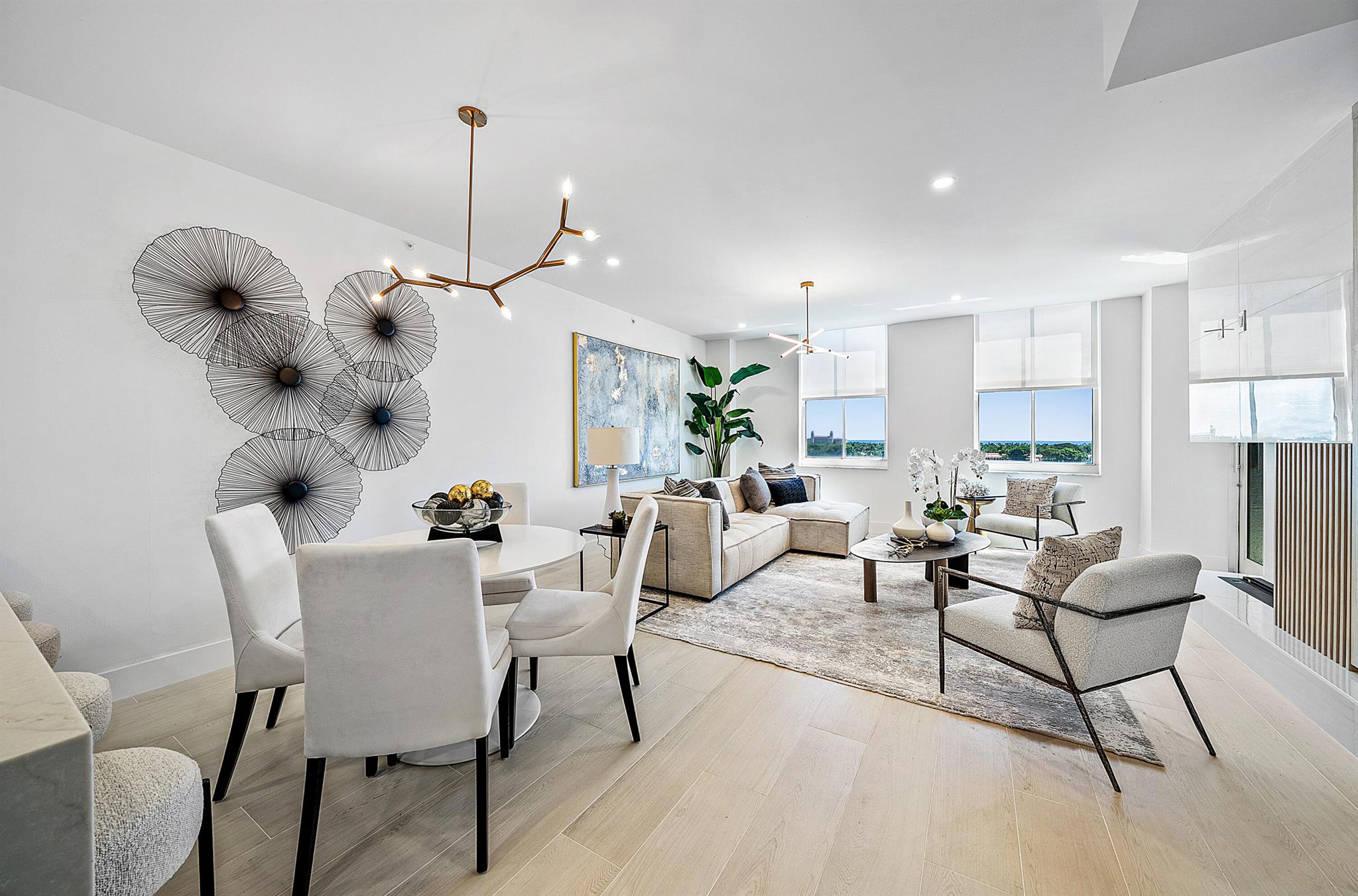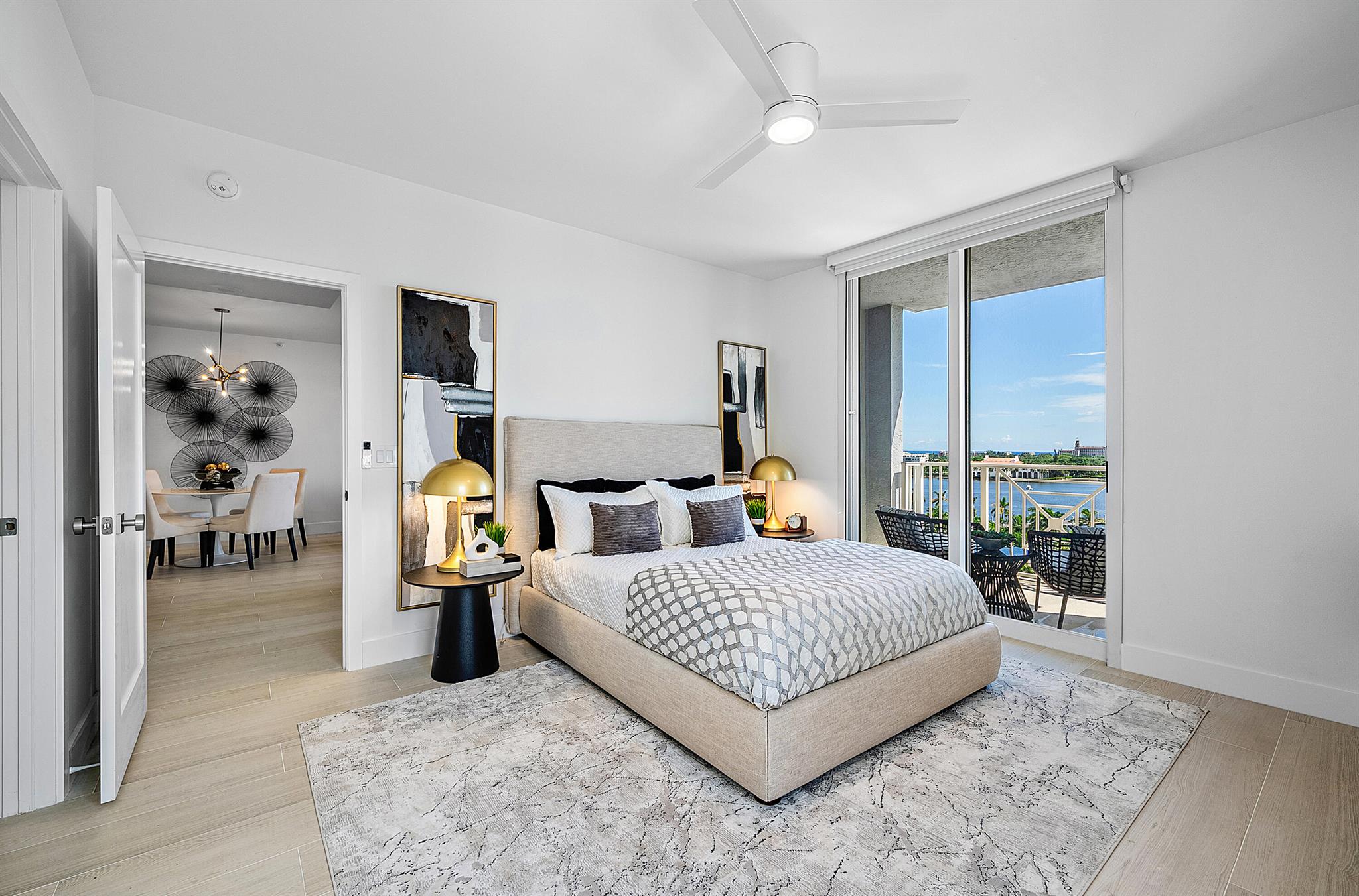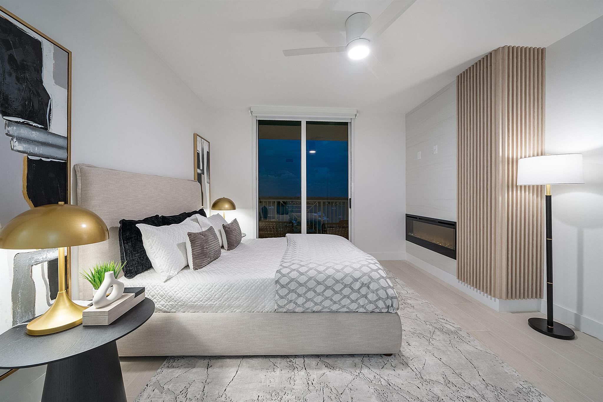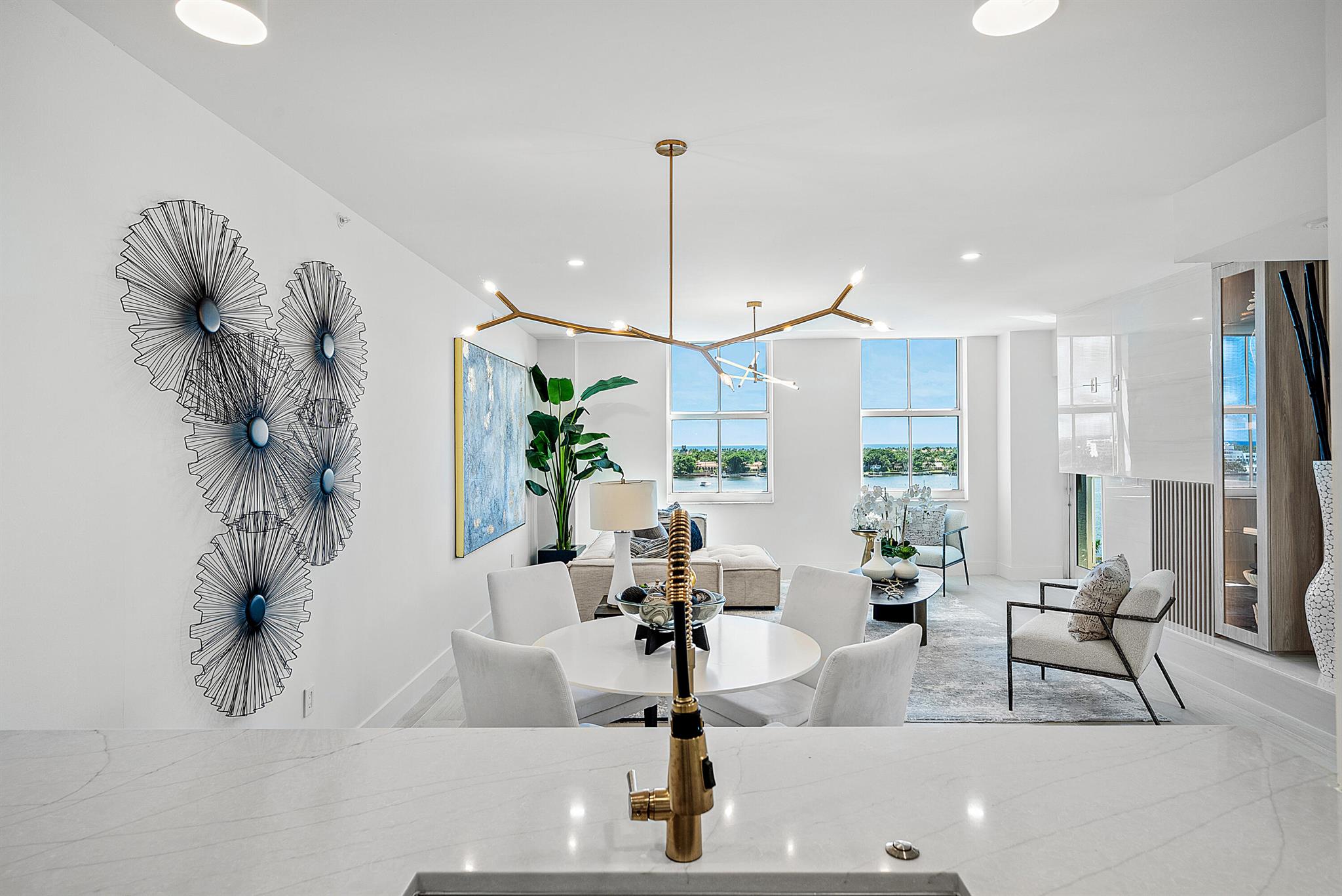 Professionally designed and renovated water front 3 bedroom condo in the heart of West Palm Beach. This stunning light filled southeast corner 3 bedroom with den unit at The Strand is one of only five of its kind in the building, offering unobstructed views of the Intracoastal, Palm Beach Island and the ocean.The unit features Elysium wide plank porcelain wood look tile throughout, custom designed built in entertainment units with fireplaces, and a custom bar and lounge area. Modern flush recessed lighting enhances the clean lines of the residence, while smart home technology provides seamless control of lighting, temperature, and window treatments from a central panel.The kitchen features Thermador appliances, Krystallo quartzite counters,