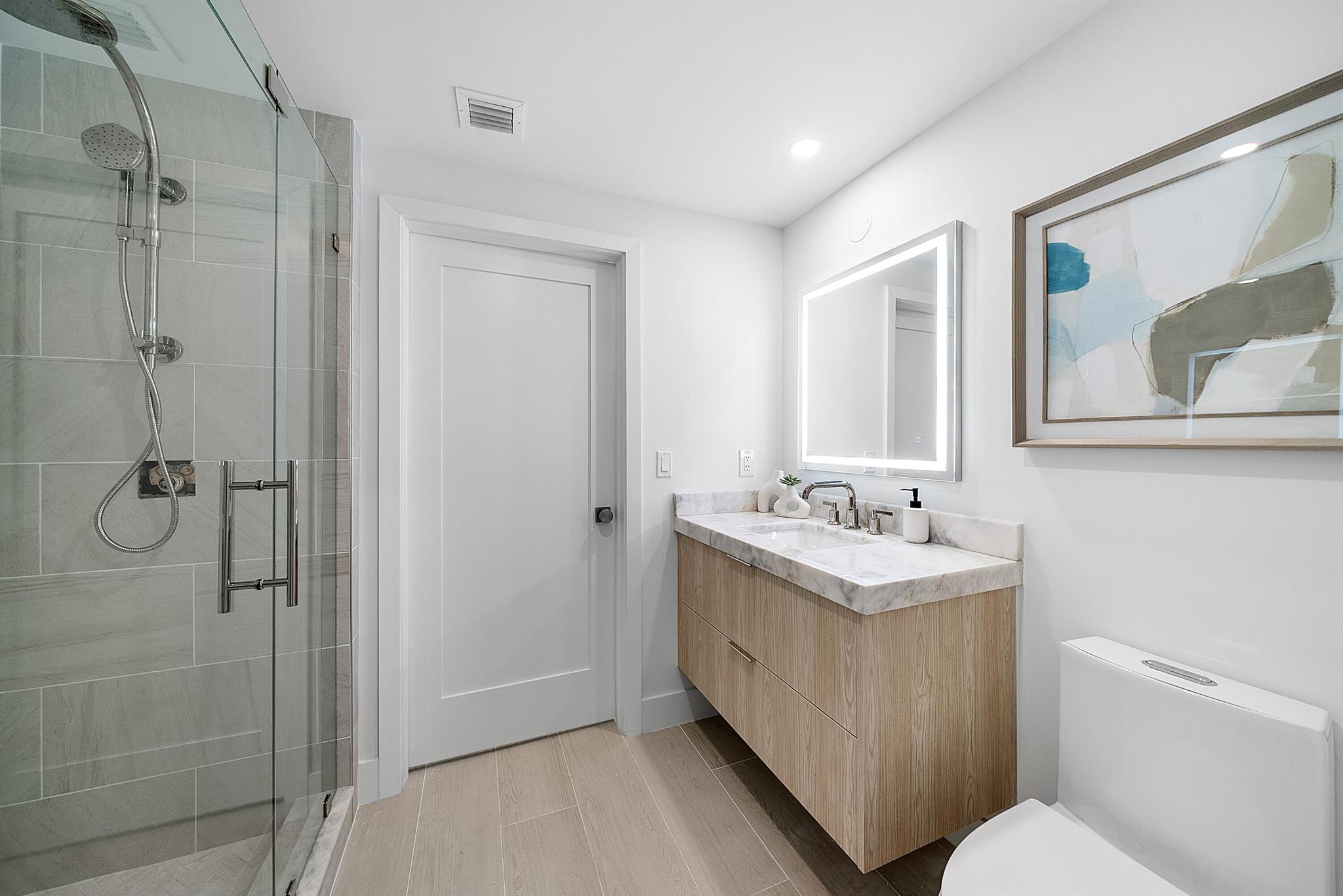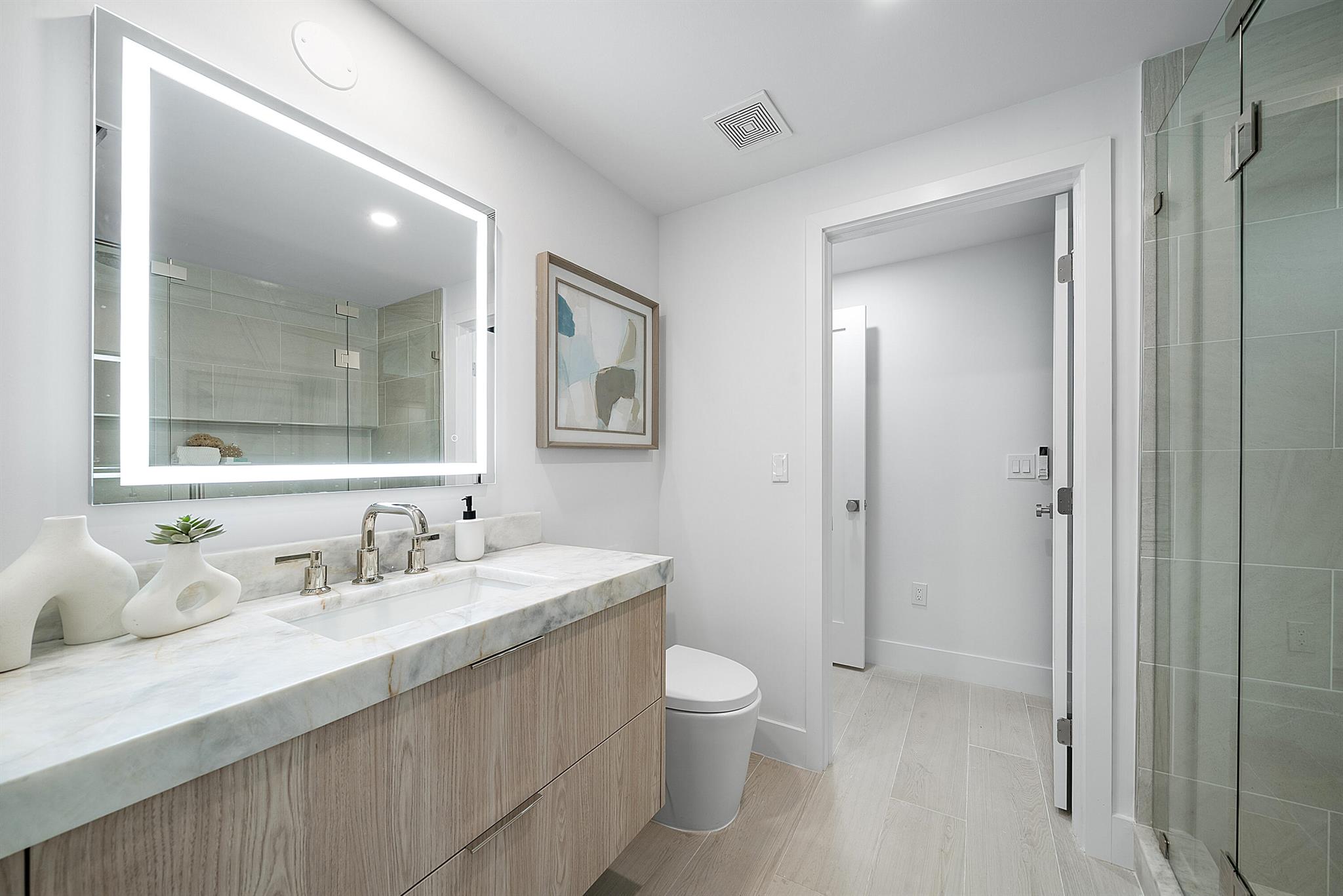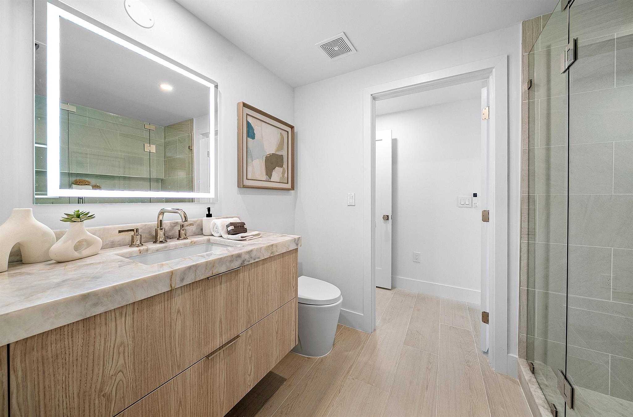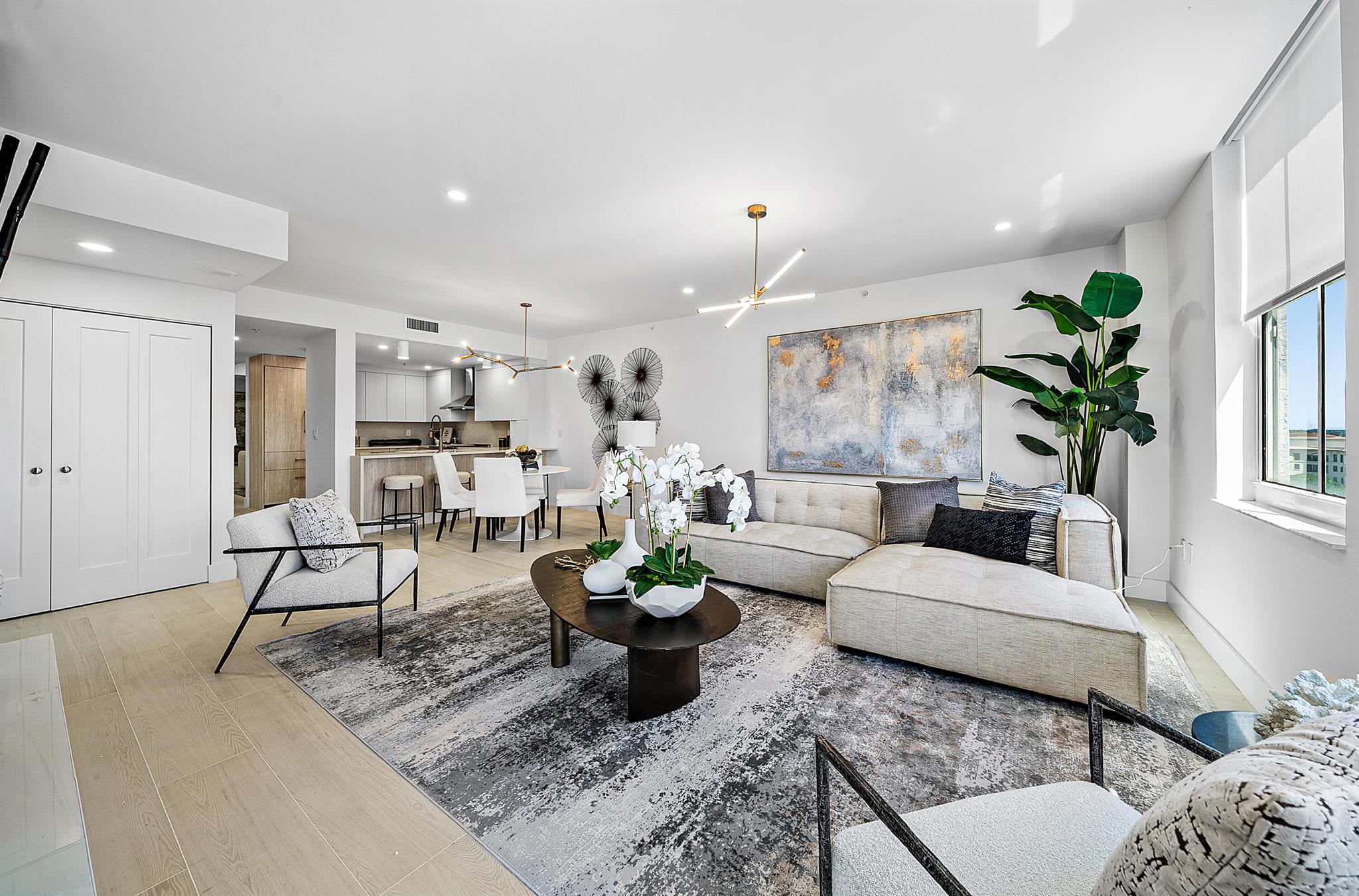 Professionally designed and renovated water front 3 bedroom condo in the heart of West Palm Beach. This stunning light filled southeast corner 3 bedroom with den unit at The Strand is one of only five of its kind in the building, offering unobstructed views of the Intracoastal, Palm Beach Island and the ocean.The unit features Elysium wide plank porcelain wood look tile throughout, custom designed built in entertainment units with fireplaces, and a custom bar and lounge area. Modern flush recessed lighting enhances the clean lines of the residence, while smart home technology provides seamless control of lighting, temperature, and window treatments from a central panel.The kitchen features Thermador appliances, Krystallo quartzite counters,