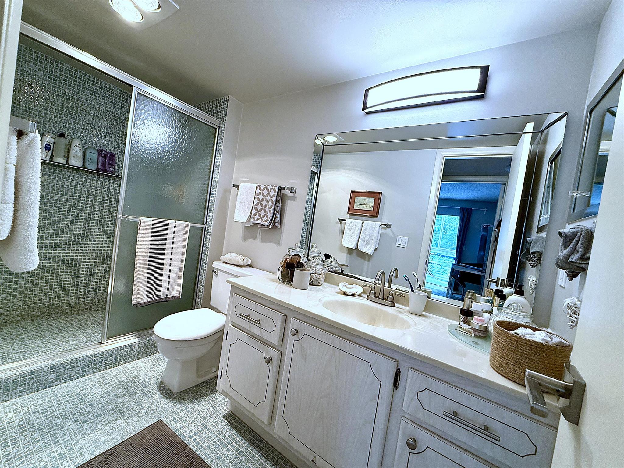 Outstandiing Garden View from Large Enclosed Patio w/ Impact Hurricane Windows & Impact Front Door. Enjoy this Lovely, Spacious 2 BR 2 Baths 1000 SF unit. Renovated kitchen with stainless steel appliances. Replaced AC & hot water heater 2022. Gorgeous hard wood floors throughout & plantation shutters in LR & DR. Building well maintained & roof replace in 2022. Walking distance to Oakridge community pool. Clubhouse has indoor+outdoor pools, cafe, 1600 seat theater, clubs, tennis, billiards, pickleball, volleyball, ping pong, bocce, shuffleboard, fitness center, hiking+bike trails, putting green. Close to beaches, entertainment, dining, shopping. 55+ age.