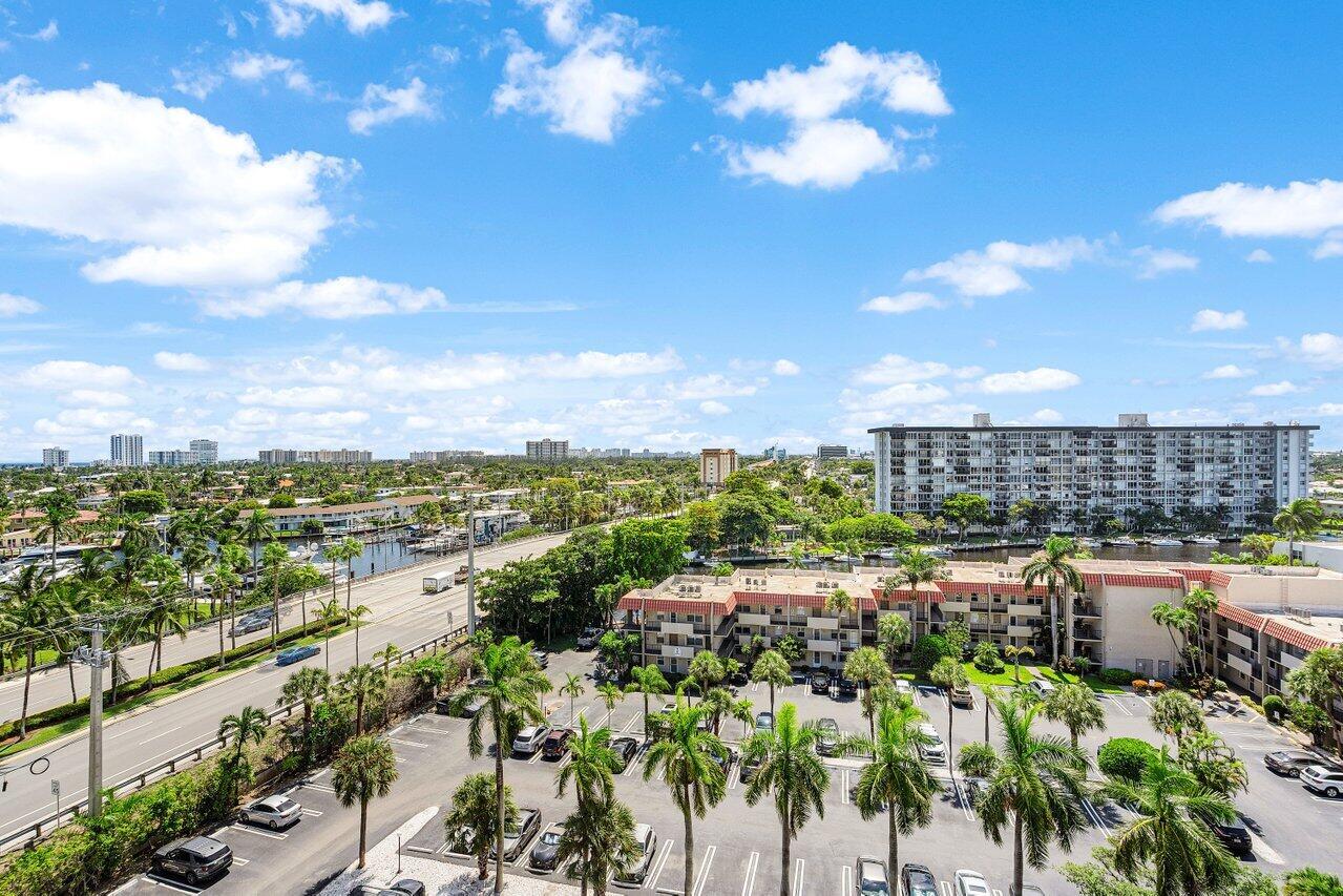 Penthouse condo with inter coastal and downtown views in desirable Pompano Beach. 1 bedroom, 1 bath, gated community with 24 hour security. Includes cable and water. New laminate floors, with neutral paint throughout condo. Stainless steel appliances, large closets, custom wall mirrors in dining room, recently updated AC and hot water tank. Extra storage in building. Enjoy the Florida sunshine with the tropical entertainment area with two pools, BBQ grills, fire pit, tiki hut, gym & rec. room. Assigned parking, close to restaurants, shopping and airport. Minutes from beach. Rare penthouse property with many amenities.
