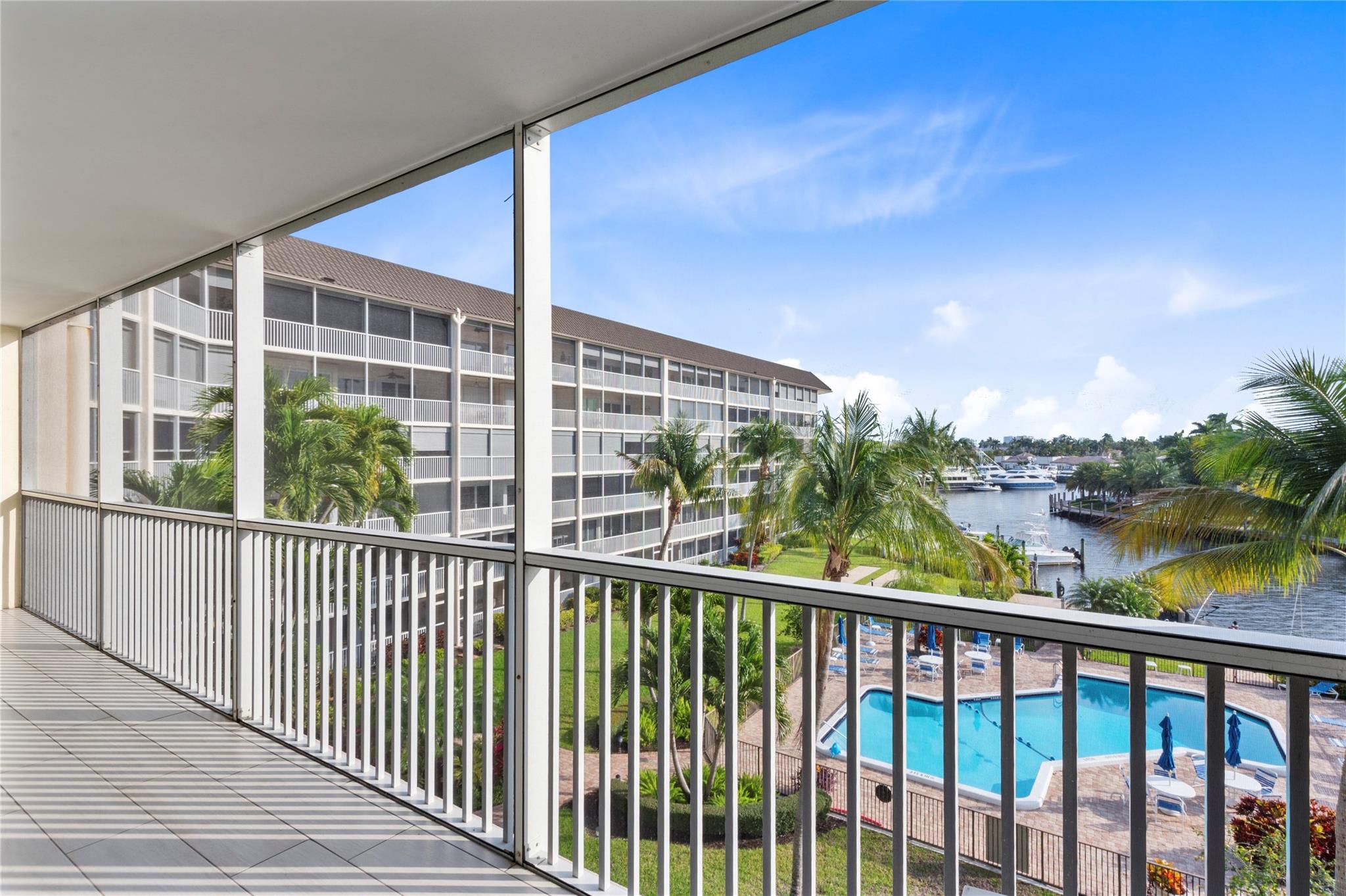 Stunning Waterfront Condo with Beautiful Views! Enjoy breathtaking sparkling water views right from your condo, whether you're relaxing on the large screened balcony, swimming with friends, or fishing from the dock. This spacious 2-bedroom, 2-bathroom condo offers an open floor plan with immediate water views, perfect for anyone who loves the tranquility of waterfront living. The updated kitchen features wood cabinets, granite countertops, and a brand-new refrigerator. With impact windows and doors, you can feel safe and secure while soaking in the beauty of the Hillsboro River and the prestigious Royal Palm Estate. River House Towers has passed its 40-year certification. The maintenance fees include cable TV and internet. Laundry and additional storage are located on each floor.