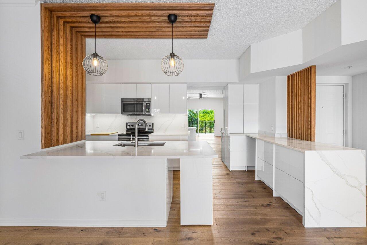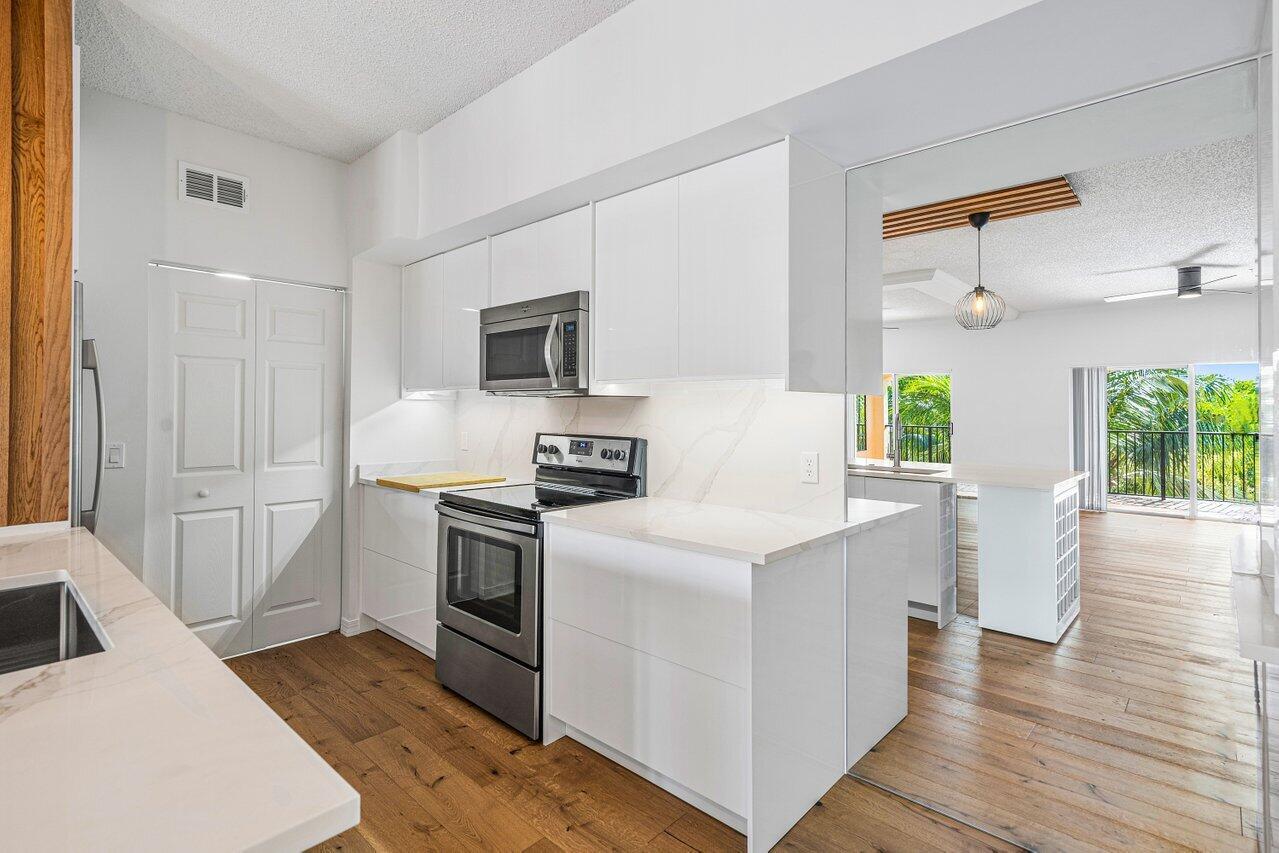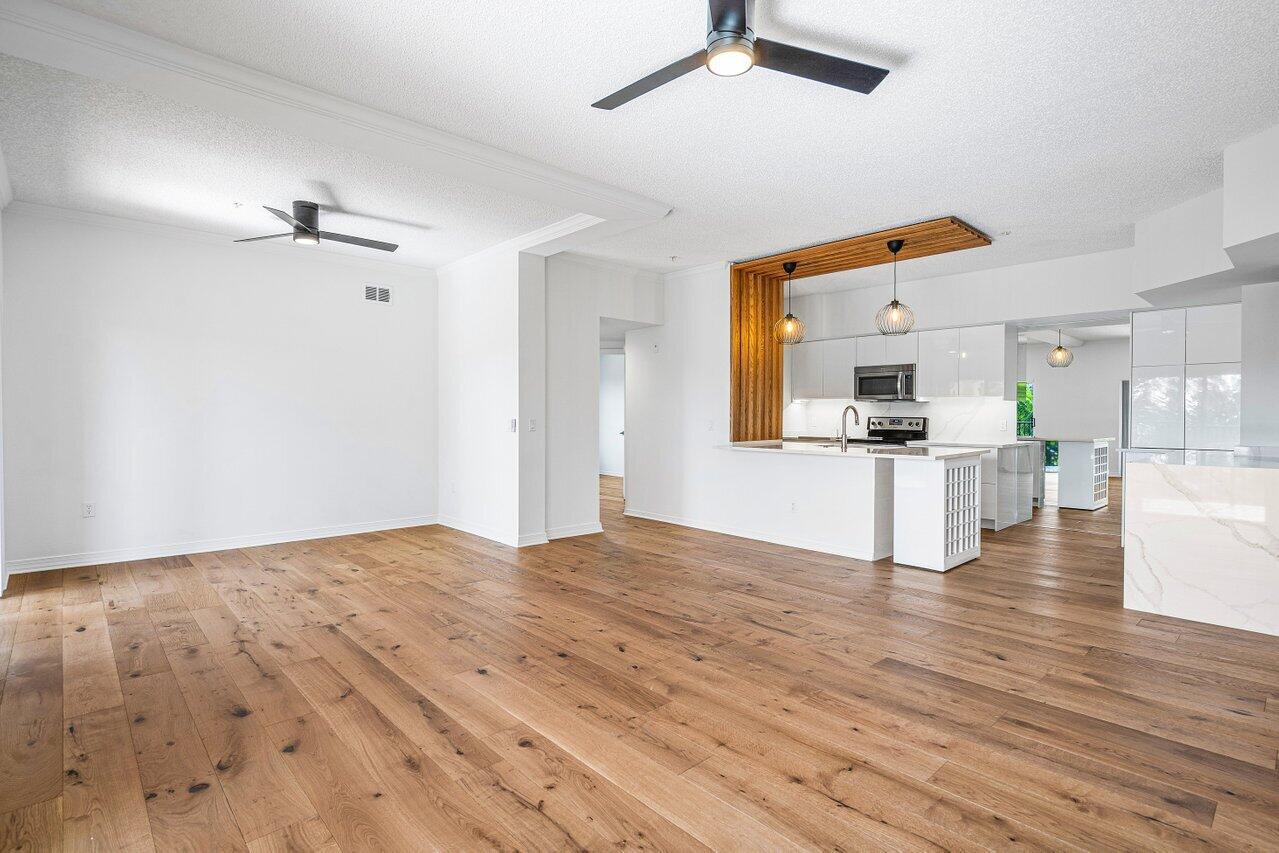 Sophisticated corner penthouse residence with walls of windows and timeless oak floors throughout. The reimagined open layout highlights a chef's kitchen with Stainless Steel Whirlpool Appliances, extended Golden Calcutta Quartz counters and custom cabinetry. Enjoy the convenience of an in-unit washer/dryer and relax on the expansive tiled patio with serene preserve views and accordion shutters. Thoughtfully curated design and refined finishes elevate this beautifully remodeled home.Amenities include clubhouse, pool, fitness, tennis, pickleball, library, picnic area, on-site manager. Plus Car Wash area by Bldg 4. Parking spaces: 620 (covered) & 878. Leasing ok, 2x/year, 3 month min. 2 pets allowed. AC 2018.
