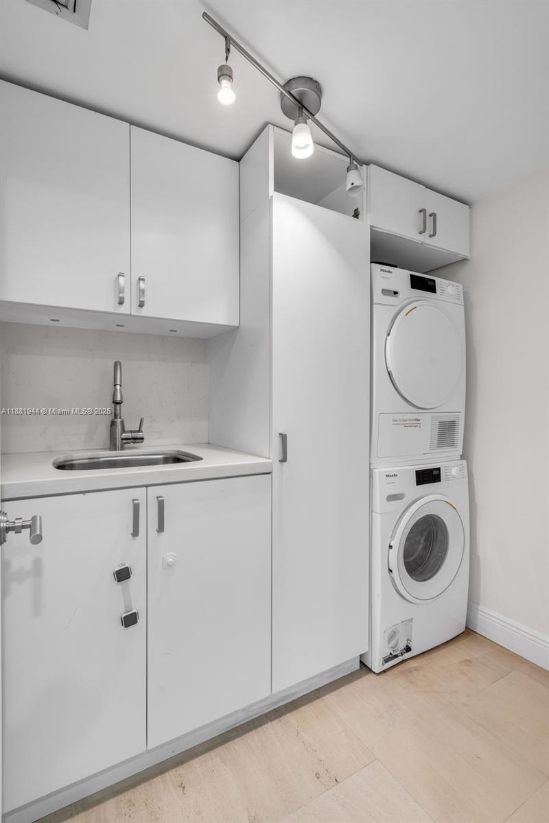 Rarely available corner unit at the Commodore Club West. This spacious and elegantly updated 3-bedroom, 2-bath residence spans 1,930 sq ft and offers breathtaking views of Crandon Park and spectacular sunset skies from a wraparound terrace. The functional layout includes a large master suite with a modern bathroom and generous closets, along with neutral travertine-style flooring throughout. The residence also boasts a hig-end Scavolini custom Italian kitchen. Enjoy the convenience of a rare in-unit laundry room equipped with high-end Miele washer and dryer. This residence includes one assigned, covered parking space. Residents of the Commodore Club enjoy direct beach access, a pool, tennis courts, and 24-hour security, an ideal island lifestyle in the heart of Key Biscayne.