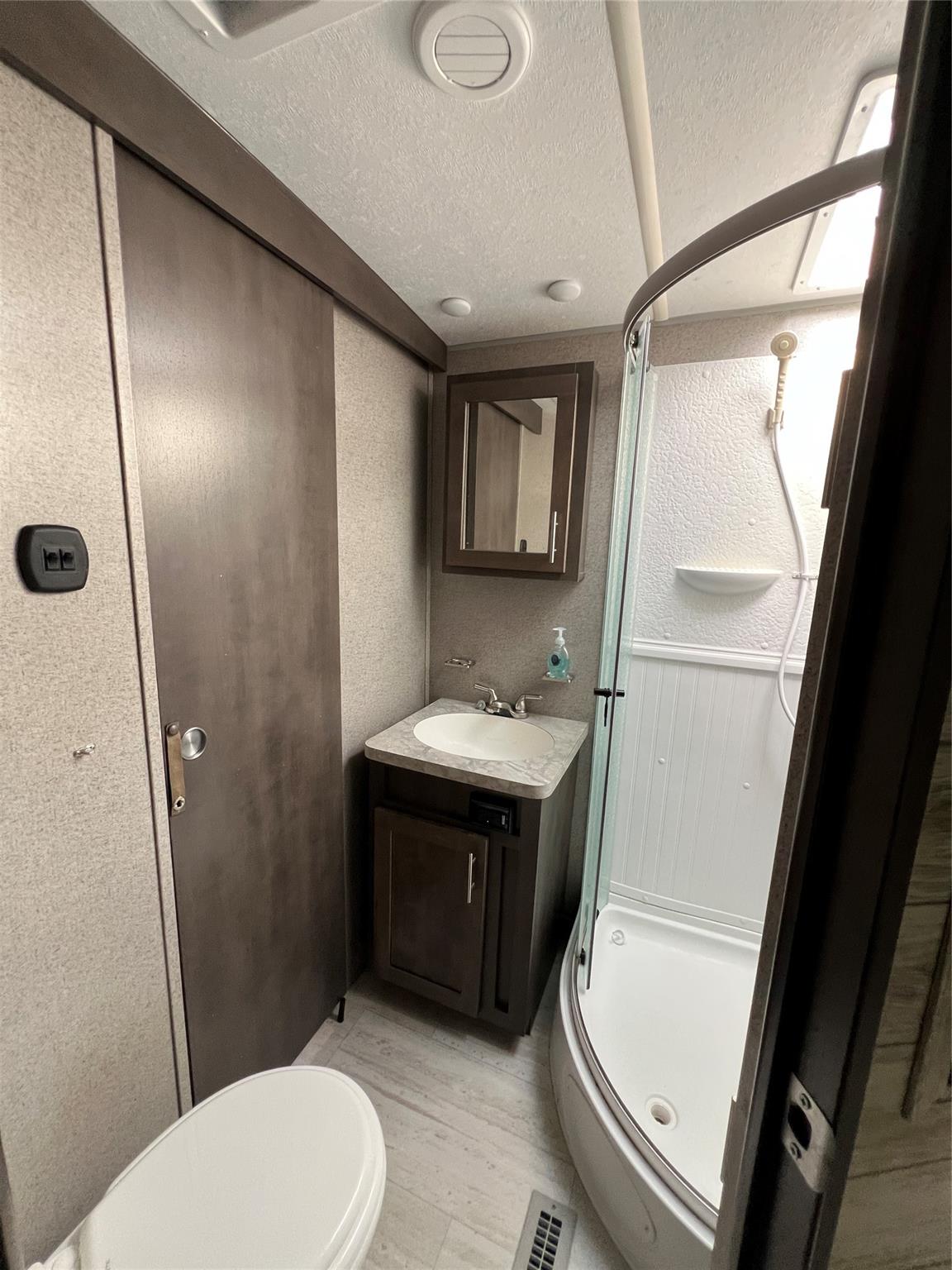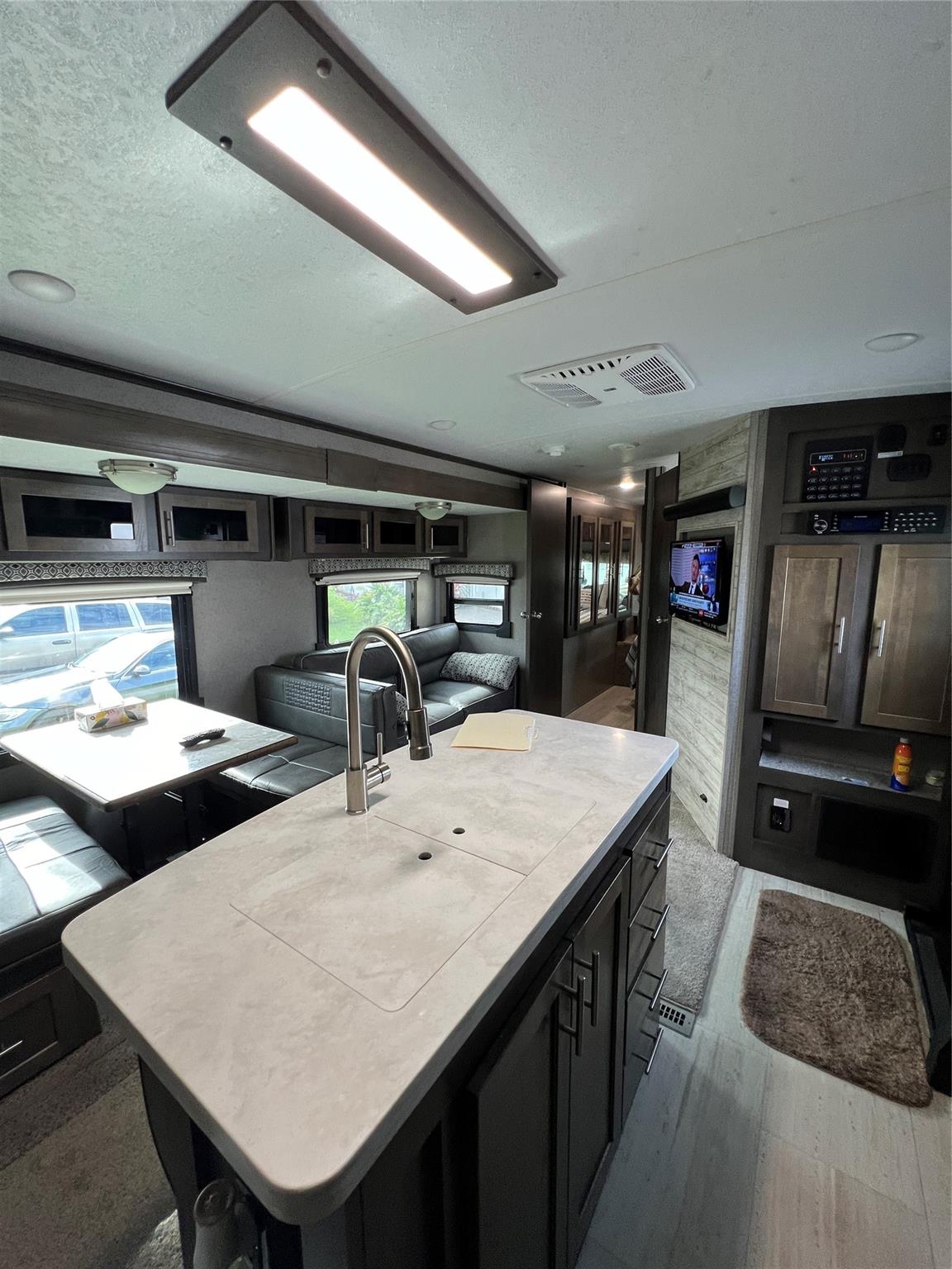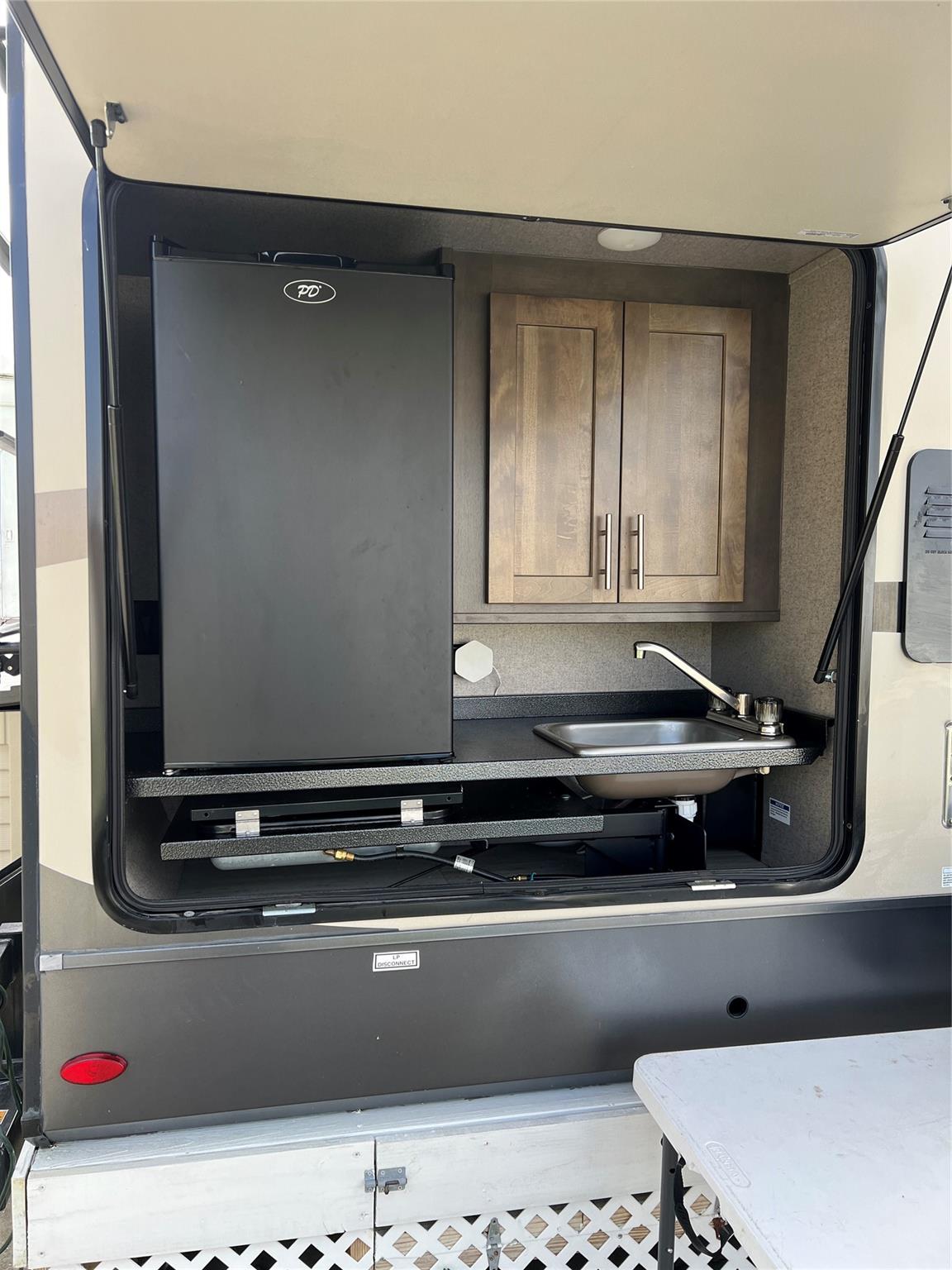 ~Ancient Oaks~ 55+ Community. 2019 Flagstaff "Forest River' 32' 2 BEDROOM 1 BATH. 4 slides/Outside kitchen. Queen beds/standup shower. Sleeps 6. Gas oven- 3 TV'S. Turn Key! All measurements are approximate.