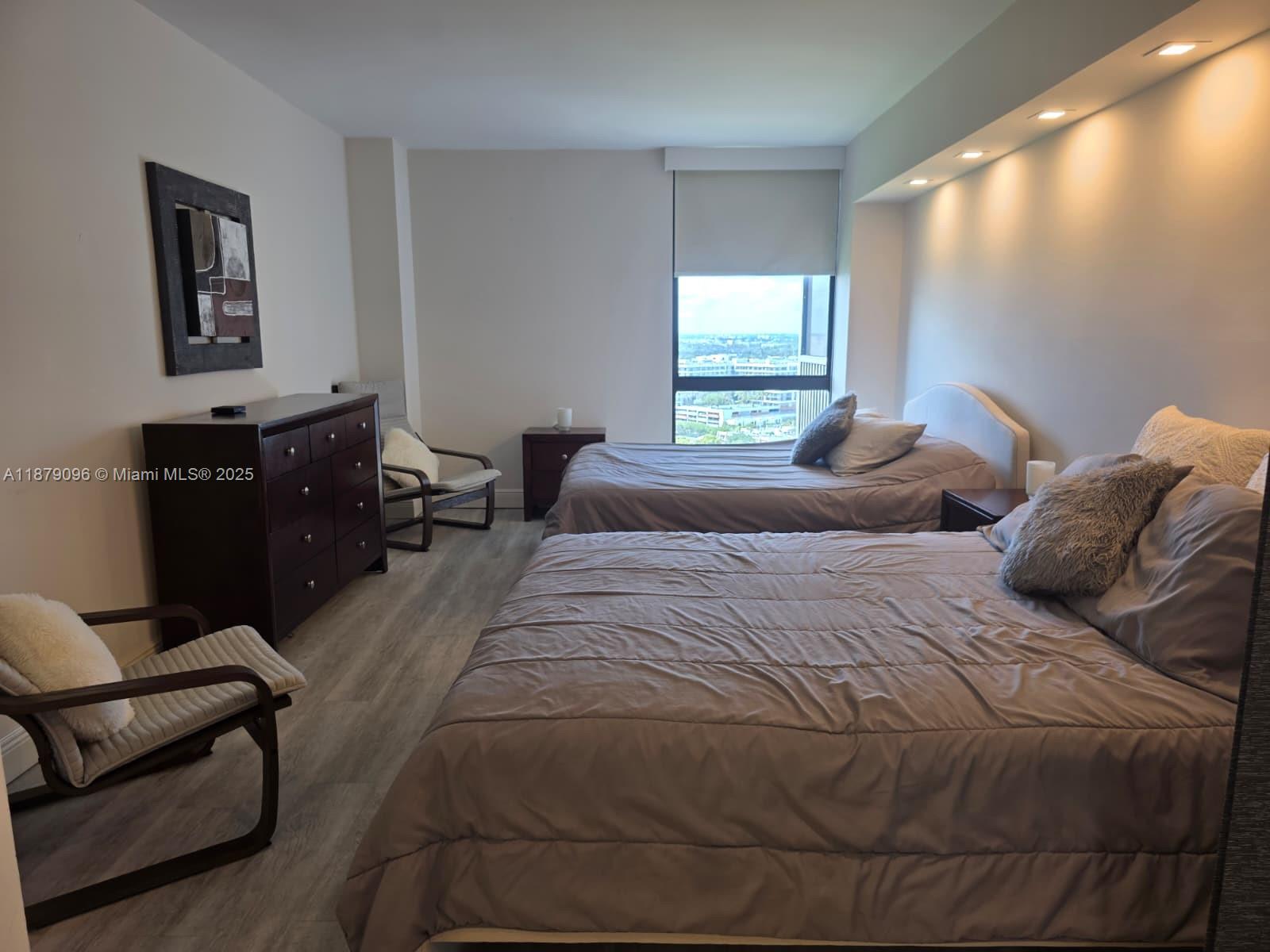 Great view one-bedroom, one and half bathrooms. The apartment is in mint condition. Lobby area was recently remodeled. HOA covers for the water, internet and cable utilities. Close to Aventura Mall and restaurants. It is located in the heart of the city of Aventura.