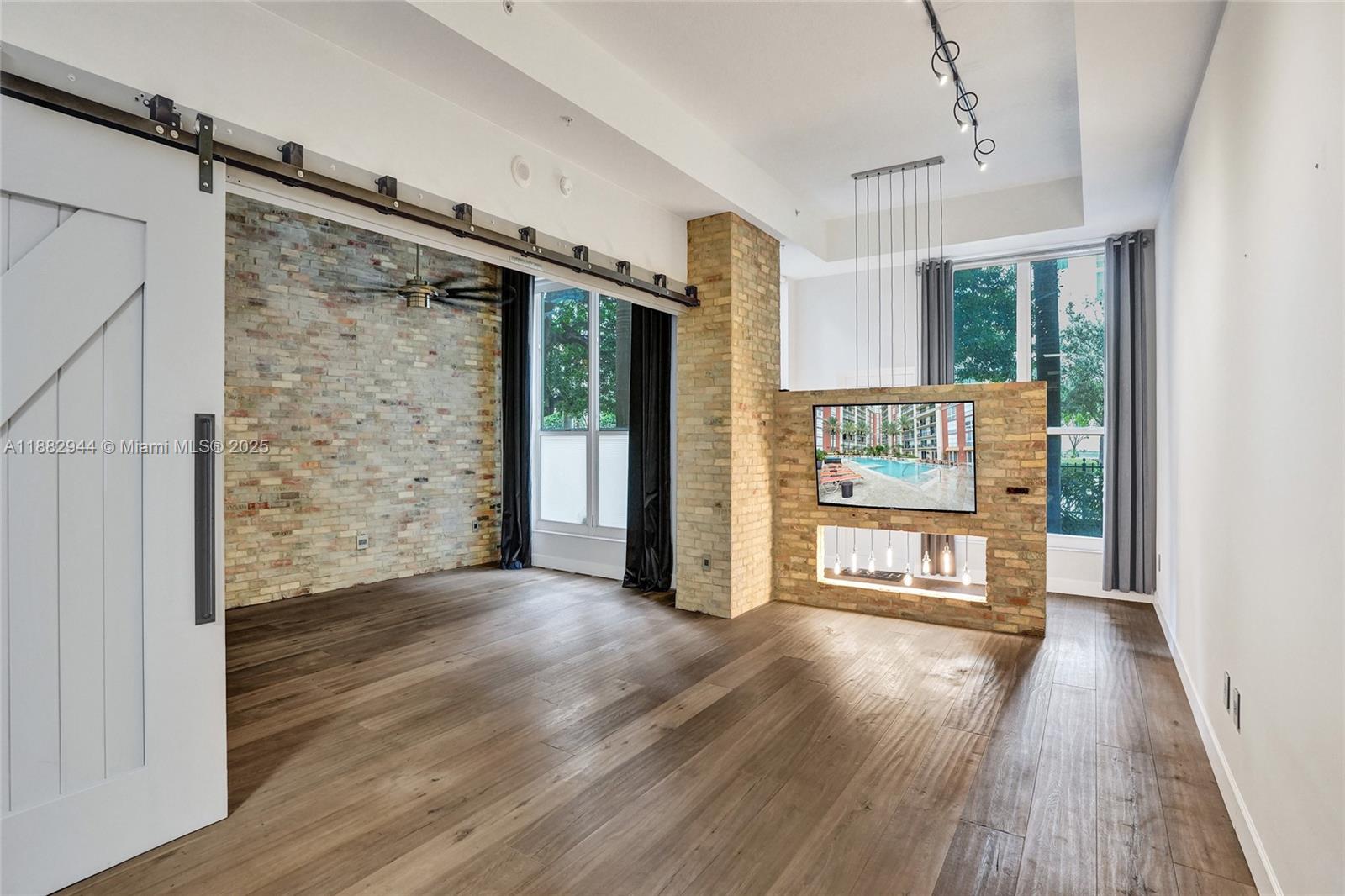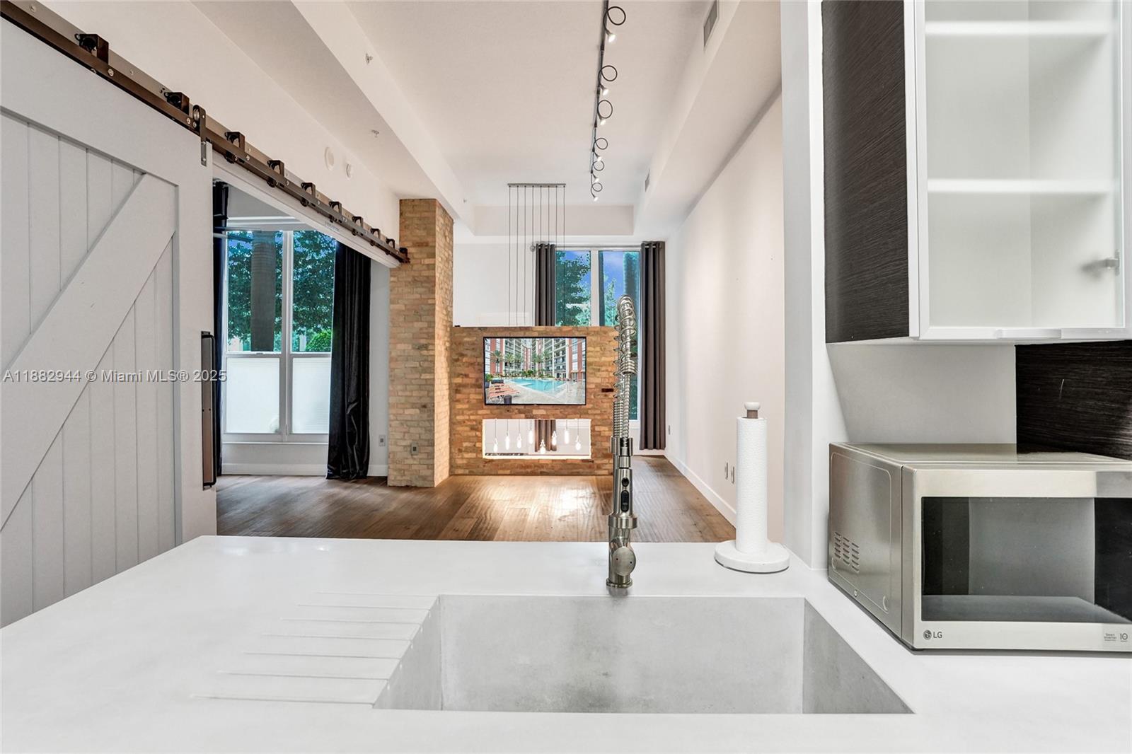 One-of-a-kind 1st floor unit with 12' ceilings in one of downtown WPB's premier buildings. Open floorplan with incredible upgrades including reclaimed brick walls, wide-plank wood flooring, 13' wide custom barn doors (creating a separate sleeping area when closed), concrete counter tops and private direct exterior entry which is perfect for pets. Assigned, covered parking on 1st floor steps from unit. NEW AC. Resort-style, full service luxury building with a 24-hr concierge/doorman, valet, infinity pool, fitness center, sauna/steam/massage rooms, outdoor/indoor kitchens and more! All is included in HOA payment along with exterior ins, water, cable & internet. The Square, Kravis Center, Brightline station and Convention center right outside your door. 1.5 miles to beach. 2 pets-60 lbs max