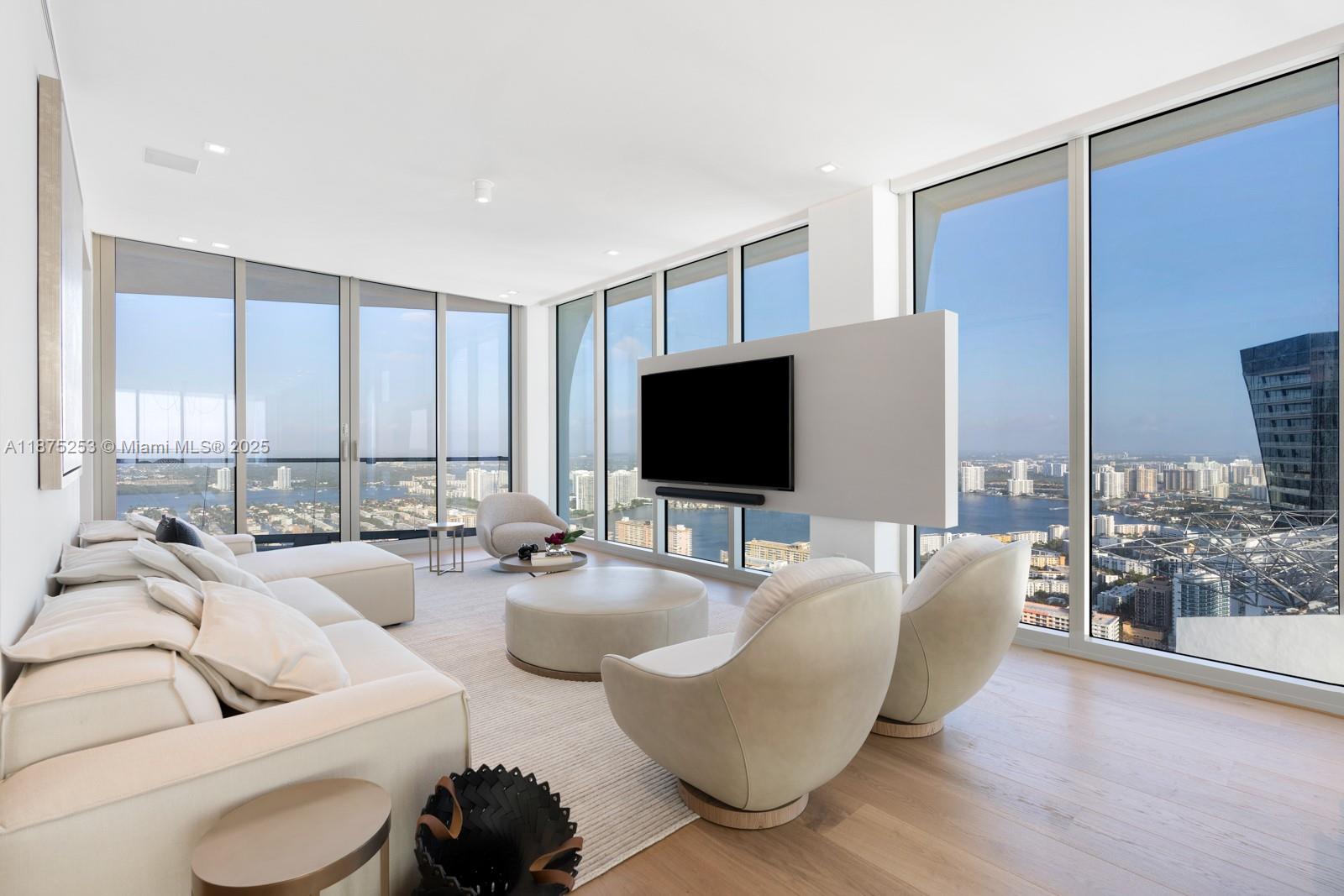 Welcome to Sky Villa 5105 at Jade Signature, a rare two-story residence in the sky curated entirely by Artefacto. Spanning over 6,500 SF, this 5-bedroom, 6.5-bath home offers soaring double-height ceilings, walls of glass, and seamless indoor-outdoor living with expansive terraces + service quarters. Every space is masterfully designed with bespoke finishes, custom millwork, and a private elevator. The oceanfront primary suite offers a spa-inspired bath and oversized dressing room, while a private elevator ensures effortless access. Residents enjoy resort-style amenities including beachfront service, world-class spa, fitness center, kids’ club, wine bar, valet, and full concierge. An unmatched lifestyle of elegance and ease awaits.