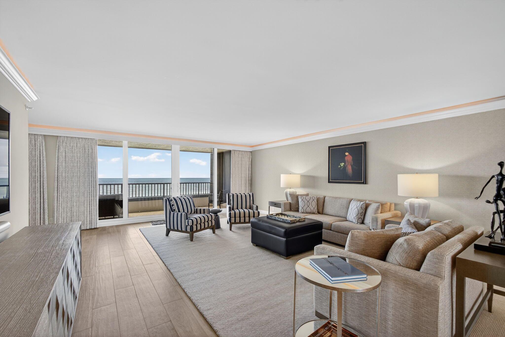A rare opportunity awaits to own a bespoke residence within one of Jupiter Island's most exclusive enclaves. This fully reimagined 2 bedroom 2 1/2 baths home with a private office offers refined coastal living framed by sweeping views of both the Atlantic Ocean and Intracoastal Waterway. Thoughtfully designed with an open, airy floor plan, this residence exudes understated elegance. Custom finishes and meticulous craftsmanship are showcased throughout, from serene white on white kitchen with quartz countertops to expansive living areas that flow seamlessly to terraces on both sides of the residence. Impact glass, custom window treatments provide comfort and peace of mind. With only 28 residences in the building, privacy and exclusivity are paramount.