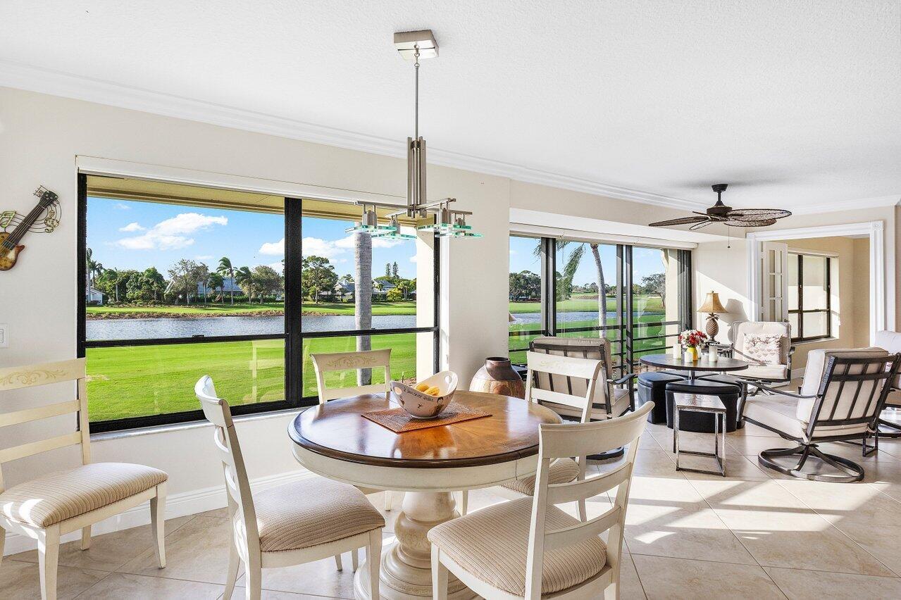 Step into this beautifully updated 2nd floor corner condominium offering breathtaking views of serene lakes and double fairway golf course. The spacious floor plan is complemented by diagonal-set tile flooring that flows seamlessly throughout the home, adding a touch of elegance and easy maintenance. The modern kitchen features an open design, perfect for entertaining, with stylish updates that enhance both functionality and appeal. Both bathrooms have been tastefully remodeled, boasting contemporary finishes and thoughtful touches. This condo offers the perfect blend of comfort, style, and location for those seeking a relaxed yet refined lifestyle. Quail Ridge is a mandatory membership, private club community with top tier golf, tennis, pickleball & a beautiful clubhouse