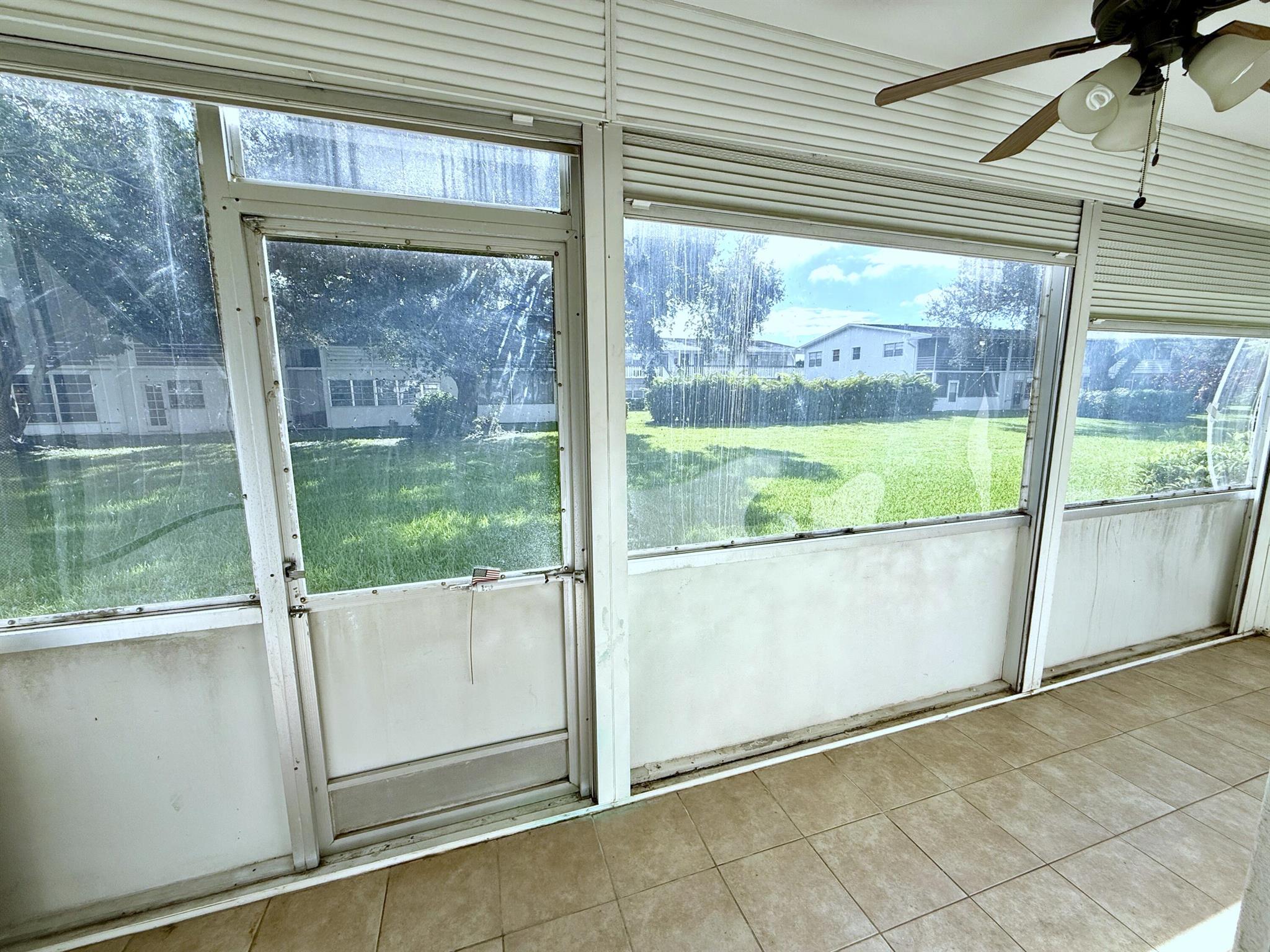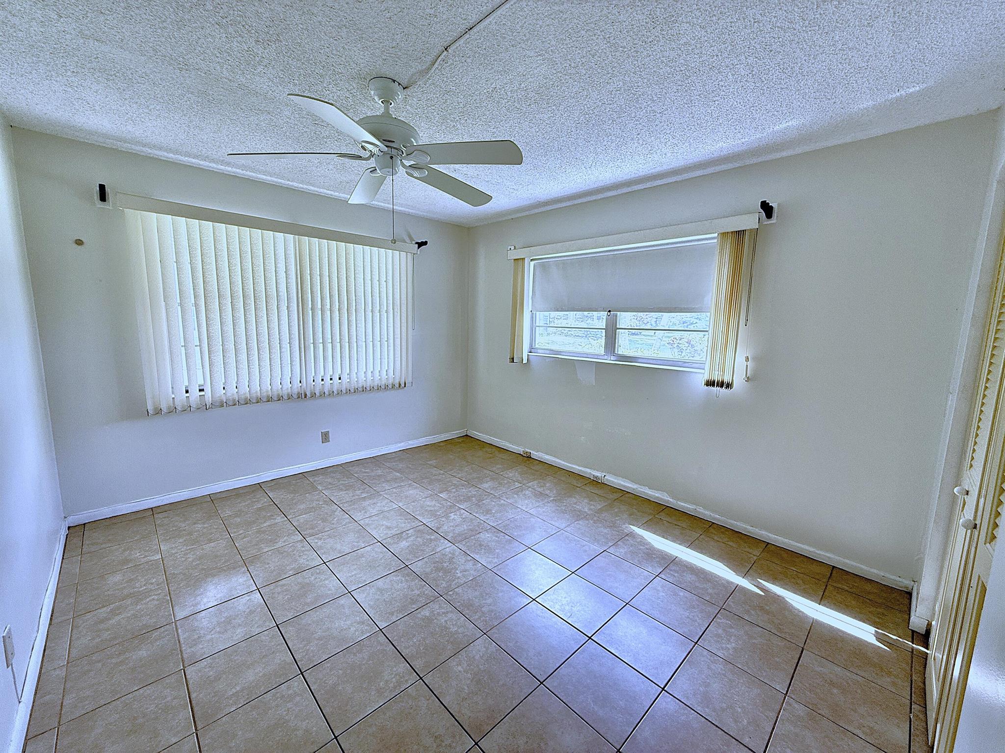 First Floor CORNER. Bright 2 BR 2 Full Baths w/ walk-in shower, tile throughout. Enclosed Patio. Enjoy walks along a lovely canal. The unit is ready for you to make it our own. Clubhouse extrodinaire has Indoor & Outdoor Pool, Cafe, 1600 Seat Theater, Clubs, Classes, Billiards, Tennis, Pickleball, Volleyball, Ping Pong, Bocce Ball, Shuffle Board, Fitness Center, Hiking Trails, Putting Green, Bike Trails & more. Close to Beaches, Entertainment, Dining, Shopping. Association claims 55+ community. Approval required.