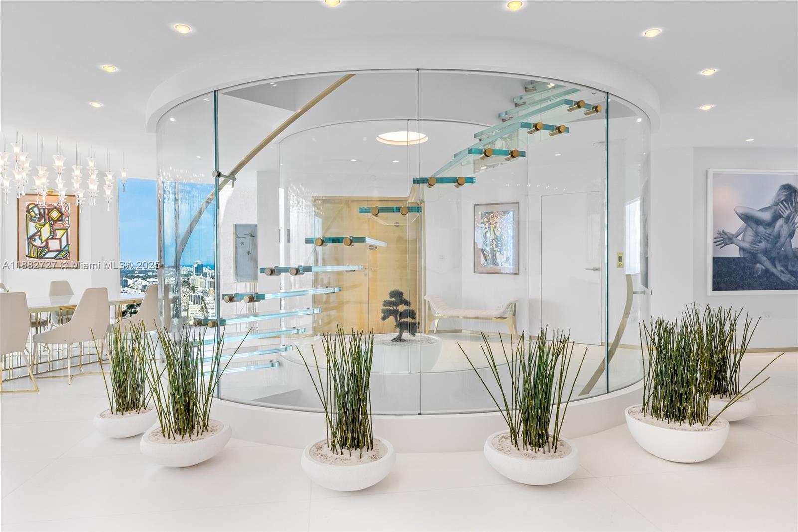 Experience the pinnacle of luxury in this tri-level penthouse atop the highly coveted Portofino Towers. This nearly 6,000 sqft estate in the sky awaits a visionary seeking the ultimate living experience. Meticulously reimagined with a $9M renovation, every detail has been elevated to perfection, including a stunning floating glass staircase. Offering 360° views of the ocean, skyline, city, and Intracoastal across 3,000 sqft of exterior space. The private rooftop, complete with a pool and observation deck, crowns this masterpiece in the heart of South of Fifth, Miami's most exclusive enclave. Designed for those who demand the extraordinary, this residence is a testament to refined opulence and sophisticated living. Seize this generational opportunity today.