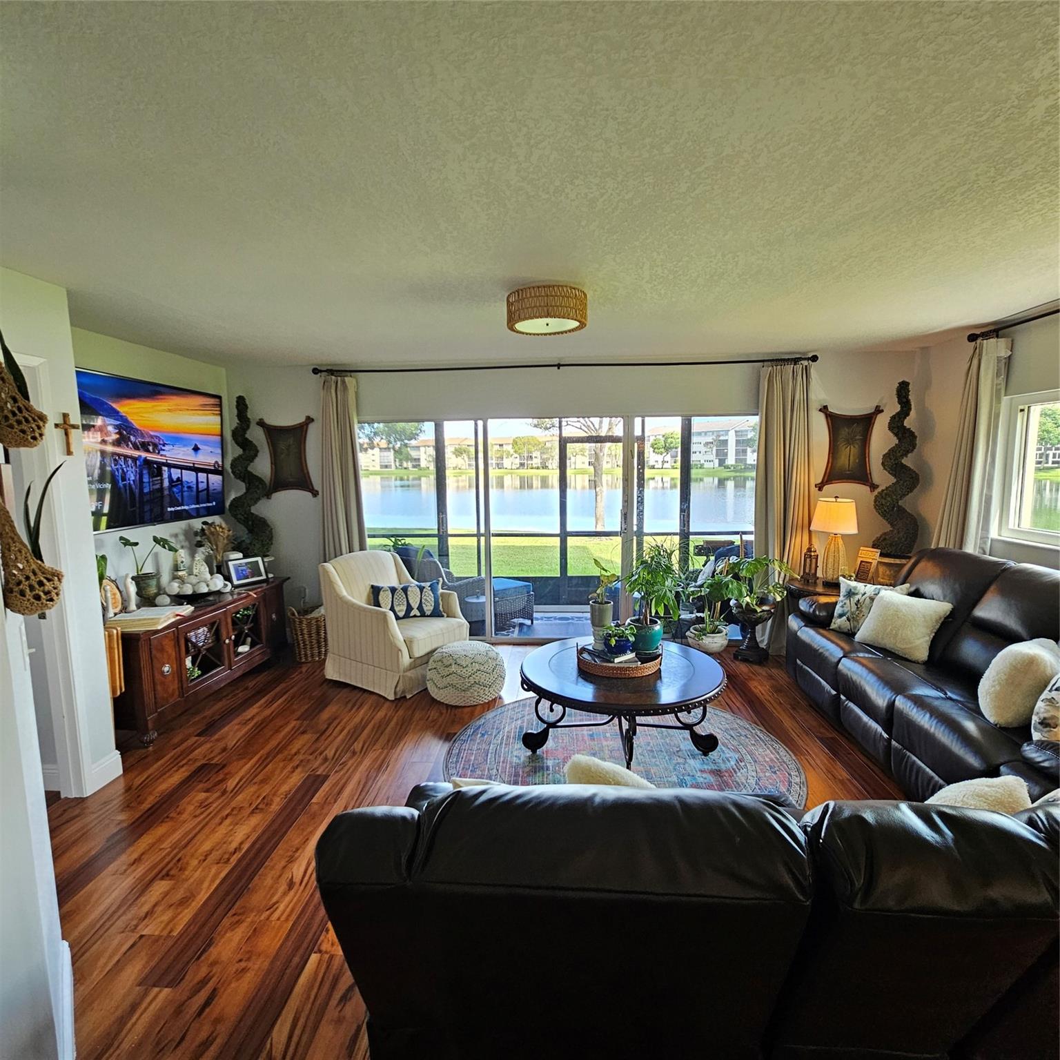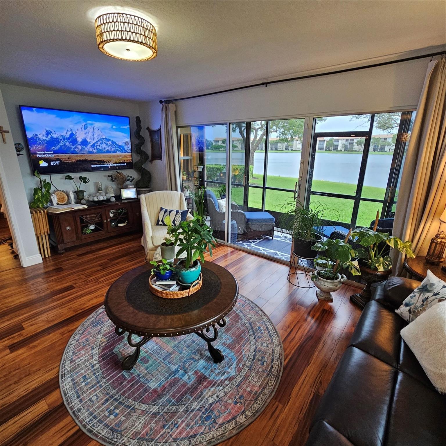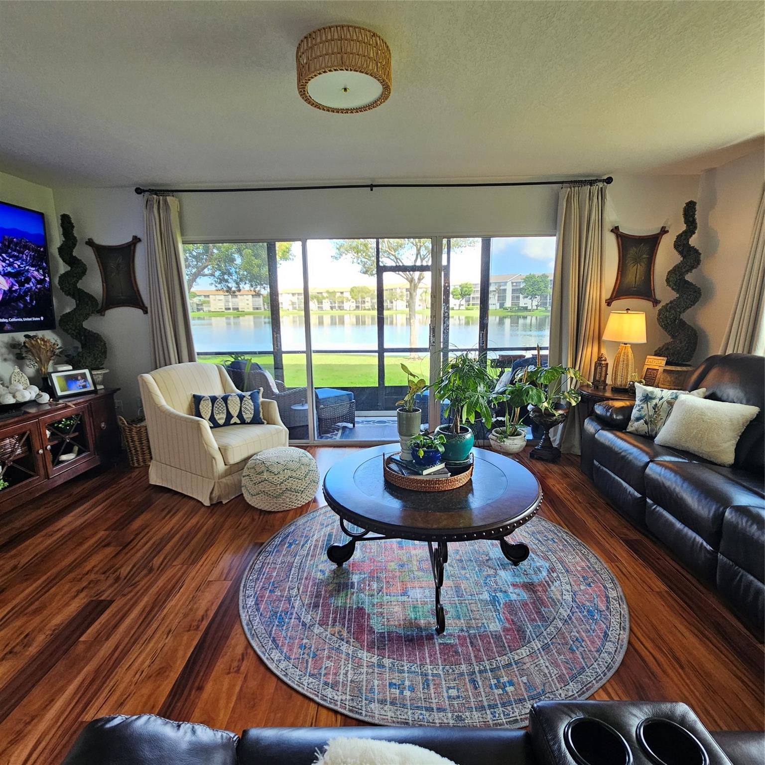 CORNER, CORNER! FIRST FLOOR, FIRST FLOOR! DON'T DRAG YOUR GROCERIES UP THE STAIRS, OR INTO THE ELEVATOR! WAKE UP TO BREATHTAKING LAKEFRONT VIEWS FROM 6 OF THE 8 WINDOWS IN THIS RARE FIRST FLOOR CORNER RESIDENCE. THE LARGEST FLOOR PLAN IN THE COMMUNITY. FLOODED WITH MORNING SUNLIGHT FROM THE EAST AND AMAZING BREEZE. THIS COMPLETELY UPDATED HOME BLENDS MODERN ELEGANCE WITH EVERYDAY COMFORT. HIGH QUALITY LAMINATE FLOORING, SOFT CLOSE HIGH END WOOD CABINETS, STAINLESS STEEL APPLIANCES, GRANITE COUNTERTOPS IN KITCHEN AND BATHROOMS. HOME IS COMPLETELY RENOVATED. NEW WINDOW TREATMENTS, IMPACT WINDOWS AND SLIDING GLASS DOOR. SCREENED PATIO WITH SHADES AND ADDITIONAL SLIDING GLASS DOOR. BRAND NEW AIR CONDITIONING UNIT, TANKLESS WATER HEATER. TOTAL APPLIANCE WARRANTY CONTRACT IN PLACE.