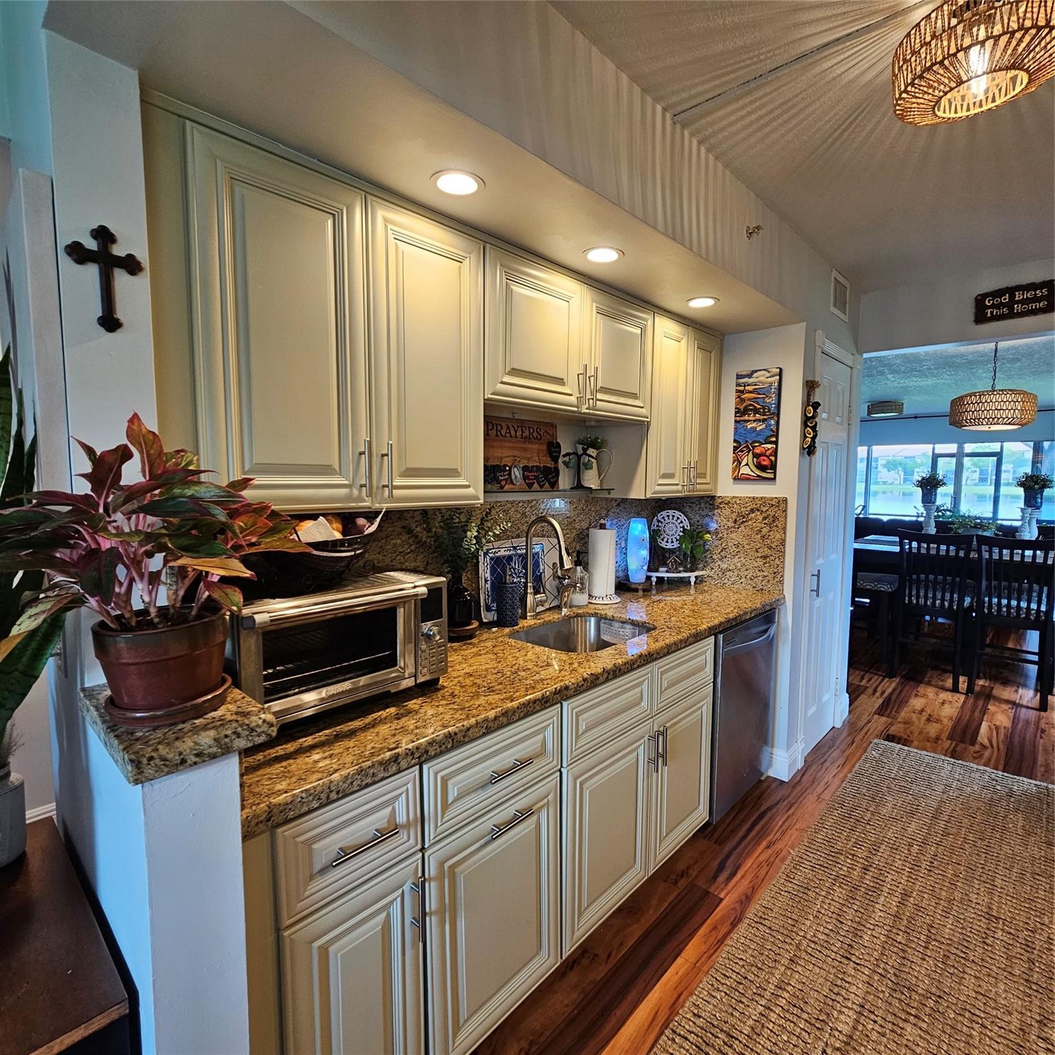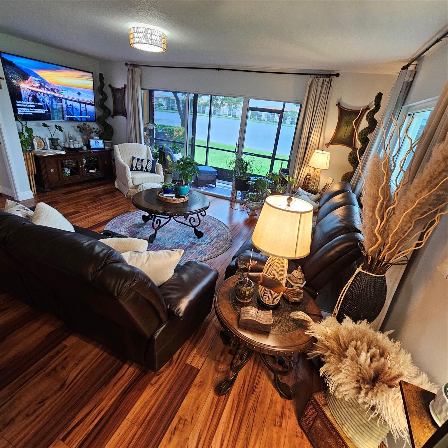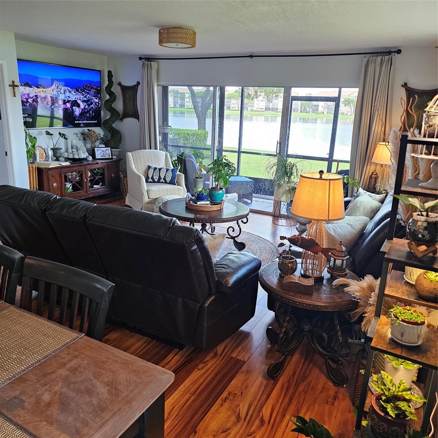 CORNER, CORNER! FIRST FLOOR, FIRST FLOOR! DON'T DRAG YOUR GROCERIES UP THE STAIRS, OR INTO THE ELEVATOR! WAKE UP TO BREATHTAKING LAKEFRONT VIEWS FROM 6 OF THE 8 WINDOWS IN THIS RARE FIRST FLOOR CORNER RESIDENCE. THE LARGEST FLOOR PLAN IN THE COMMUNITY. FLOODED WITH MORNING SUNLIGHT FROM THE EAST AND AMAZING BREEZE. THIS COMPLETELY UPDATED HOME BLENDS MODERN ELEGANCE WITH EVERYDAY COMFORT. HIGH QUALITY LAMINATE FLOORING, SOFT CLOSE HIGH END WOOD CABINETS, STAINLESS STEEL APPLIANCES, GRANITE COUNTERTOPS IN KITCHEN AND BATHROOMS. HOME IS COMPLETELY RENOVATED. NEW WINDOW TREATMENTS, IMPACT WINDOWS AND SLIDING GLASS DOOR. SCREENED PATIO WITH SHADES AND ADDITIONAL SLIDING GLASS DOOR. BRAND NEW AIR CONDITIONING UNIT, TANKLESS WATER HEATER. TOTAL APPLIANCE WARRANTY CONTRACT IN PLACE.